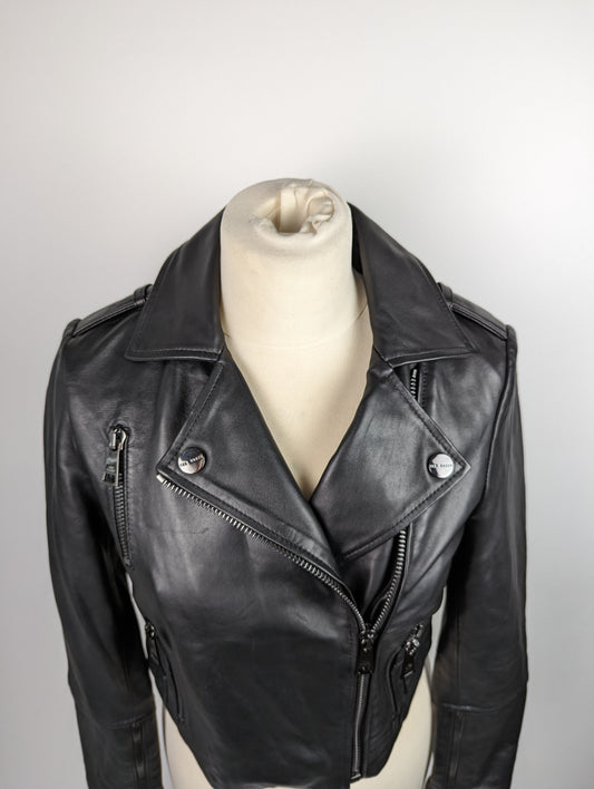 TED BAKER Womens SSalli Leather Biker Jacket - Black