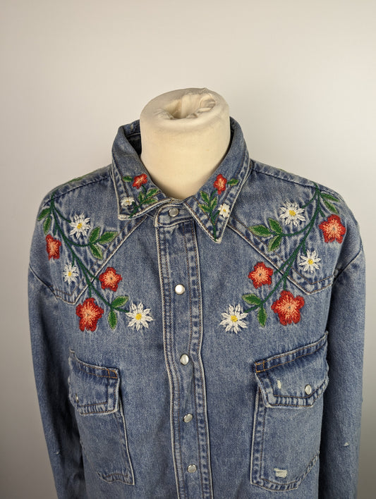 Polo Ralph Lauren Womens floral-embroidered denim shirt - Blue