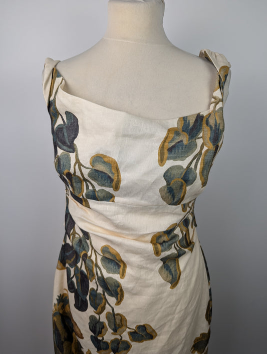 SIR Evalita Twist Flower-Print Linen Midi Dress - Beige / Browns