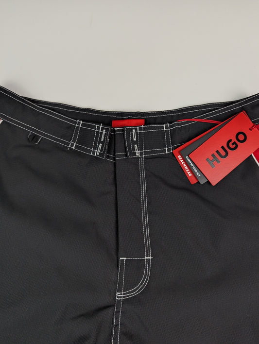 HUGO logo-tape swim shorts - Black / Red