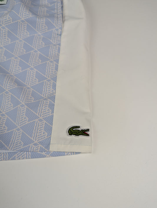 Lacoste Monogram Mens Print Swim Trunks - Light Blue / White