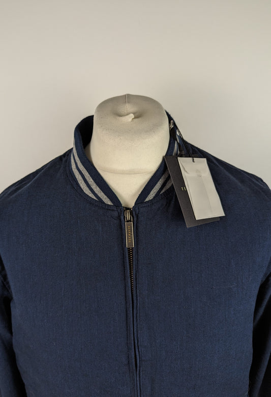 TED BAKER Men's Linen Blend Bomber Jacket - Navy Blue