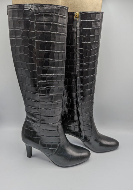 Lauren Ralph Lauren Caelynn Womens Knee High Boots- Black Croc Print
