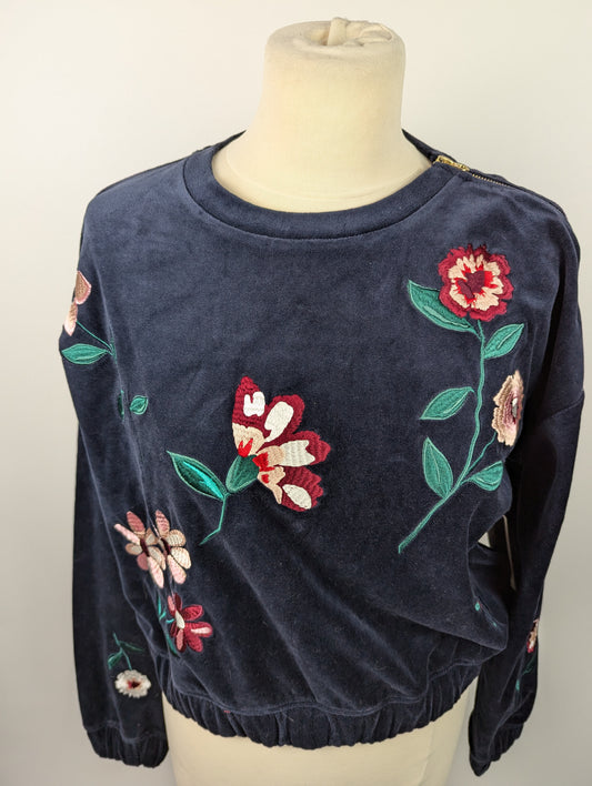 Juicy Couture Womens Spellbound Floral Embroidered Sweatshirt- Navy