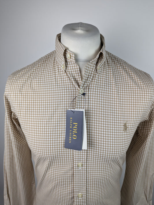 Polo Ralph Lauren Slim Fit Gingham Poplin Shirt - Khaki Brown