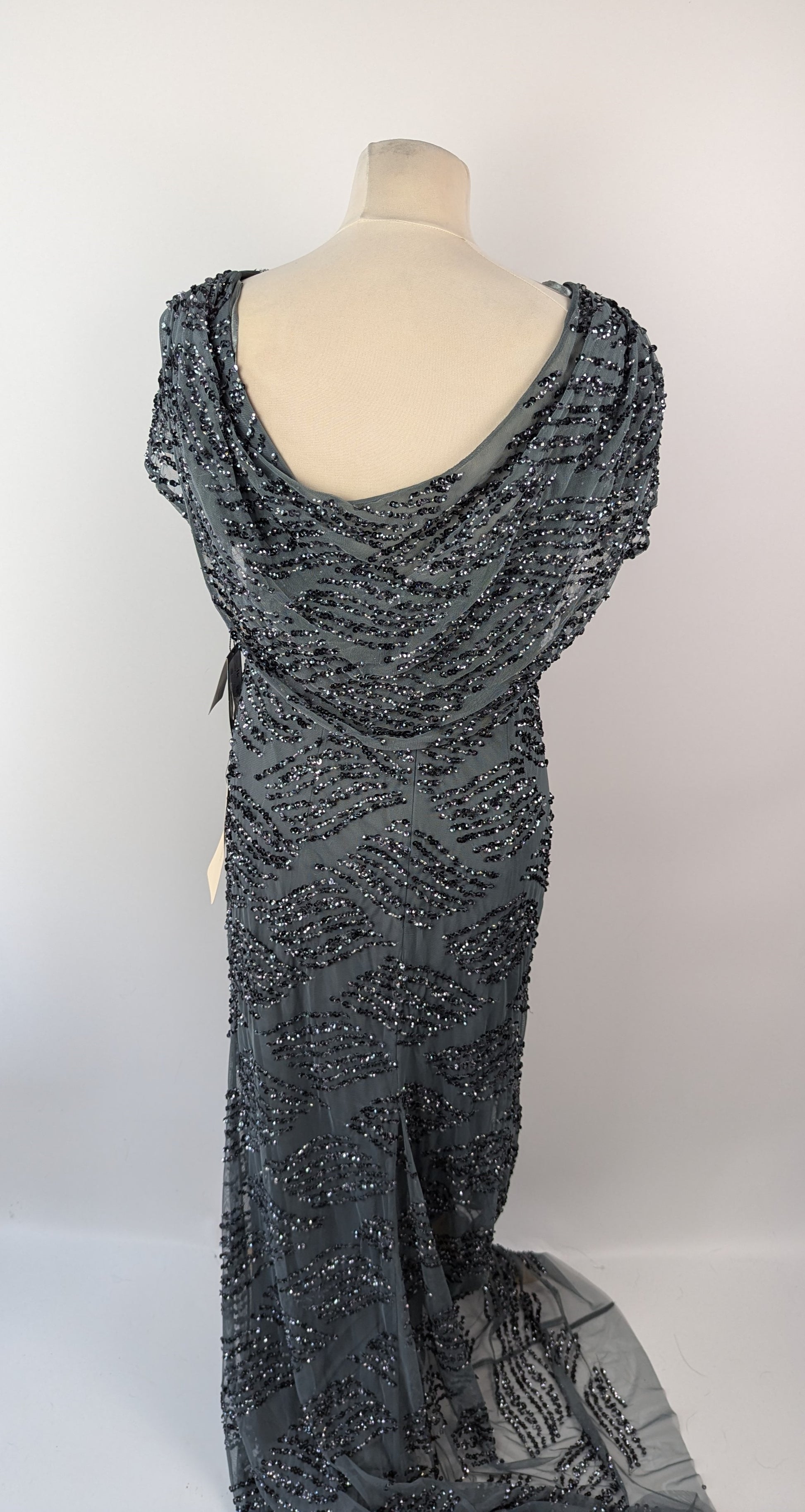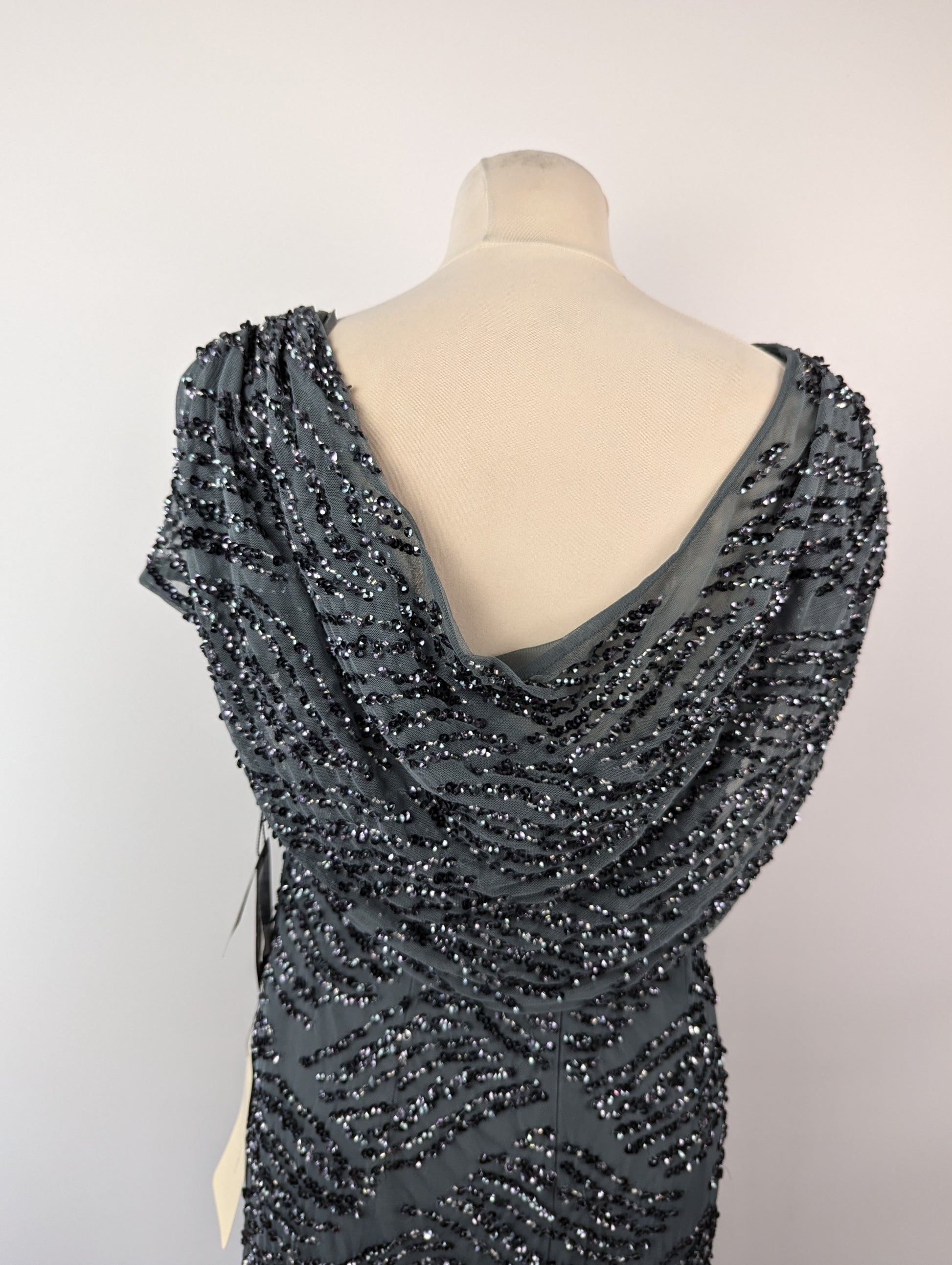 ADRIANNA PAPELL Beaded cowl back gown - Grey
