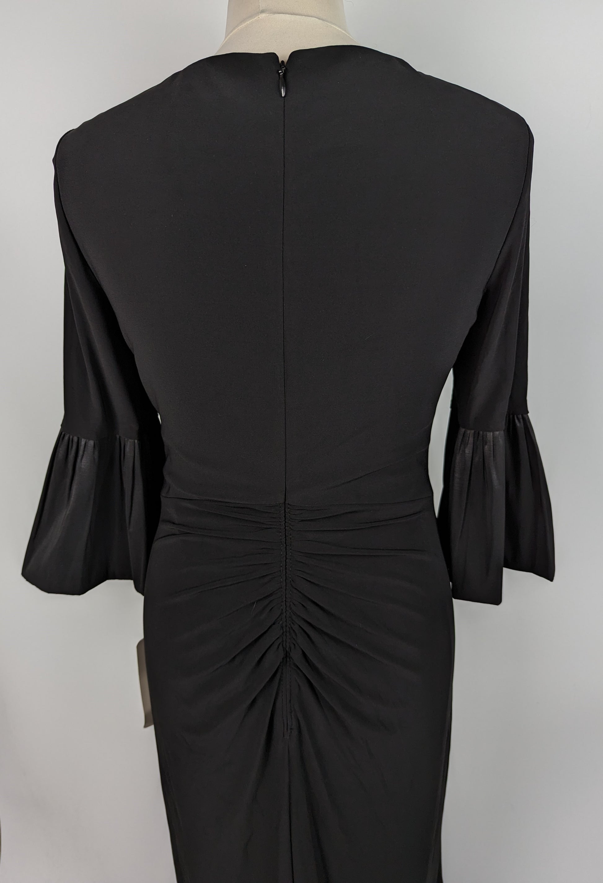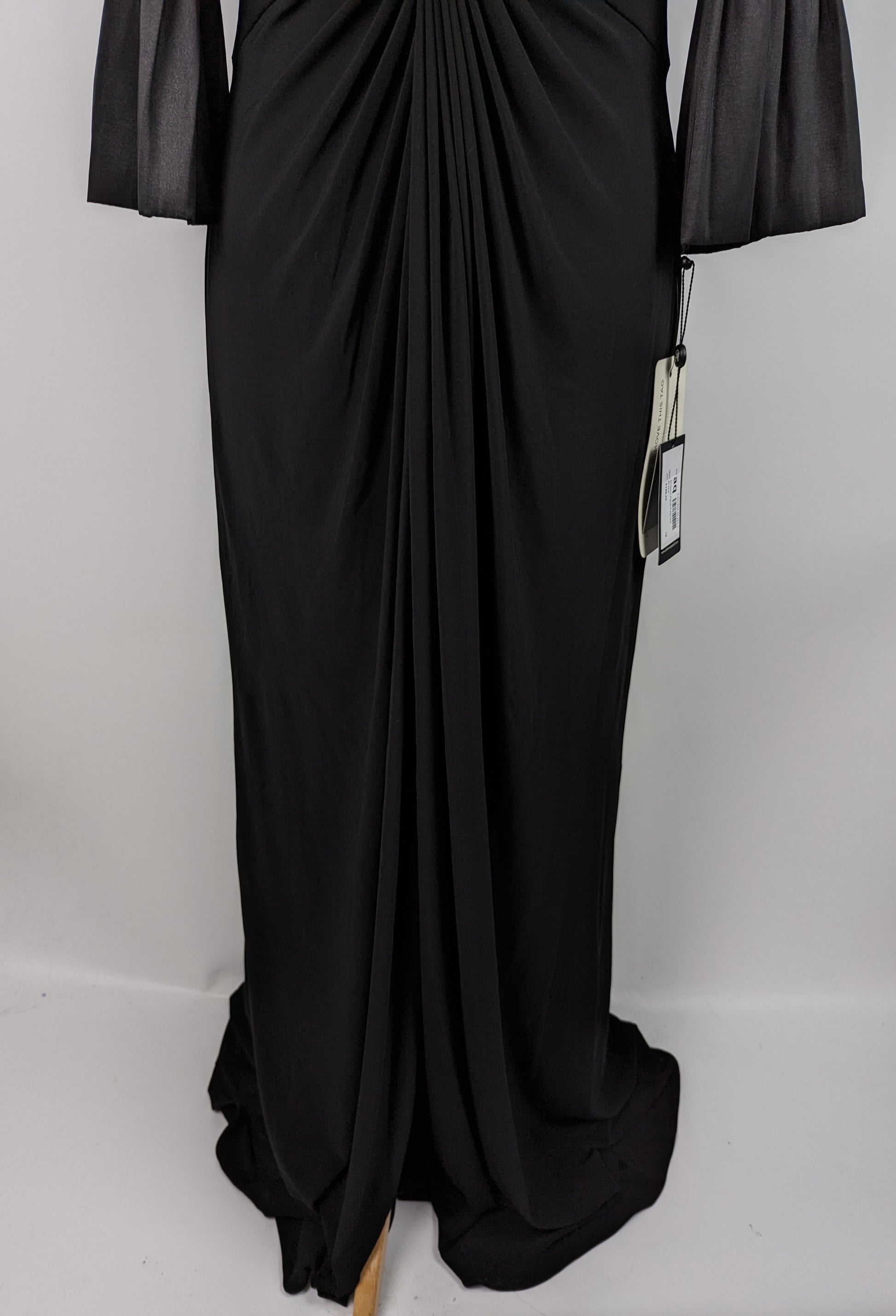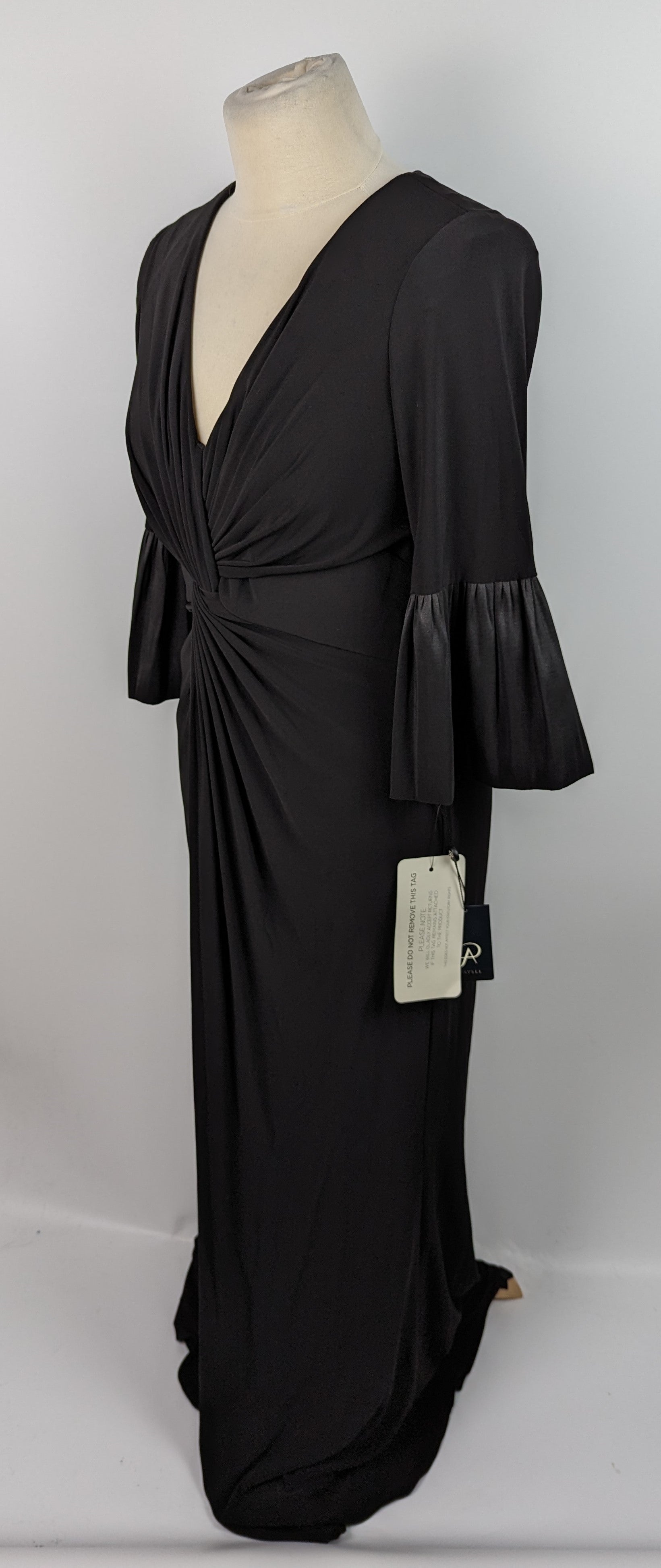 Timeless and glamorous, our floor-sweeping gown is crafted of a stretch jersey knit for a luxuriously soft look and feel. We love the figure-flatting twisted front and modern elbow sleeves with dramatic bell cuffs made of taffeta. All the details: flattering v-neckline and sleek back zip closure. Calling all mothers-of-the-bride, you’ll be a standout in your dress too.