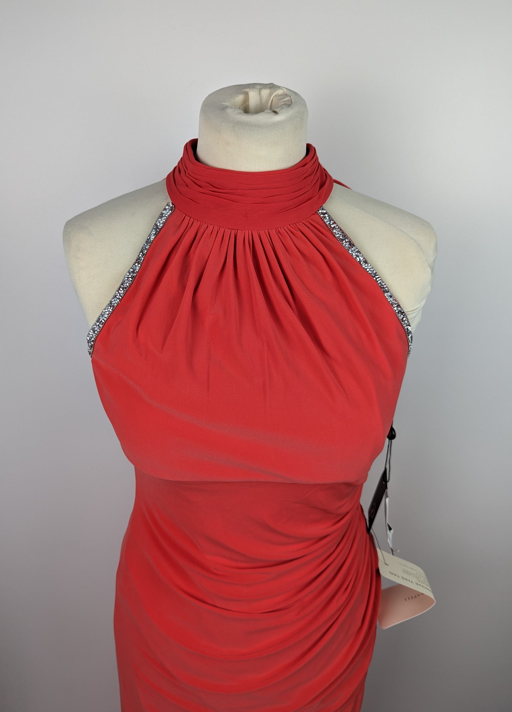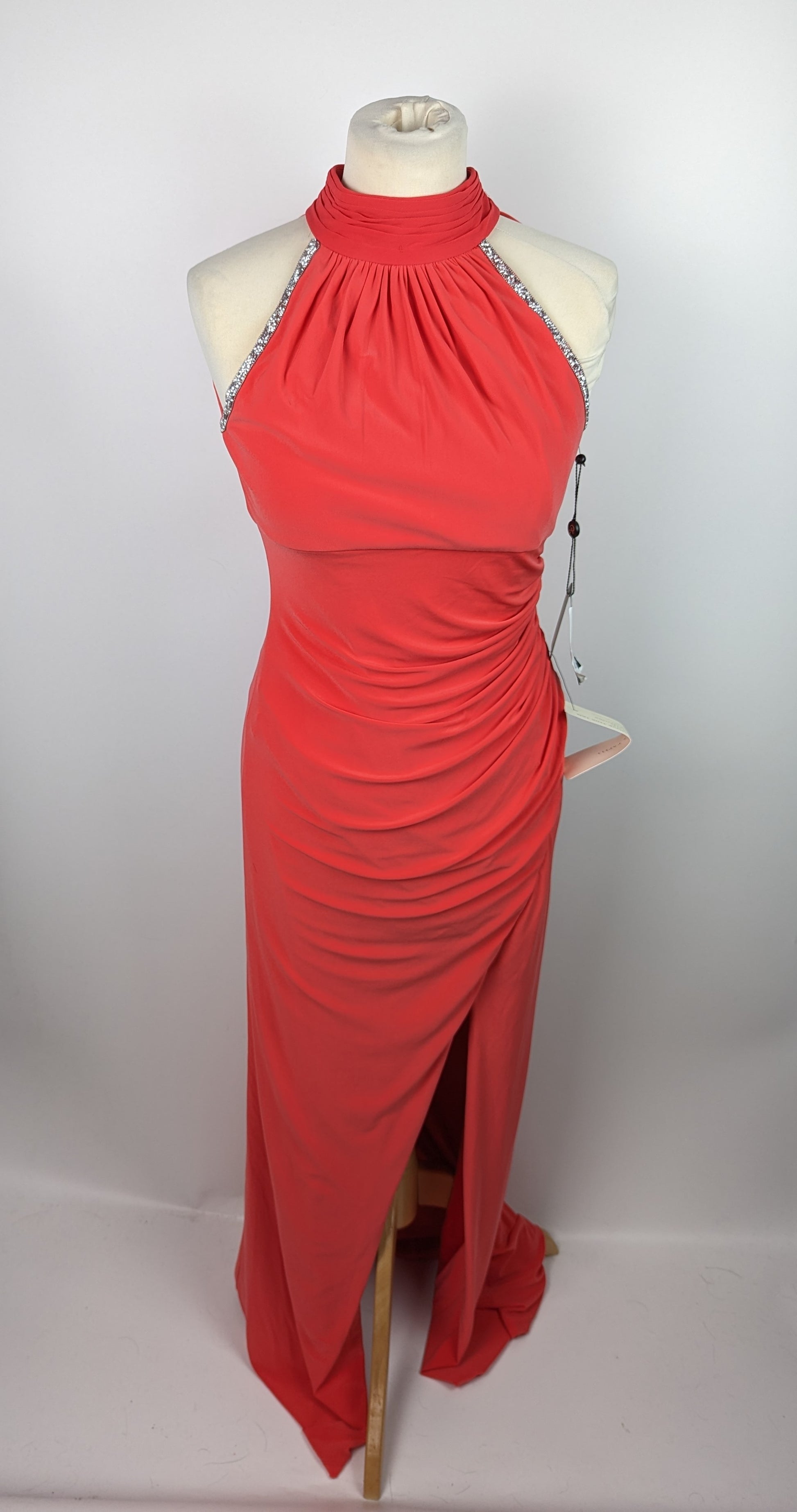 Cinching your shape with a flattering fitted waistline, this maxi dress from Adrianna Papell is a classic choice. Constructed in our classic chiffon fabric to provide maximum comfortability The halter neck fastens at the nape offering a sophisticated silhouette. This dress will suit any occasion, from formal dress codes to relaxed dinner dates. This elegant dress could also be an ideal choice for bridesmaids.