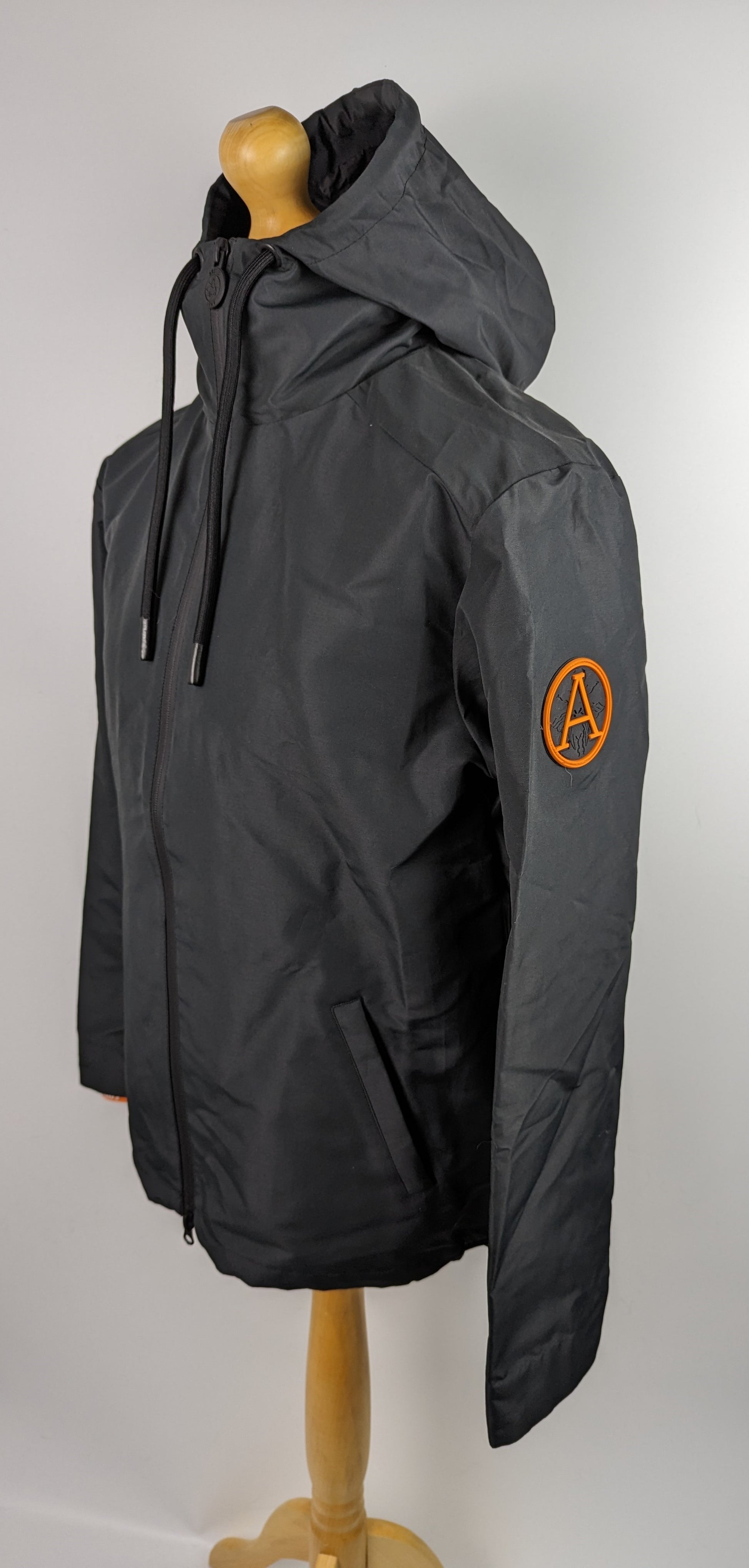 Expertly crafted with innovative, durable materials, the Arctic Army zip through windbreaker jacket in black, is designed to withstand harsh weather conditions. The waterproof and wind-resistant fabric is complemented by moisture-wicking properties, making it a versatile choice for outdoor sports and camping. With our signature branding, this men's windbreaker exudes the bold attitude of Arctic Army. Key features include zip pockets, embroidered logo, silicone arm badge, zip closure, storm cuffs, and branded zip pull and adjusters.