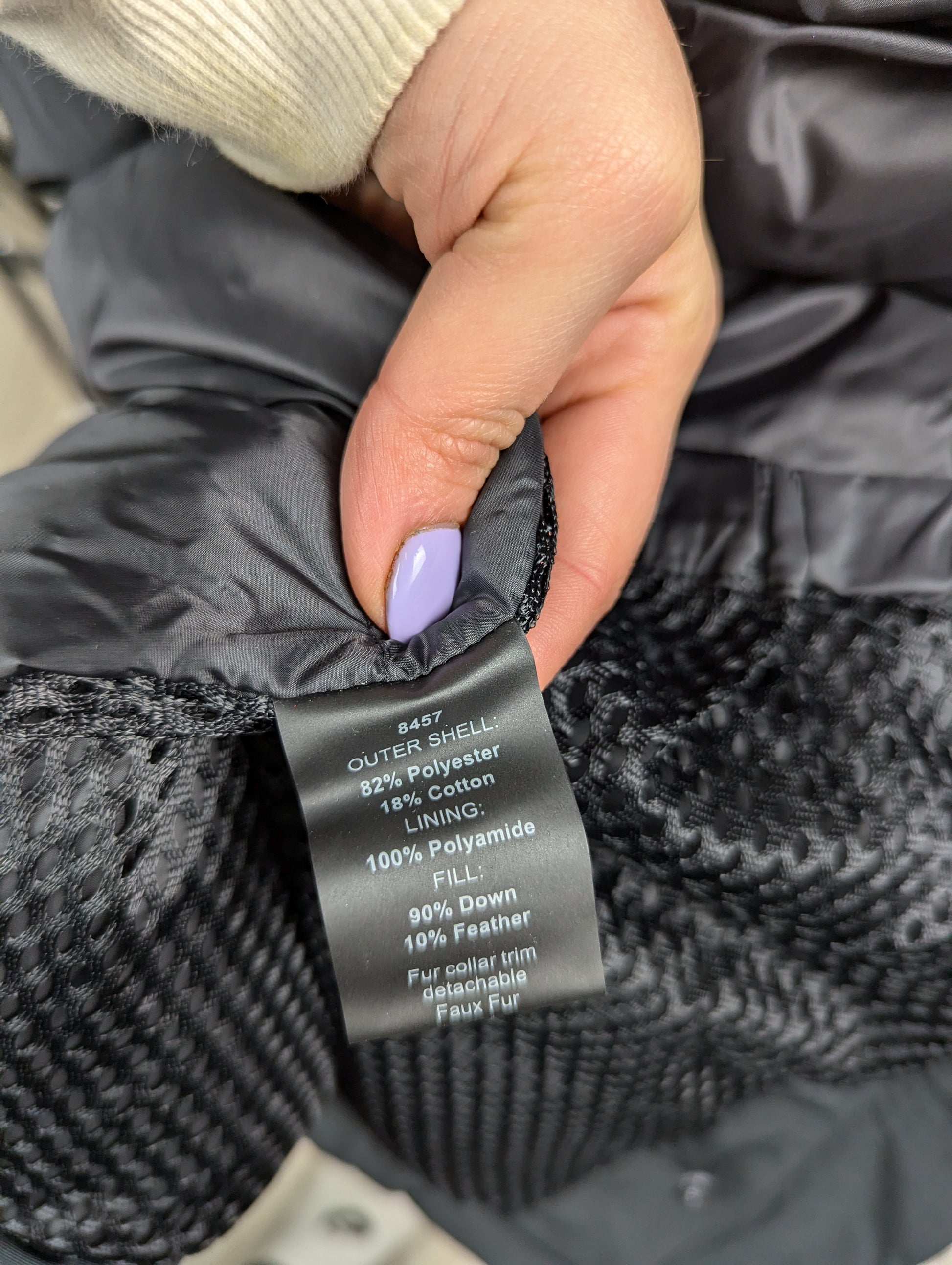 Brand new with tags. The faux fur hood trim is missing!! Other than this perfect condition.