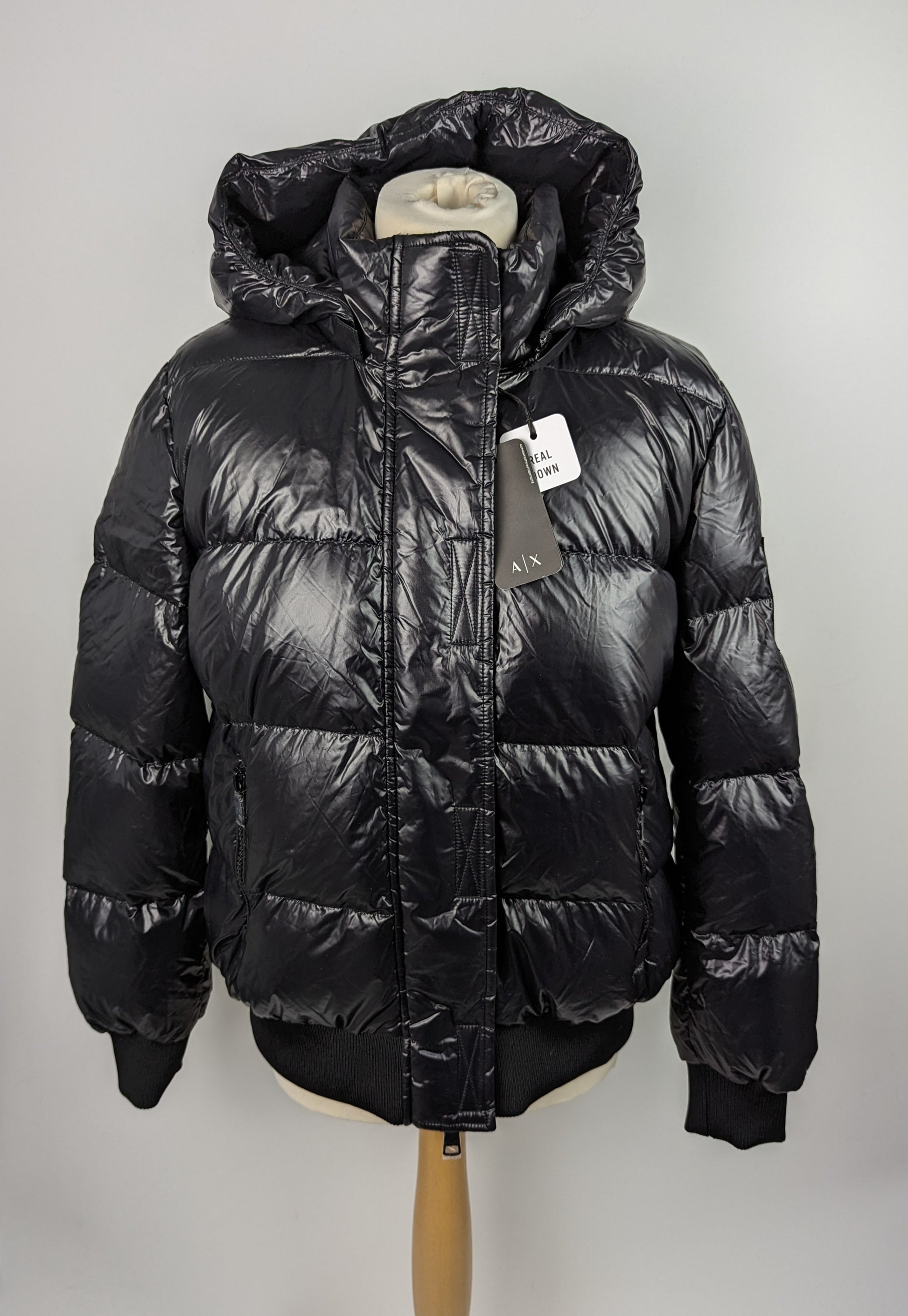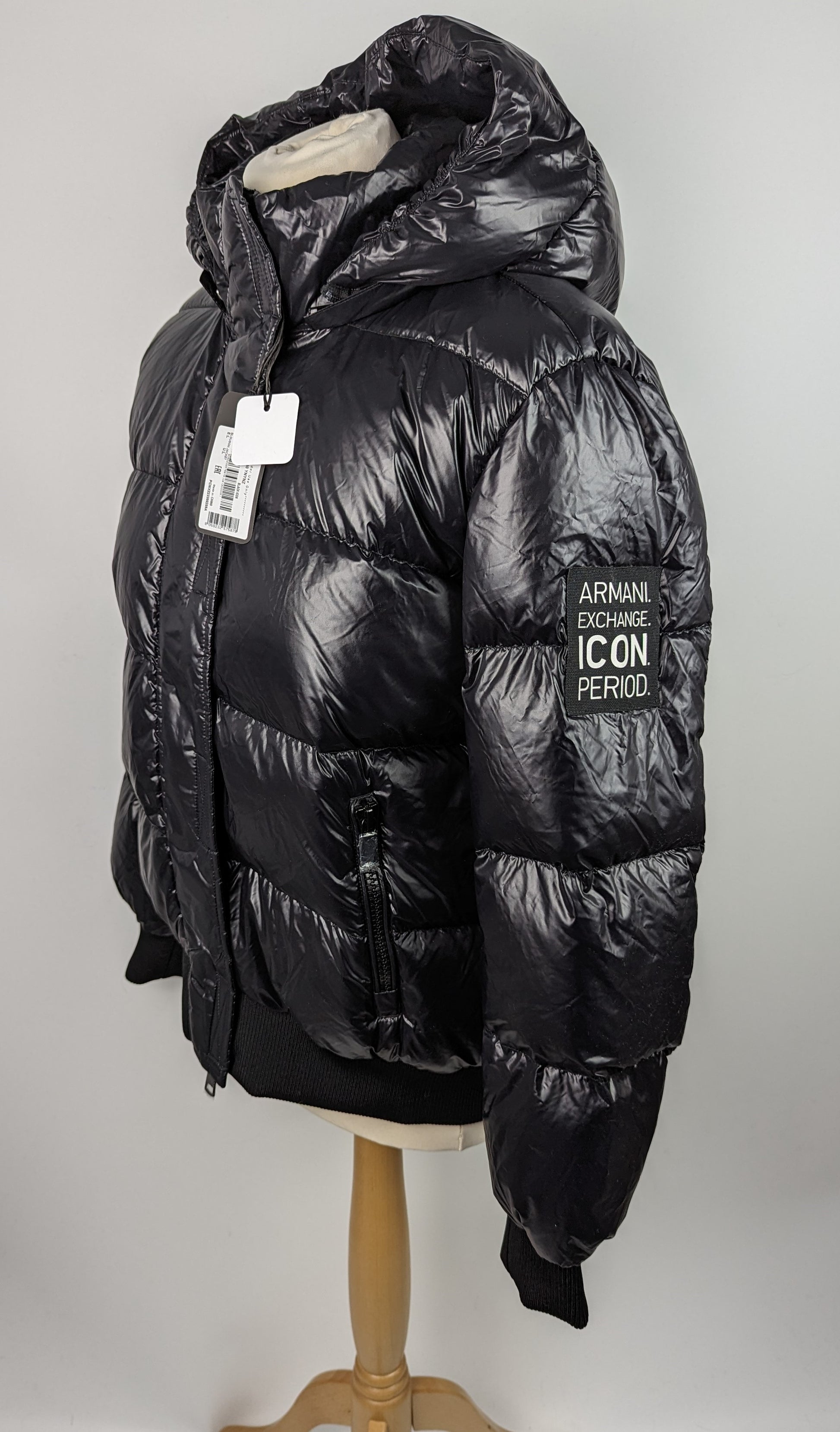 Stay warm and dry in style with the padded and quilted ARMANI EXCHANGE Icon logo jacket in black. Its front fastening and contrasting logo lettering on the sleeves make it the perfect choice for facing the elements. Made of 100% polyamide.