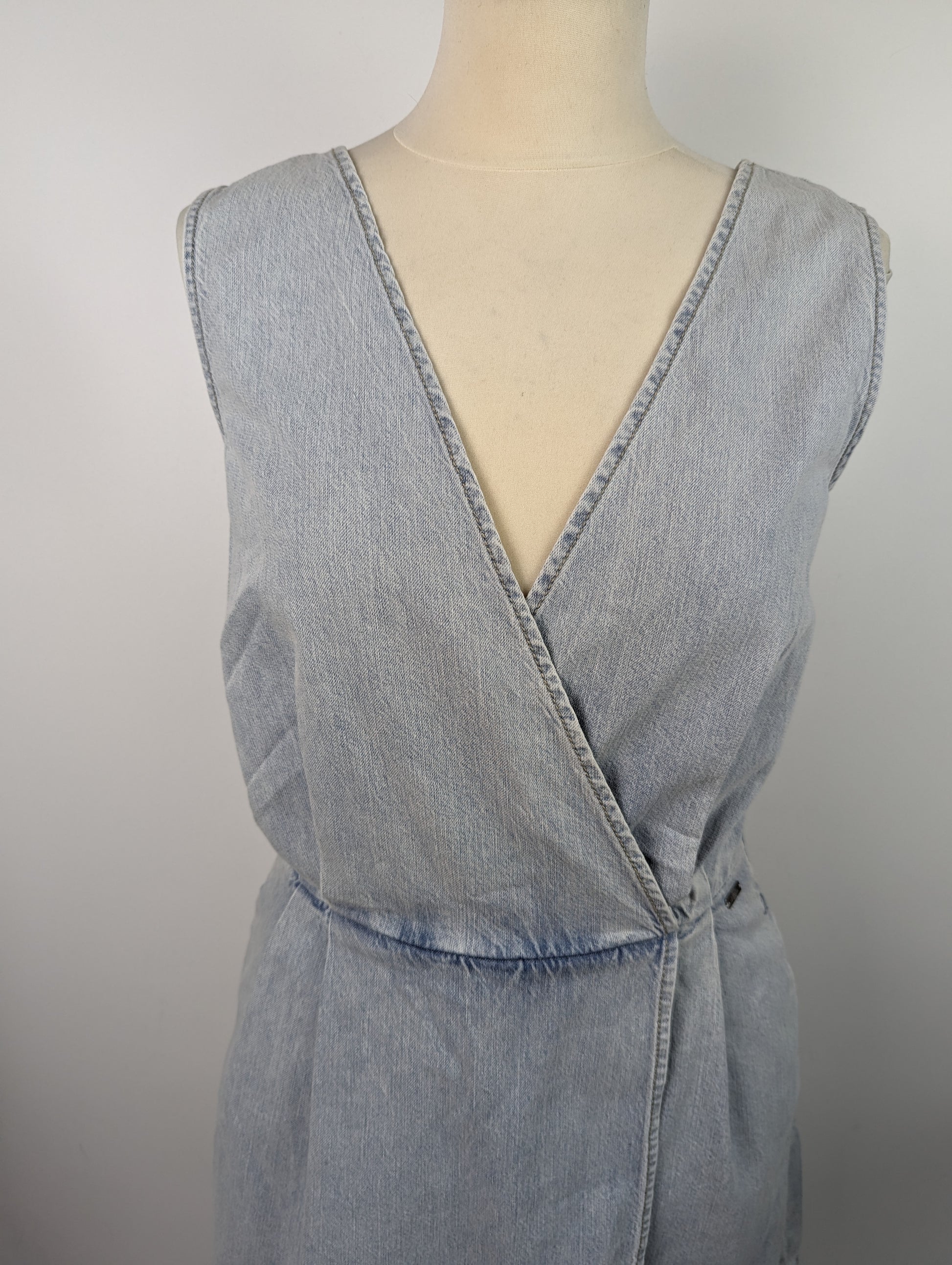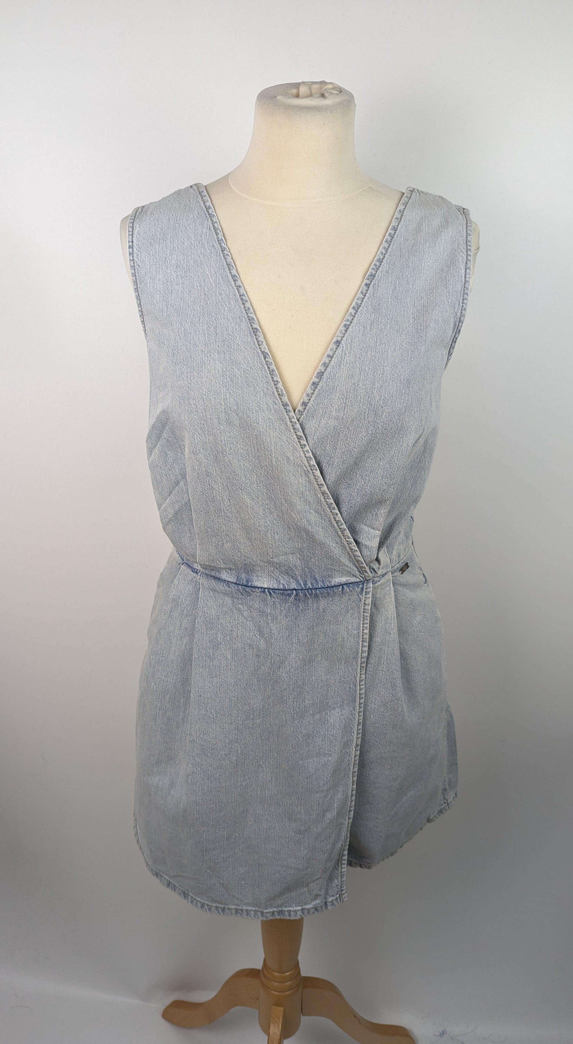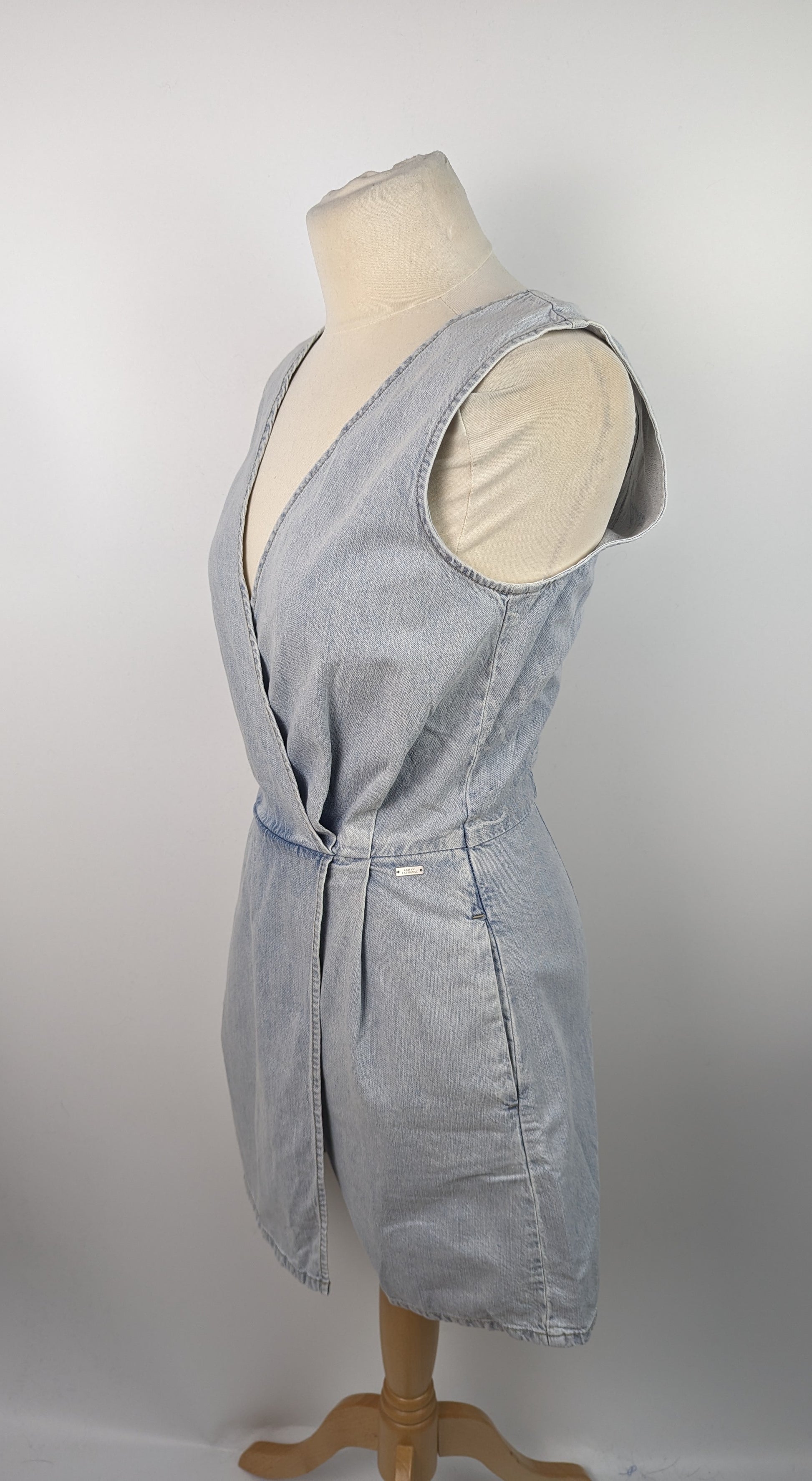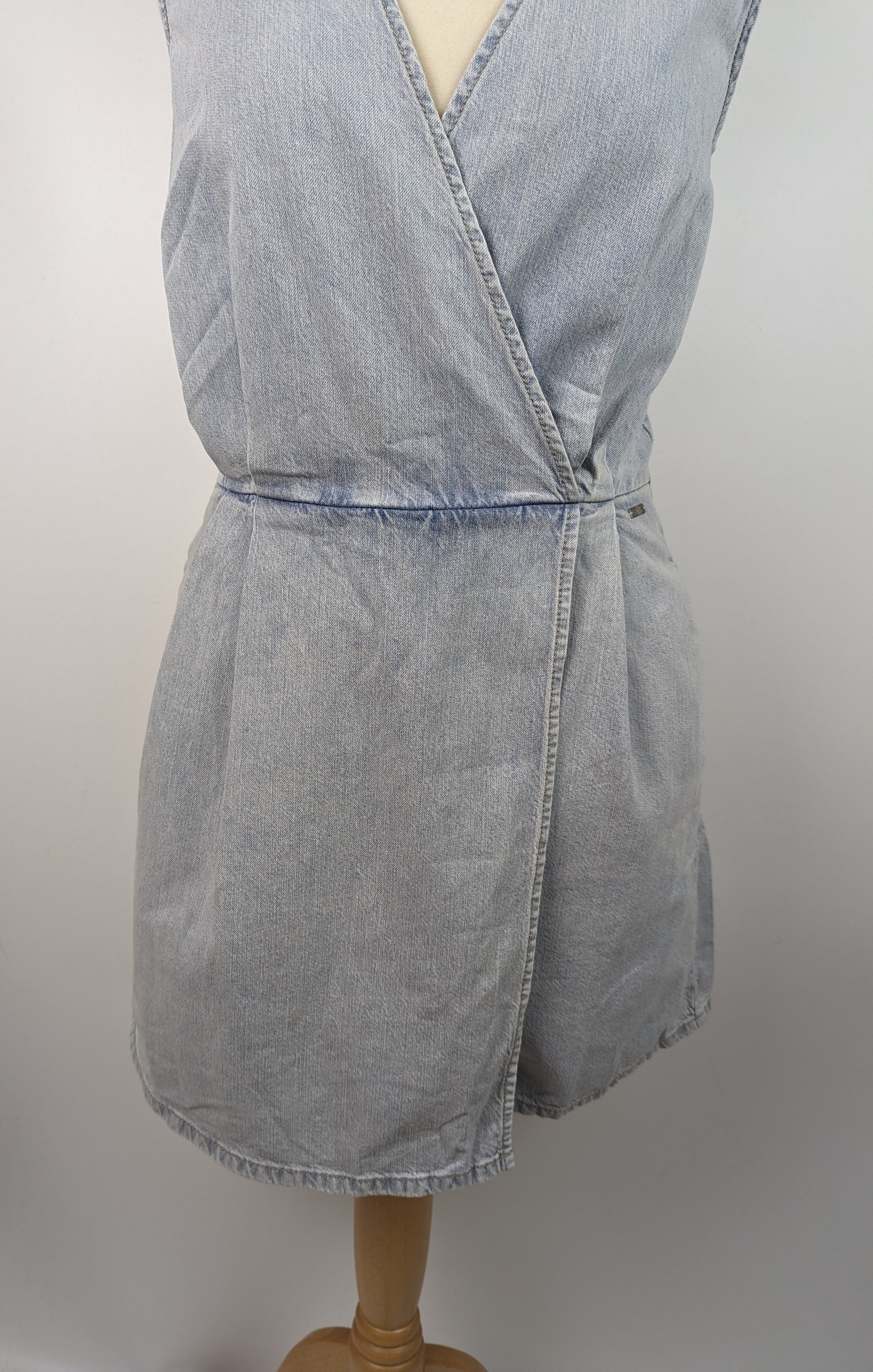 Elevate your summerwear in style with this Logo Playsuit from Armani Exchange. Crafted from organic 100% cotton ensuring a soft and luxurious feel against the skin, allowing for maximum comfort throughout the day. The playsuit boasts a flattering v neckline, and the sleeveless construction allows for breathability and freedom of movement. The cinched waist is designed to flatter and accentuate your figure, creating a silhouette that is both sophisticated and feminine. Finished in a light blue denim wash, the signature brand monograph imprinted throughout emboldens the look. This simplistic yet elegant garment offers a stylish design with a touch of modernity that will effortlessly elevate any casual ensemble with a touch of style and grace.