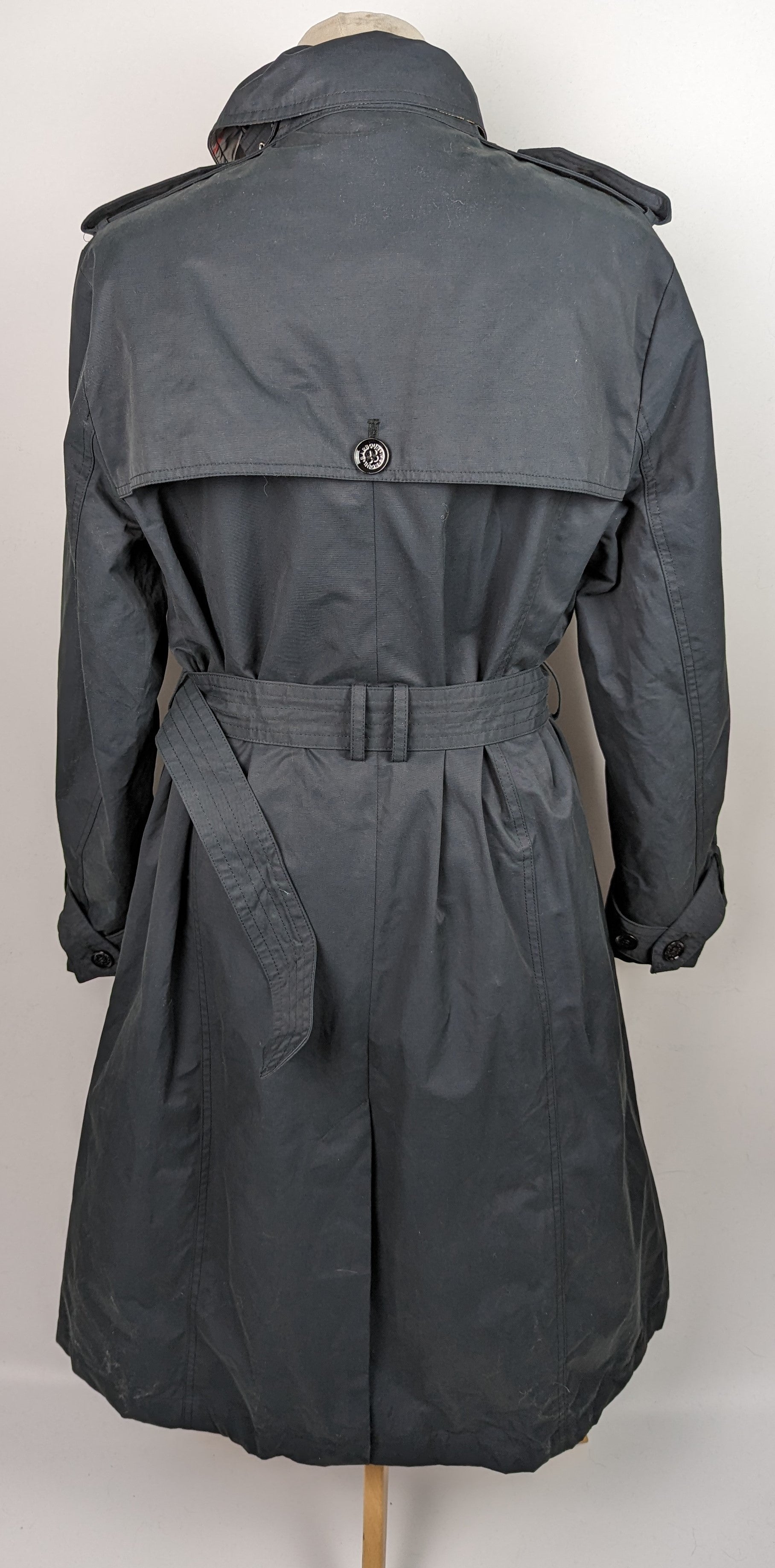 The Barbour Beal Showerproof features a longline design with a belt at the waist for a waterproof breathable trench coat. Cut to a tailored fit, this jacket boasts trench detailing with a front zip fastening and mock horn button placket. This jacket is lined with a classic tartan and finished with a Barbour embroidery to the pocket.