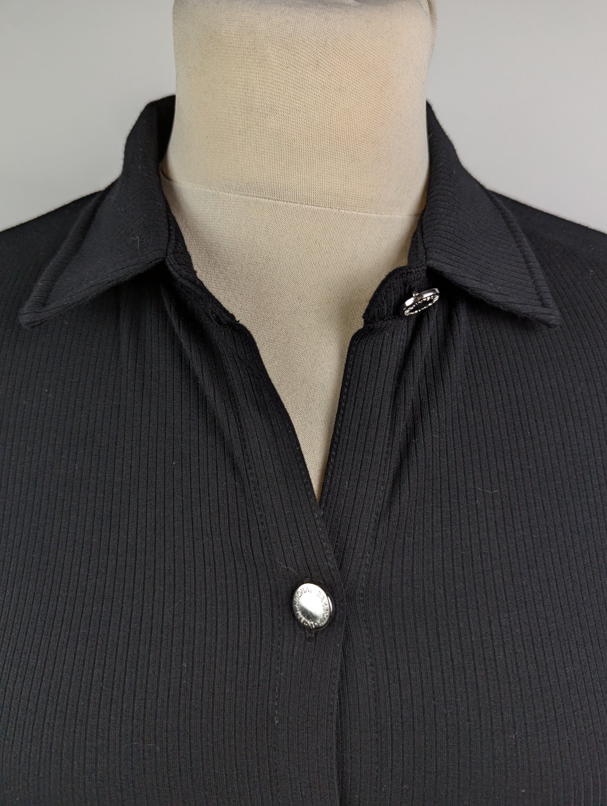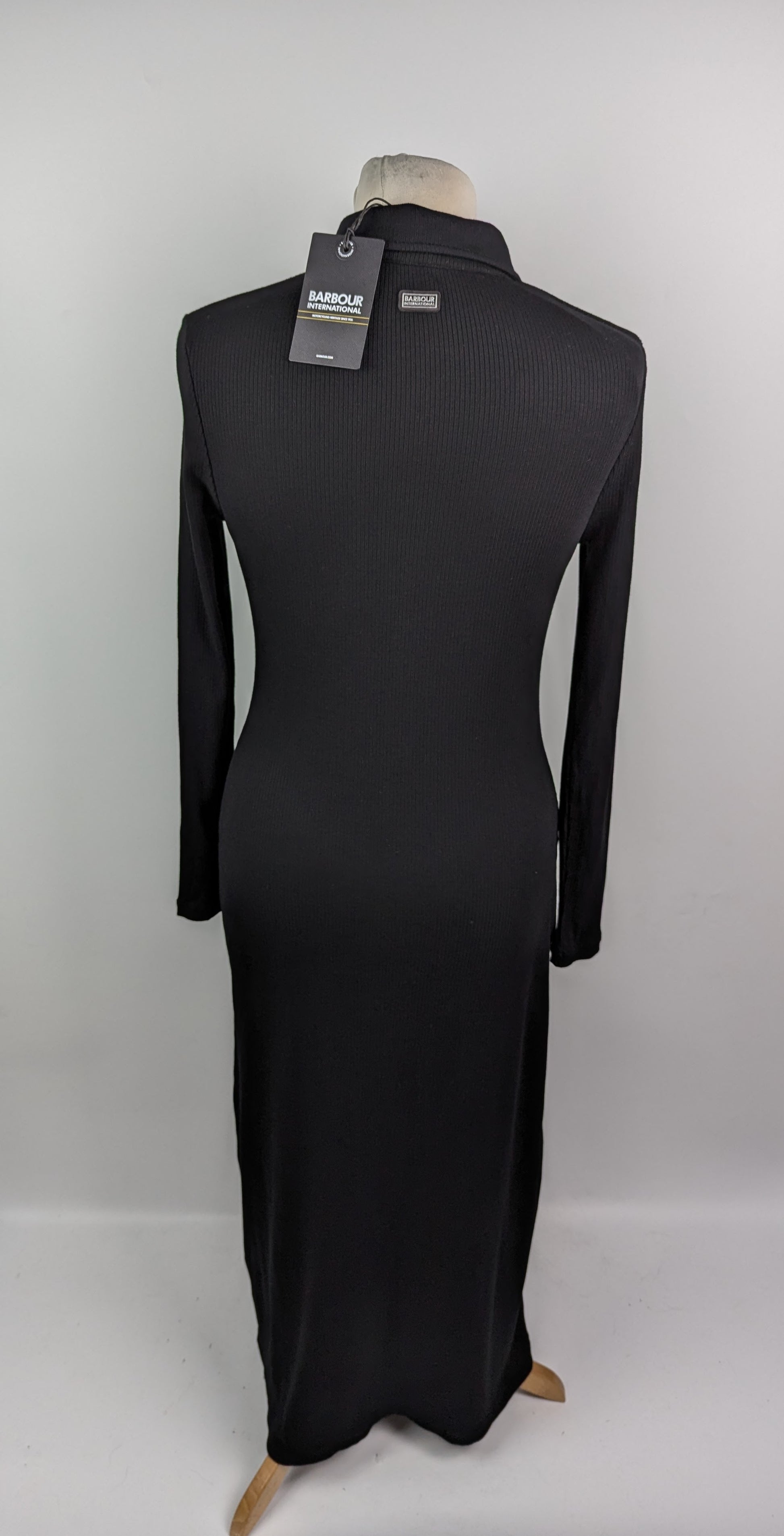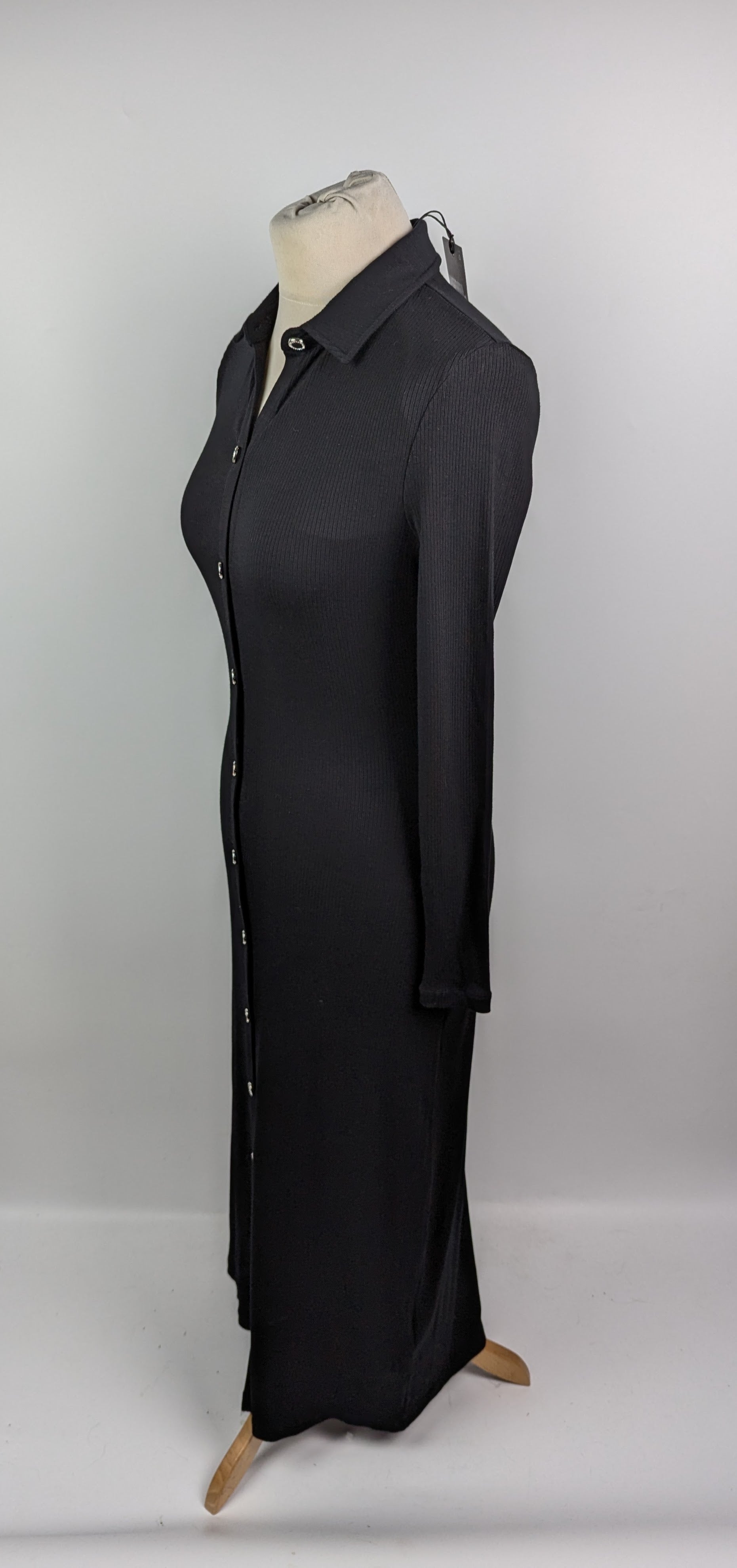 There's no doubt a little black dress is a wardrobe staple, but the B.Intl Della Knitted Midi Dress takes this style up a gear. Crafted to a flattering slim fit from an elasticated ribbed jersey fabric, this long-sleeved midi dress is detailed with our new bright silver branded buttons and finished with a preppy collar.