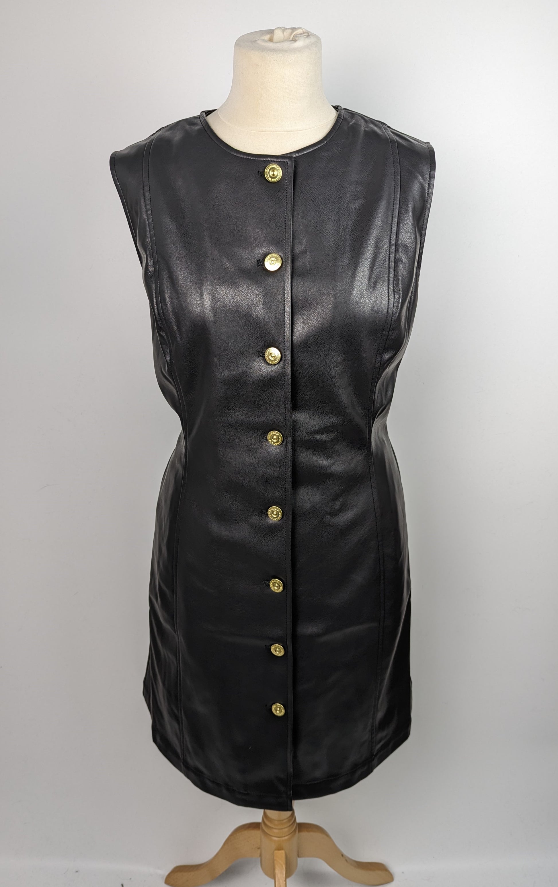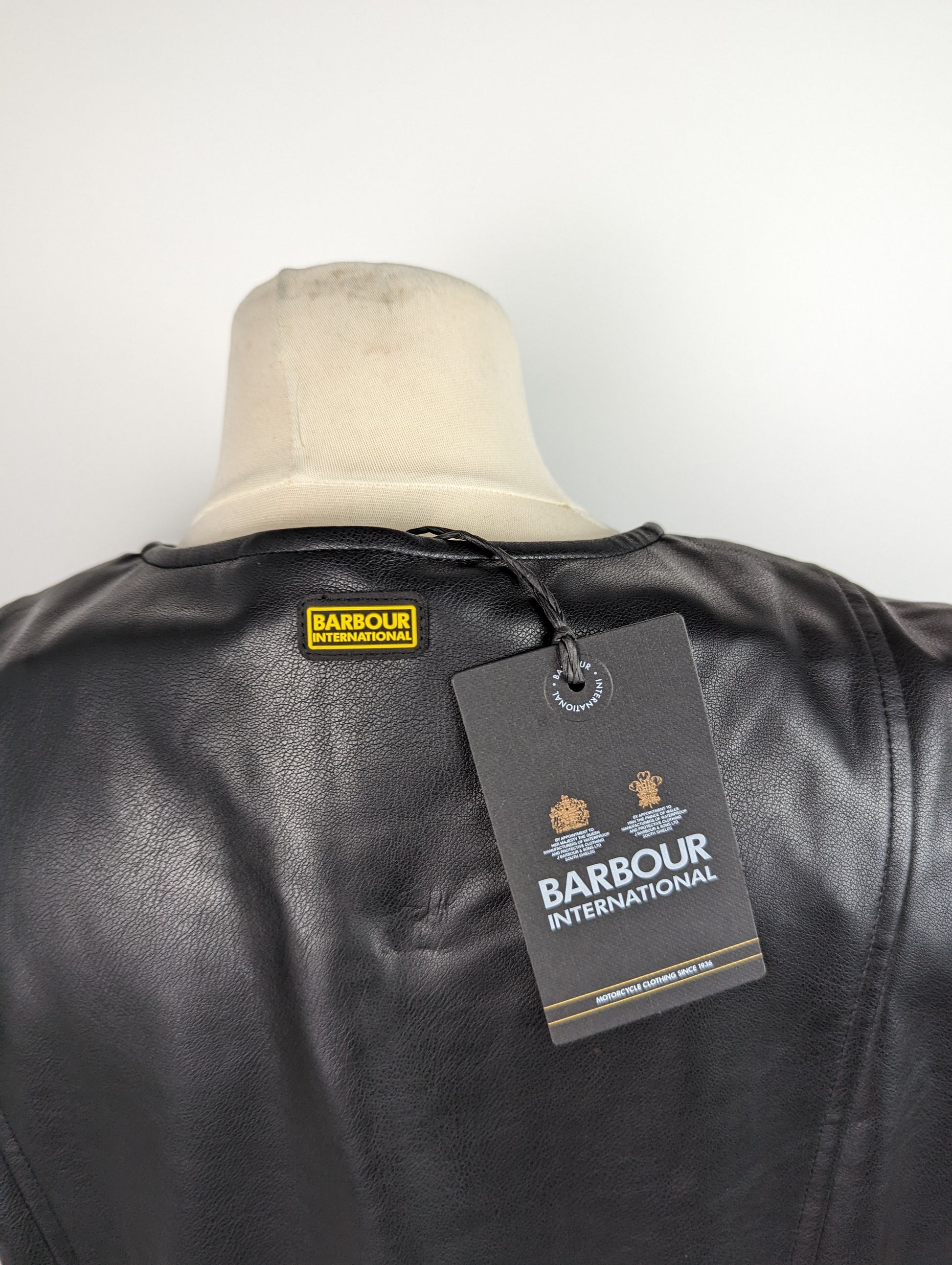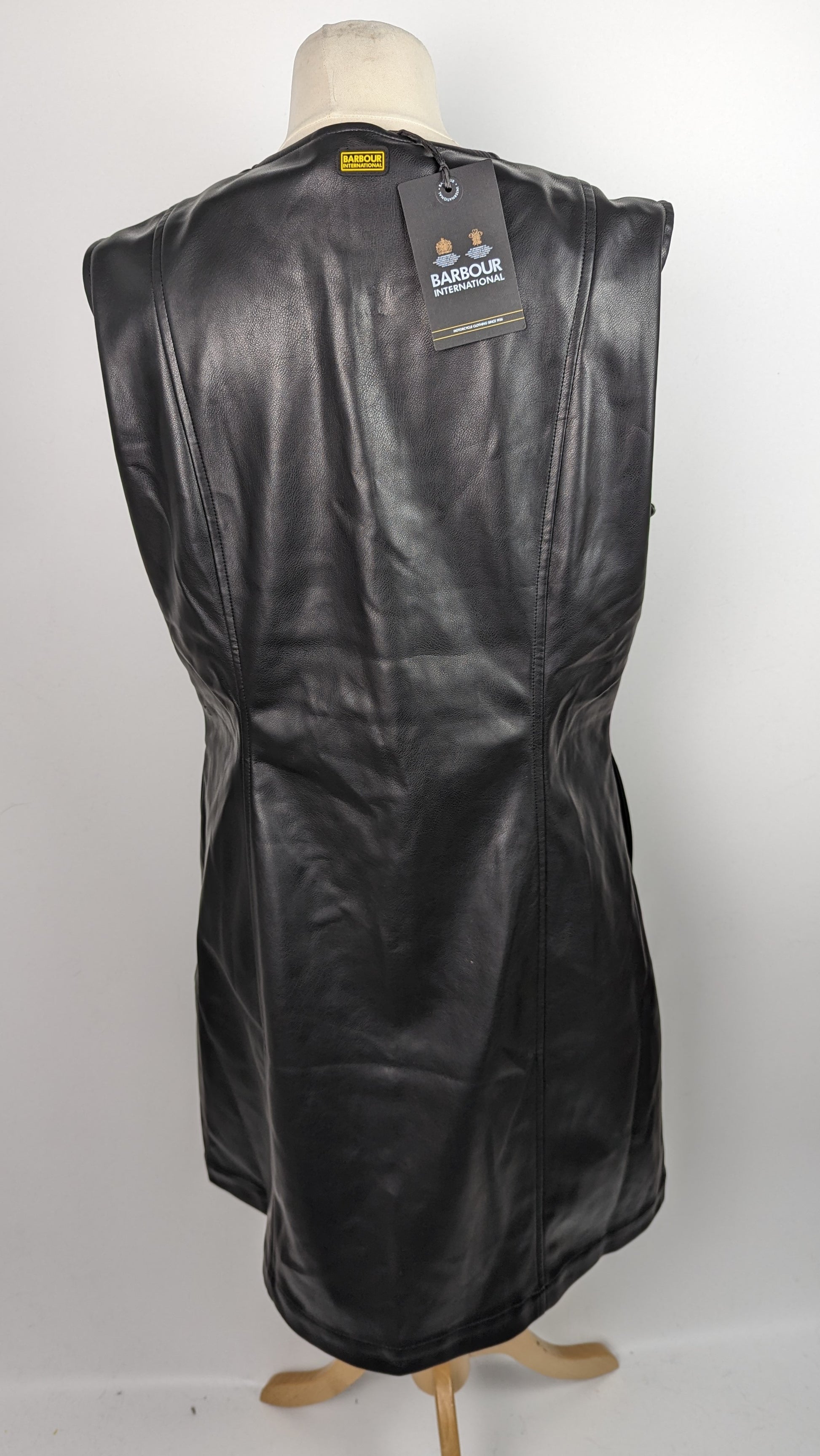 The BARBOUR INTERNATIONAL Morini Dress takes inspiration from the brand's motorcycling heritage with its leather-look fabric and button-front design. Darts to the waist create a figure-flattering fit, while the sleeveless silhouette means the dress can be seamlessly layered in cooler conditions. Crafted in a smooth, soft, luxury feel faux leather, this could be your next perfect staple piece.