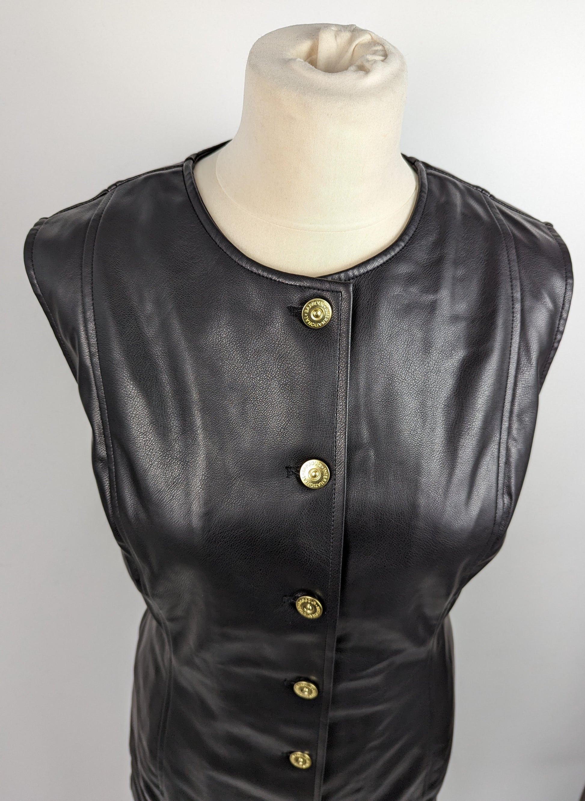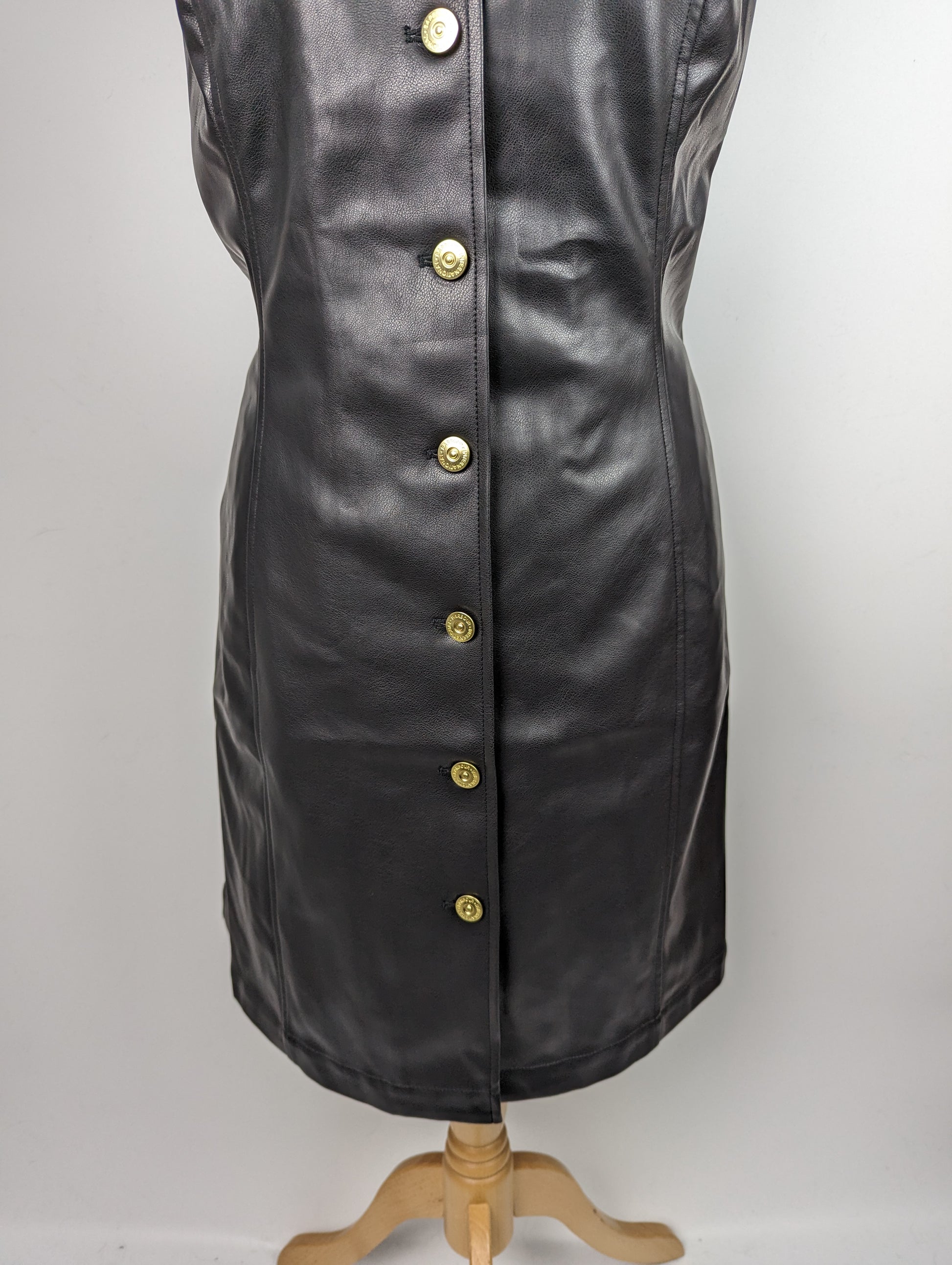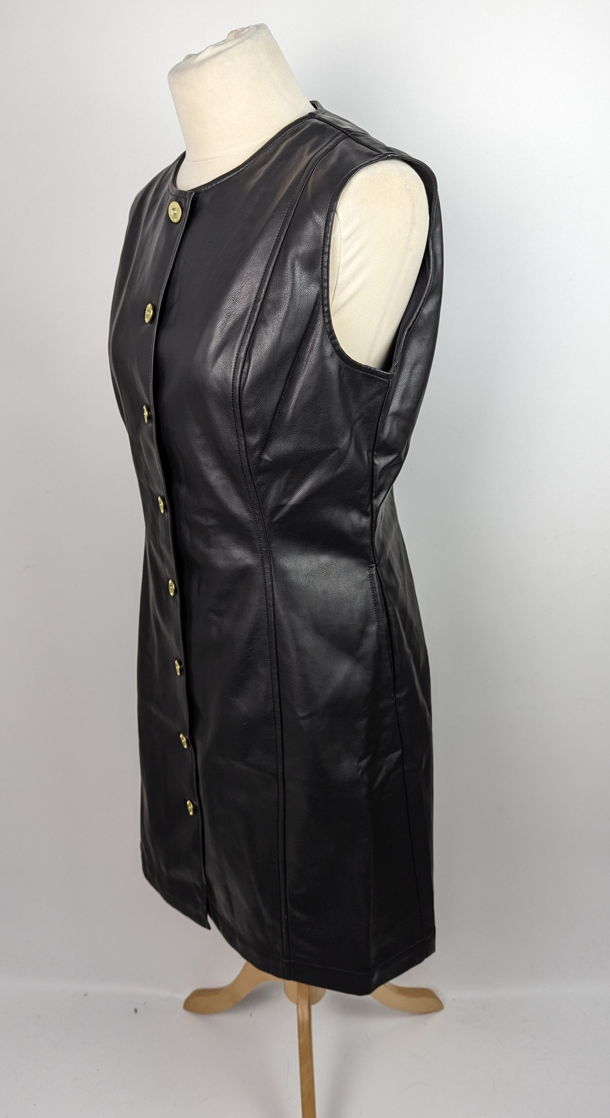 The BARBOUR INTERNATIONAL Morini Dress takes inspiration from the brand's motorcycling heritage with its leather-look fabric and button-front design. Darts to the waist create a figure-flattering fit, while the sleeveless silhouette means the dress can be seamlessly layered in cooler conditions. Crafted in a smooth, soft, luxury feel faux leather, this could be your next perfect staple piece.
