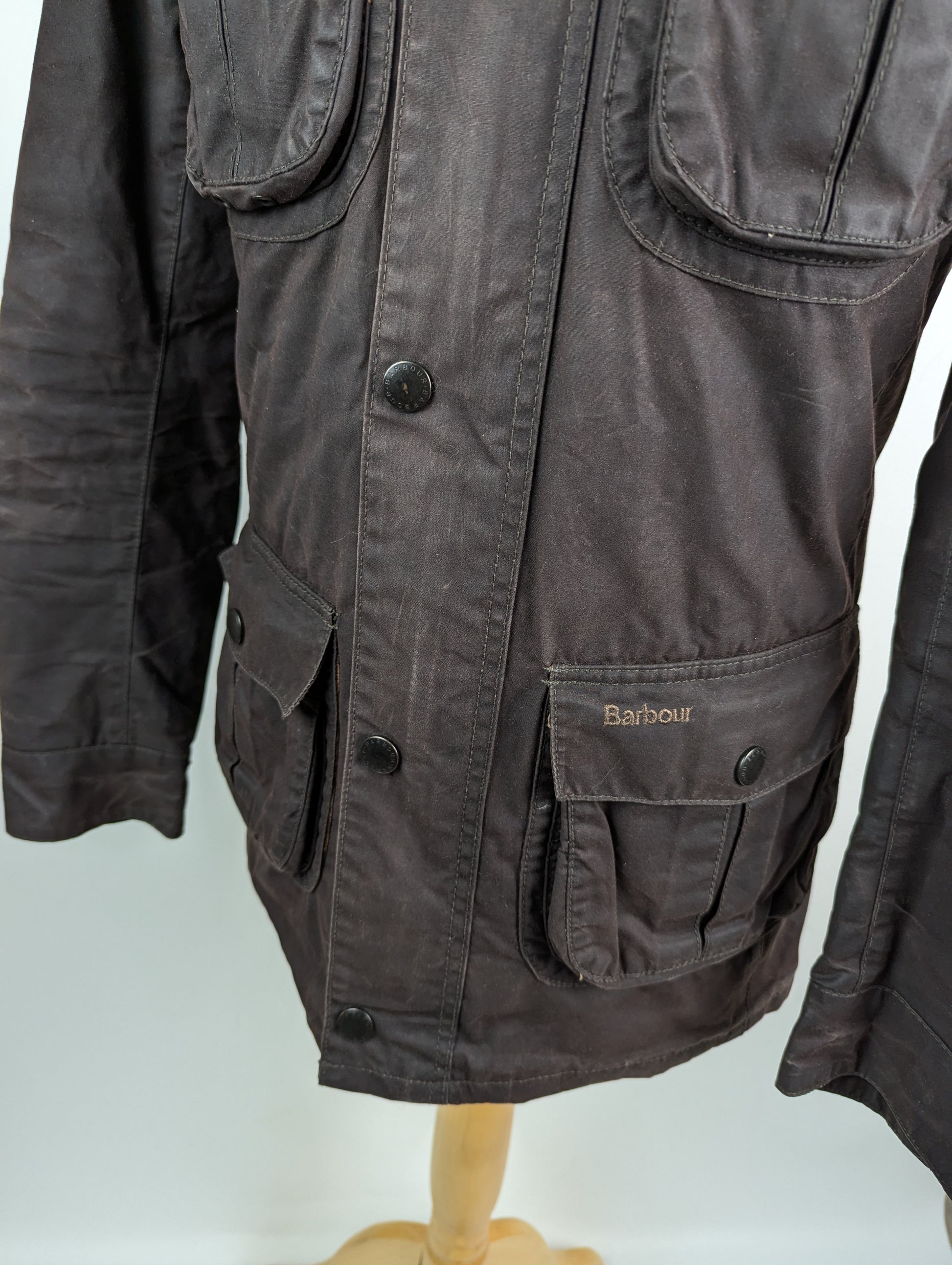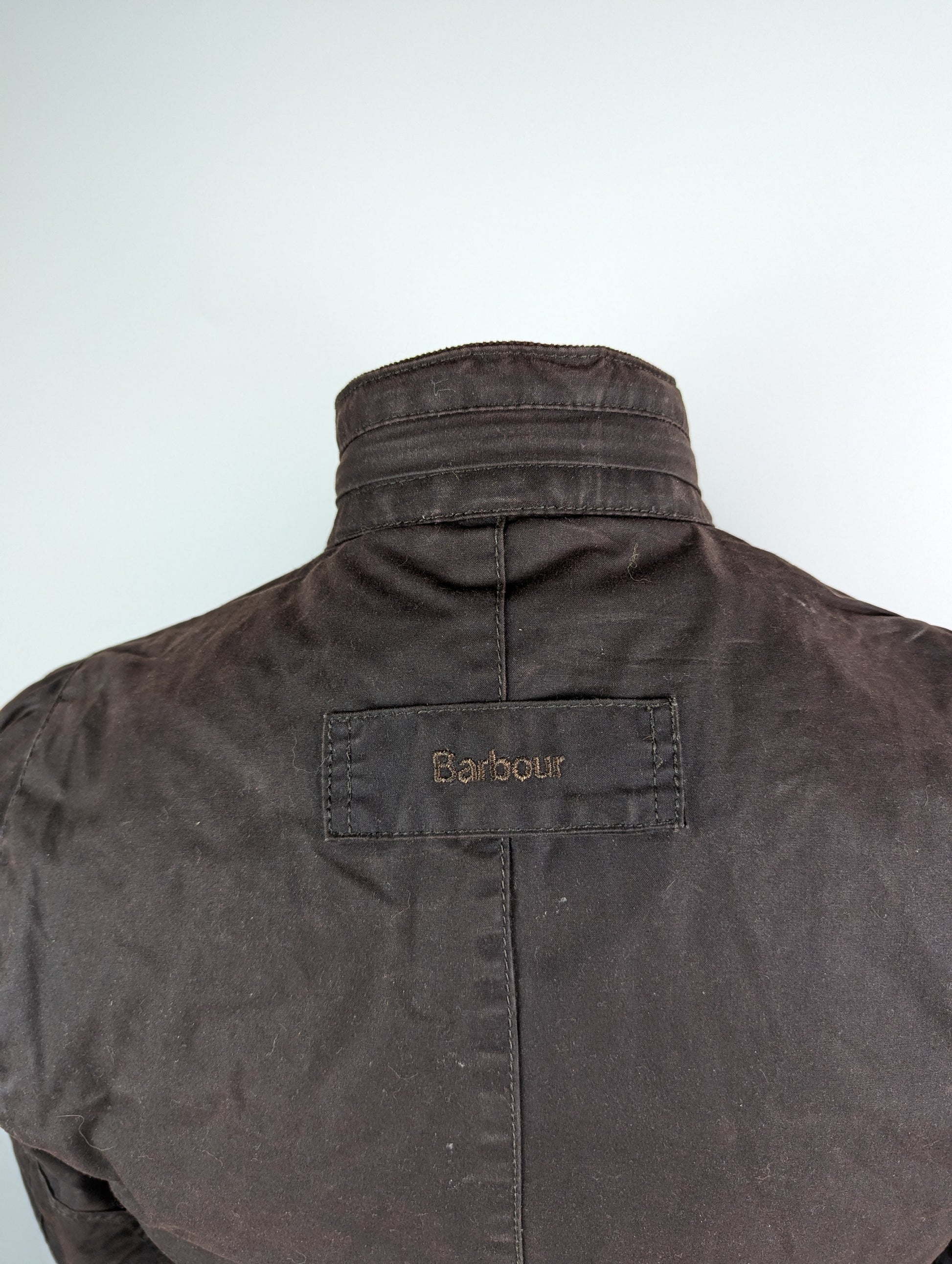 Water-resistant finish delivers reliable protection in challenging conditionshout, including four generous front pockets with snap closures for essential storage. The stand collar and classic silhouette maintain the signature Barbour aesthetic while providing protection against the elements.