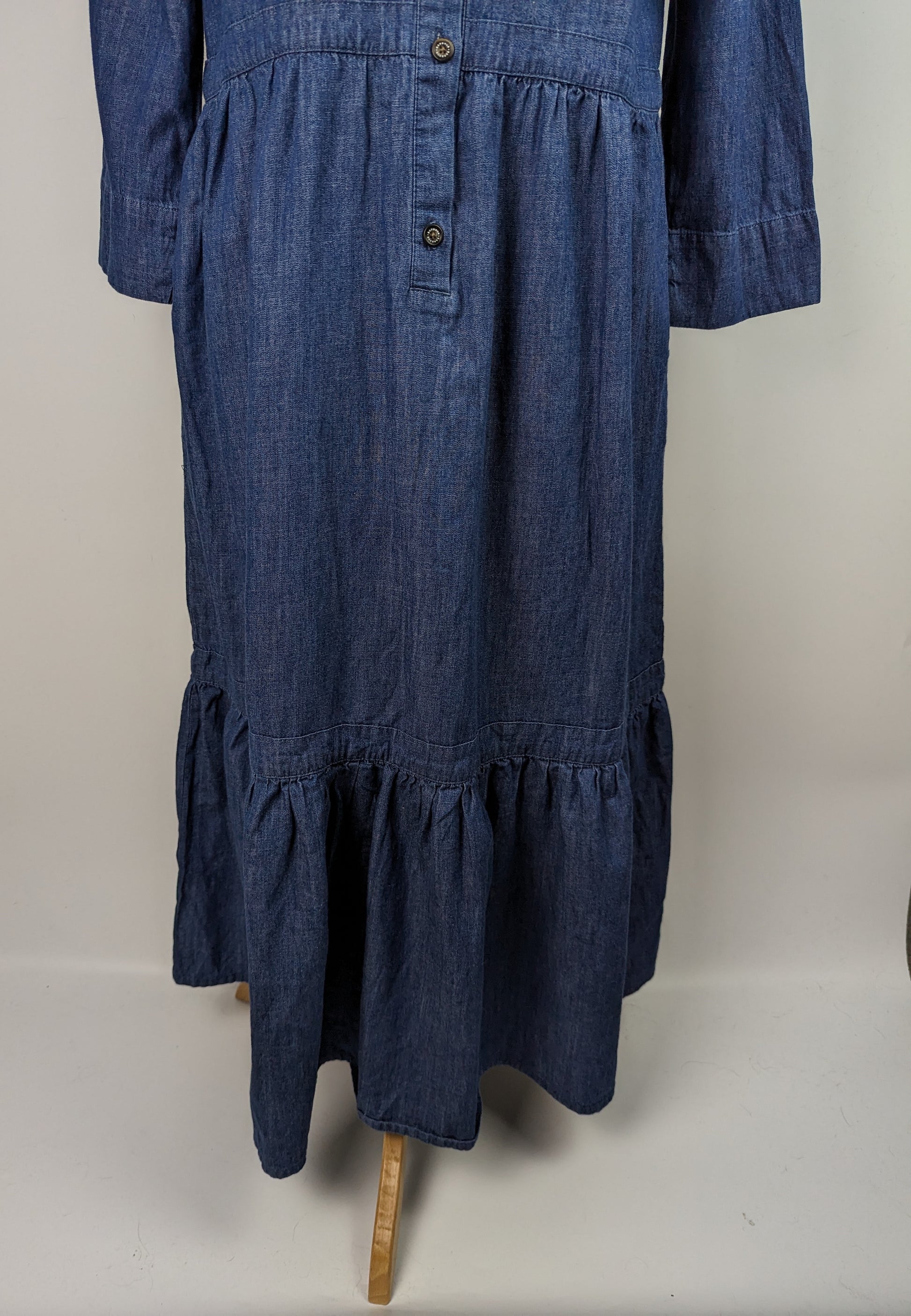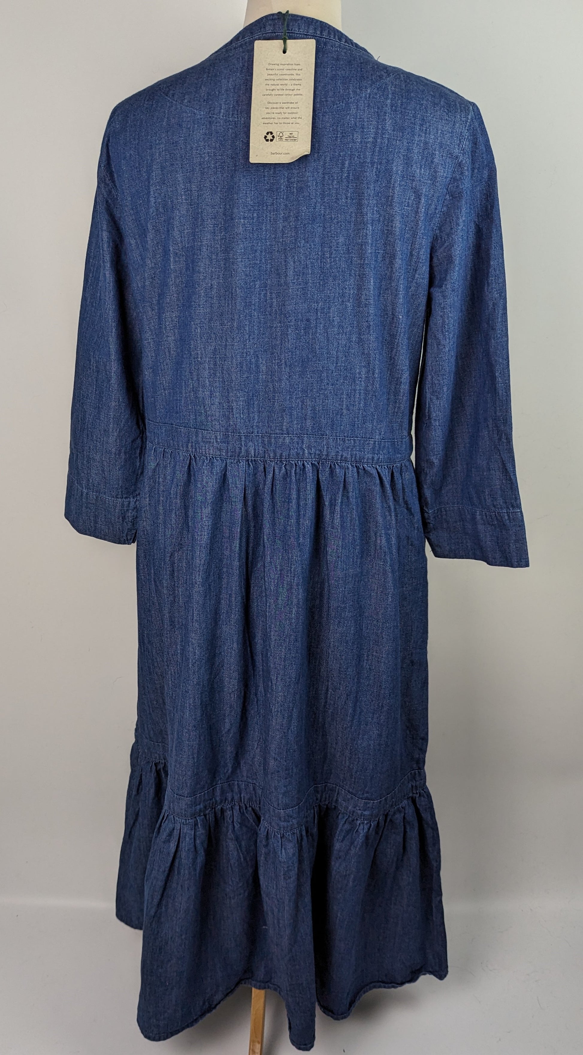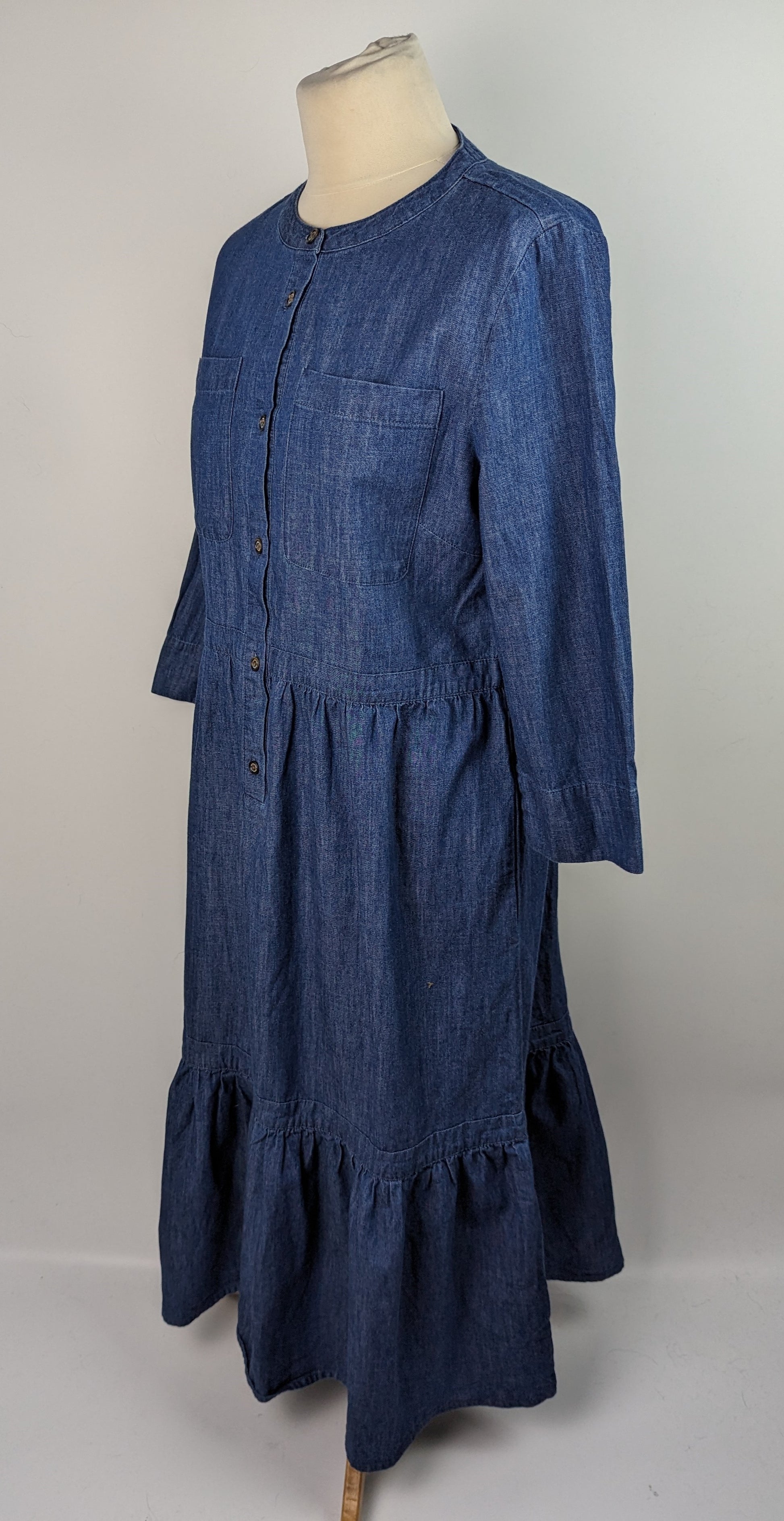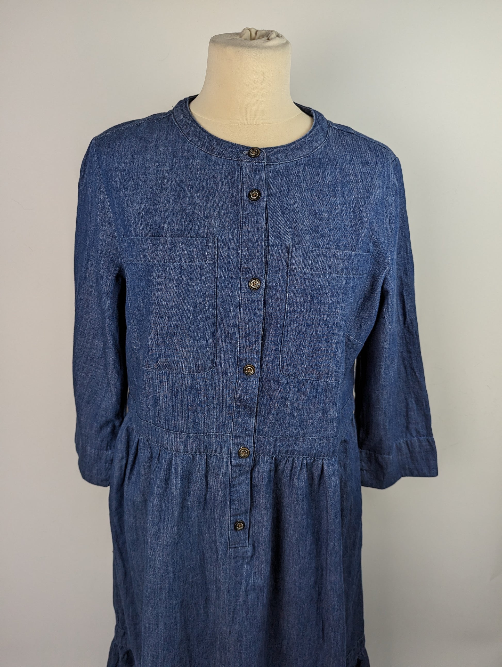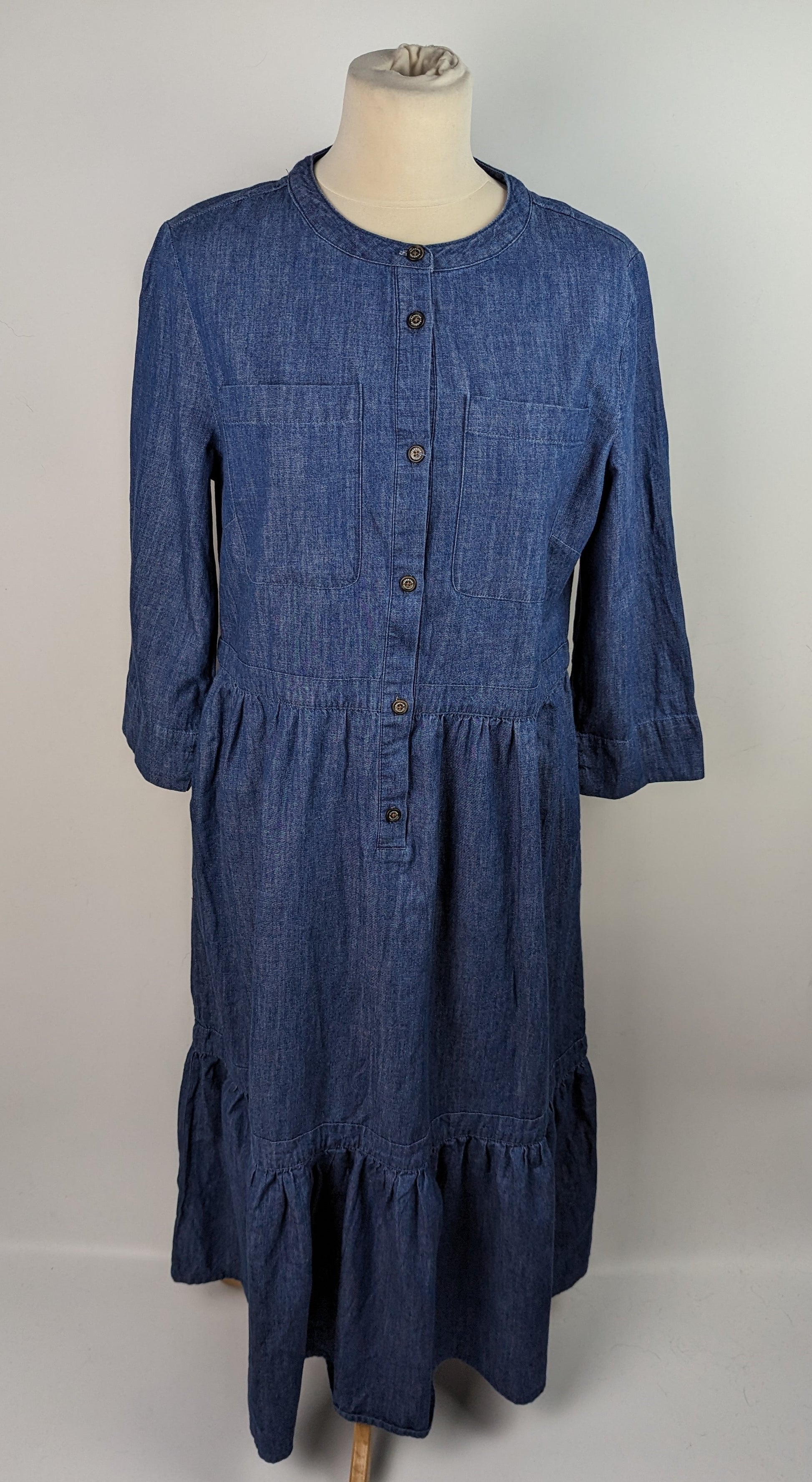 The Barbour Bethwin Dress boasts a collarless design for an authentic washed denim feel, featuring patch pockets to the chest and a gathered peplum at the hem, this dress exudes premium style. With a half button placket showcasing imitation mother of pearl fastenings, this dress is effortlessly finished with a branded triangle ID to the back of the neck. 100% Cotton.