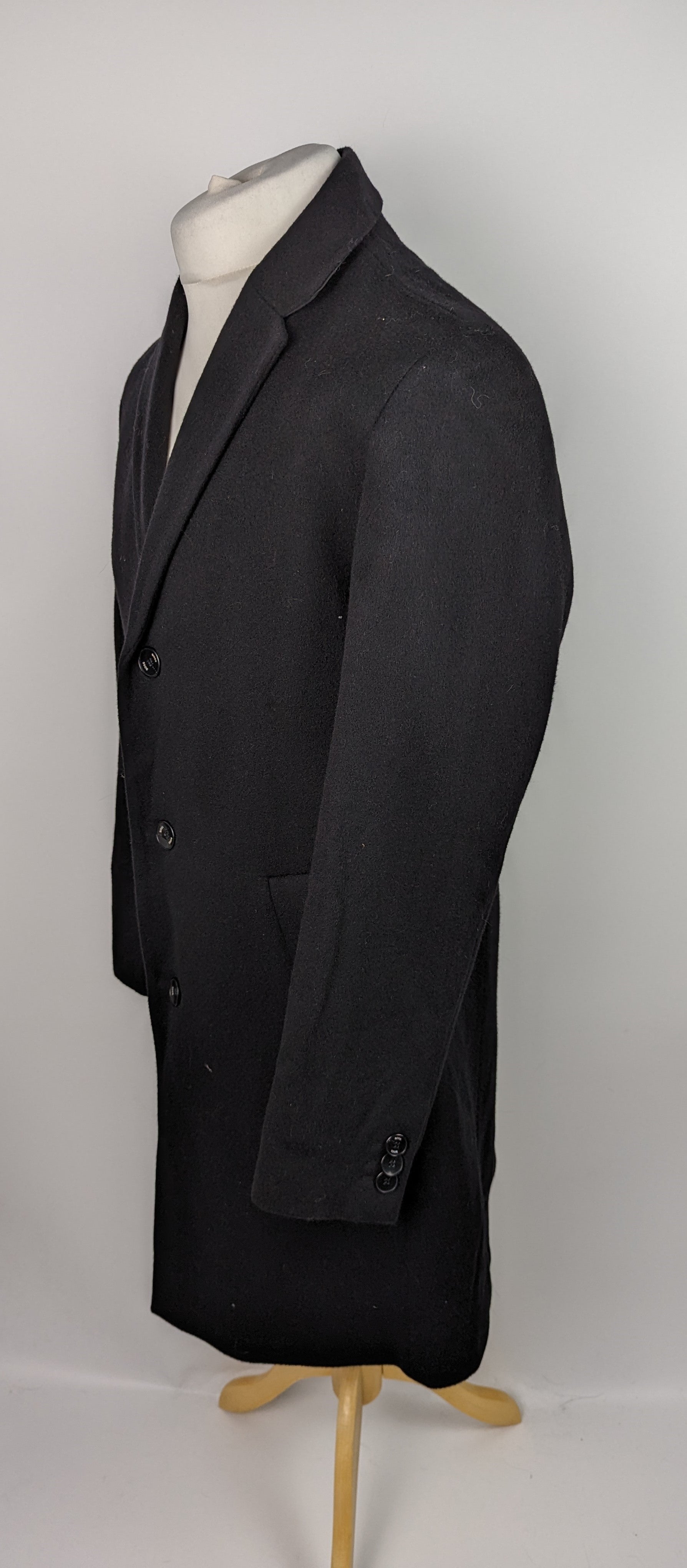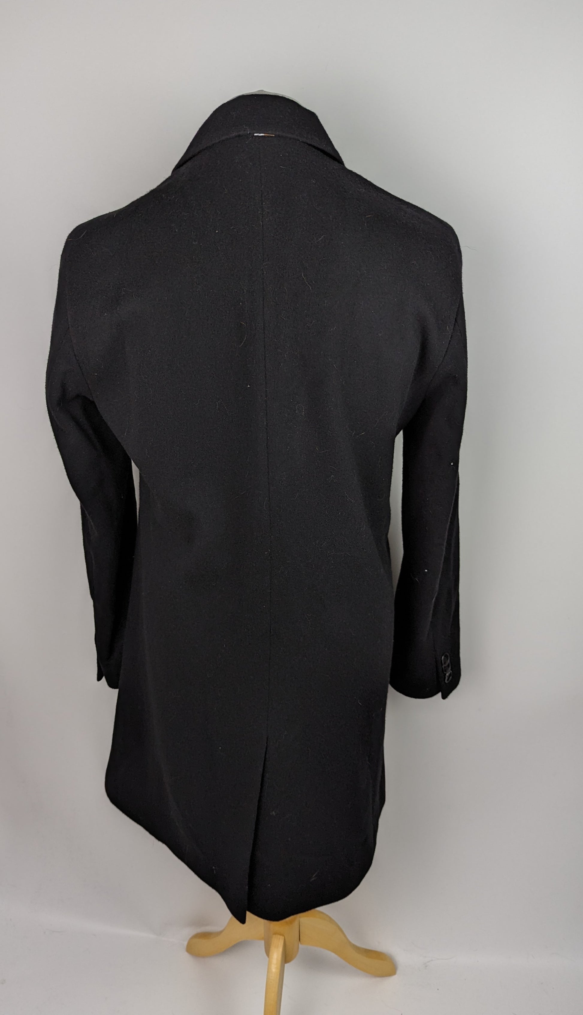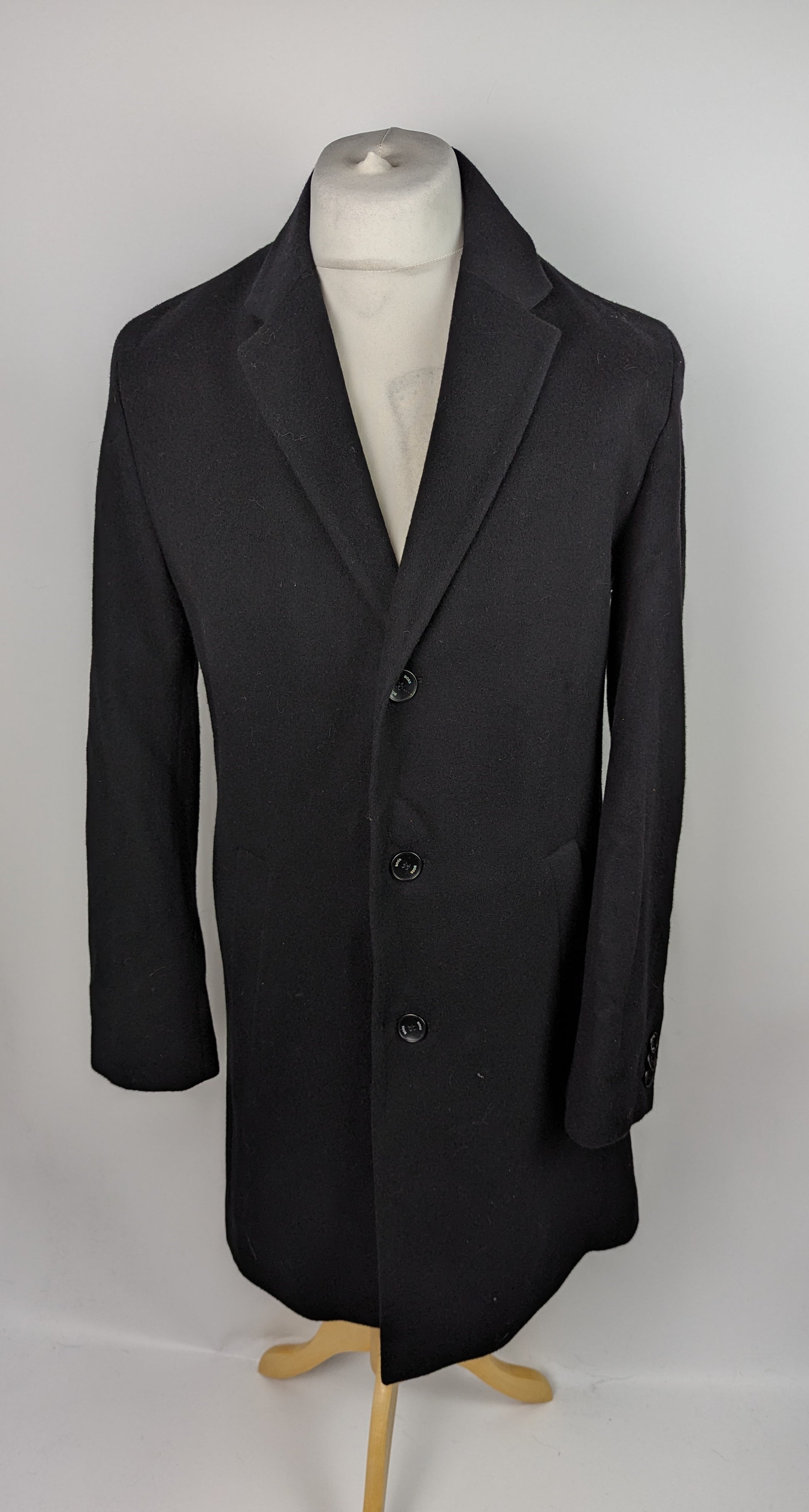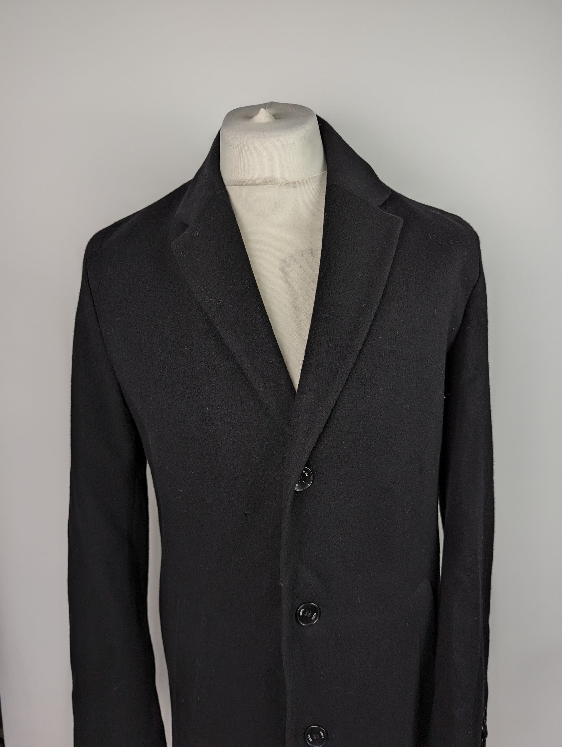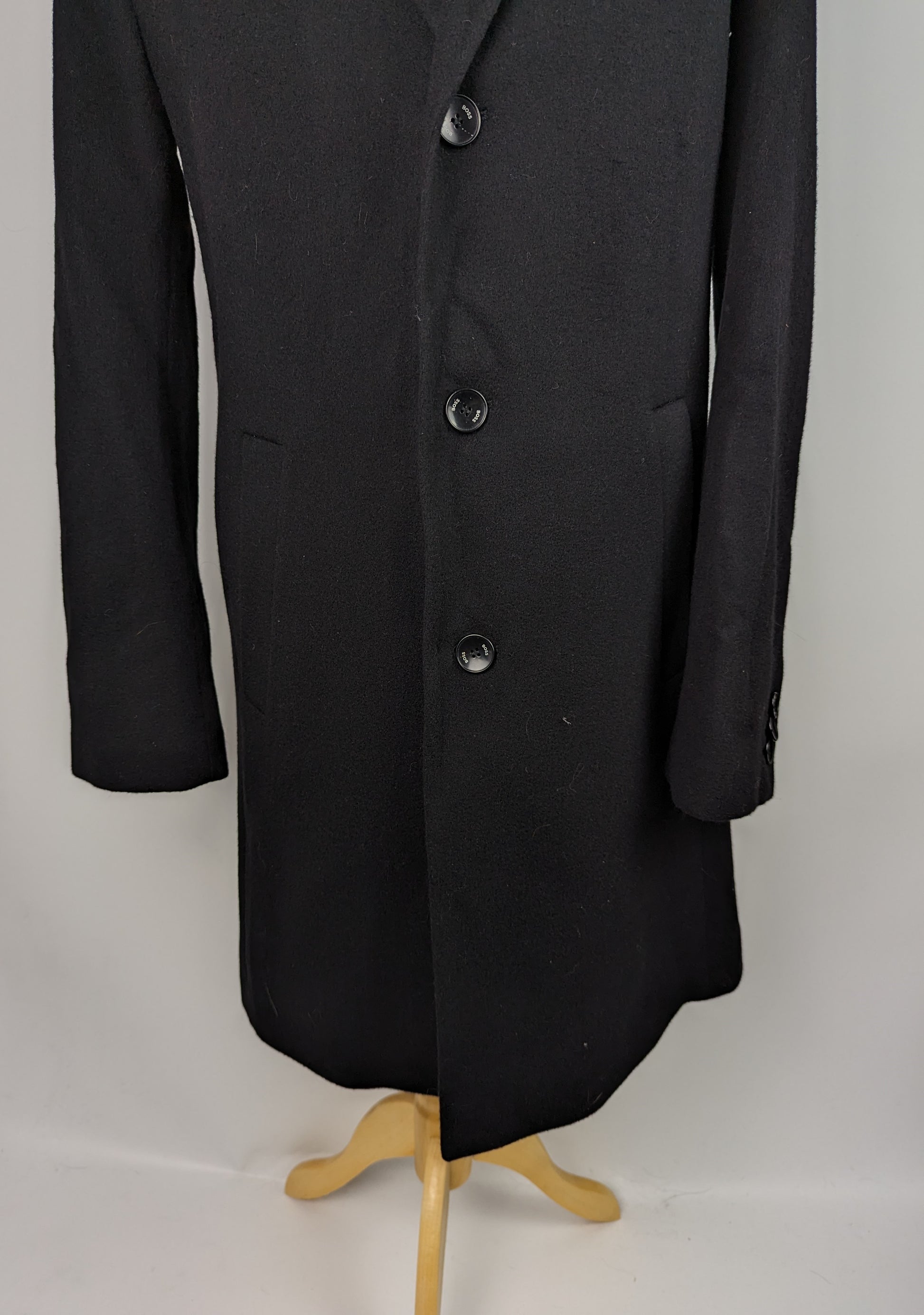 Men's stylish formal coat from BOSS. The Hyde is a smart, trench design crafted from a high quality wool blend. The all black silhouette allows for a freedom across seasons and styles. The coat fastens with a single row of buttons up the front, and has notched lapels and pockets to the front and inside lining.