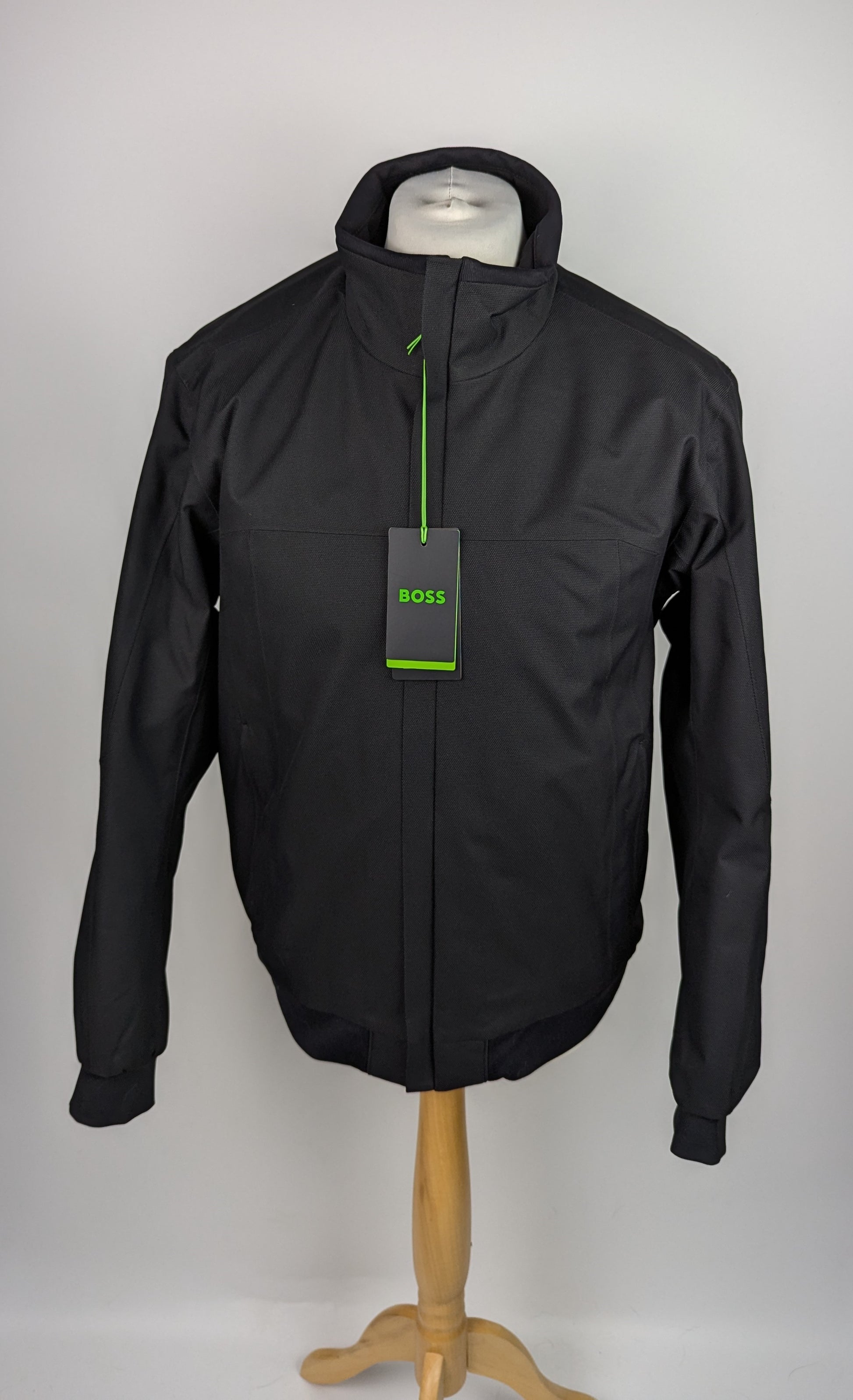 The BOSS J_Jord Mens Jacket in Black features a full zip fastening and two zipped pockets for secure storage. It also has a funnel neck and additional side pockets adorned with the recognizable Boss logo. Fleece lined on the inner at the back. Made from 100% polyester, this jacket is both stylish and practical.