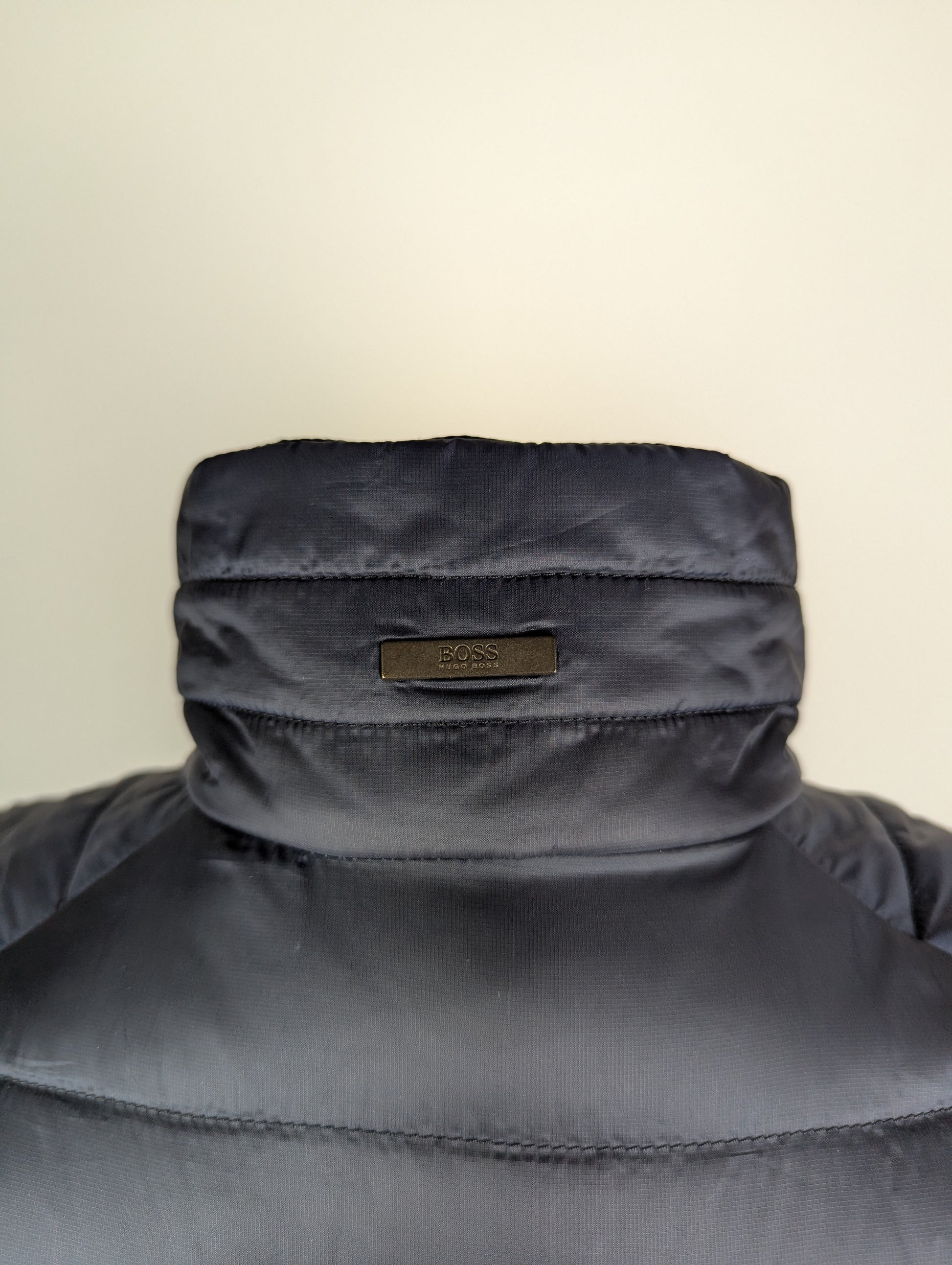 Crafted using horizontal quilting throughout the design. Two front snap button hand pockets, and zip fastening to the collar. The iconic Hugo Boss plaque logo sists behind the collar.