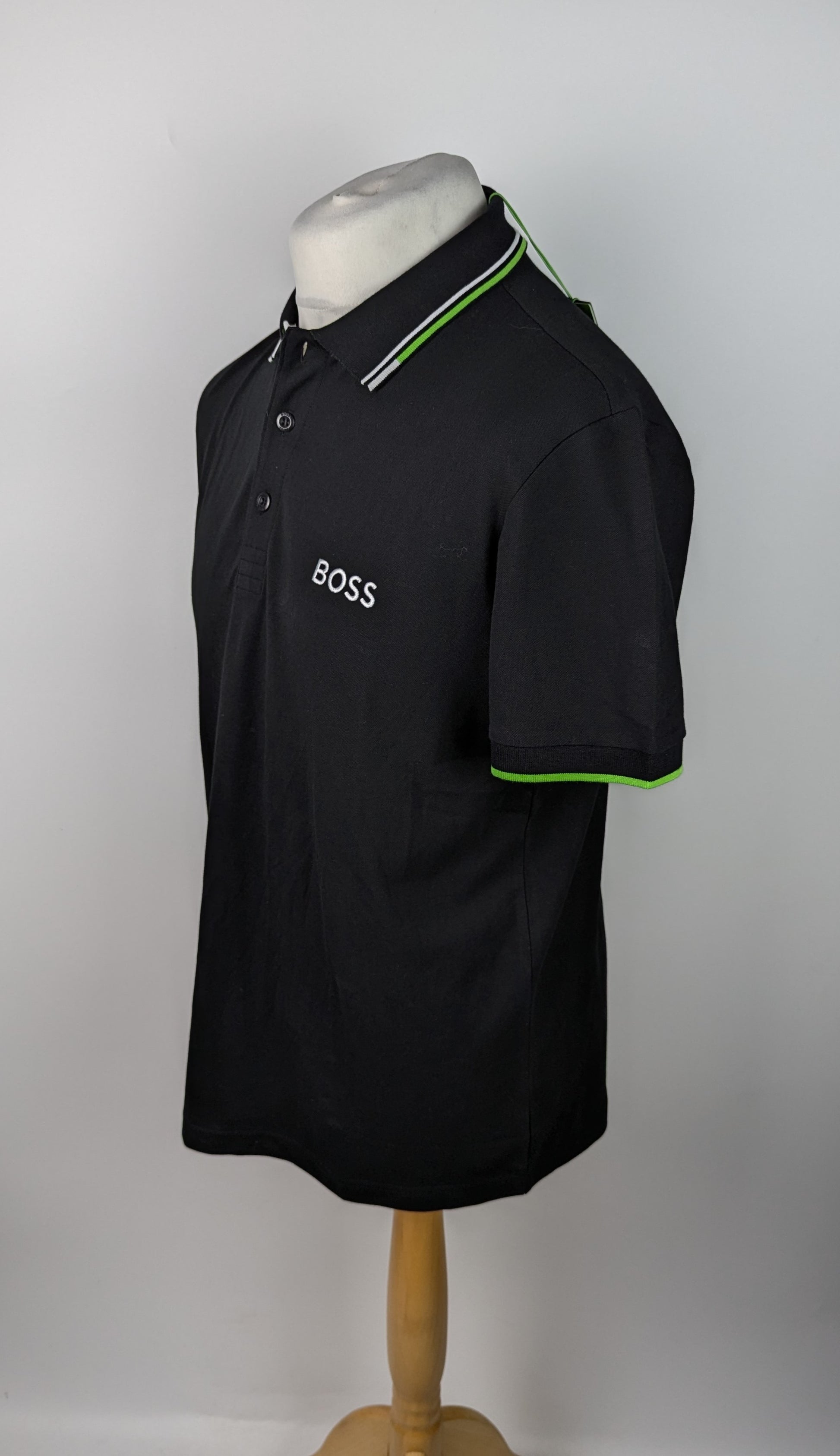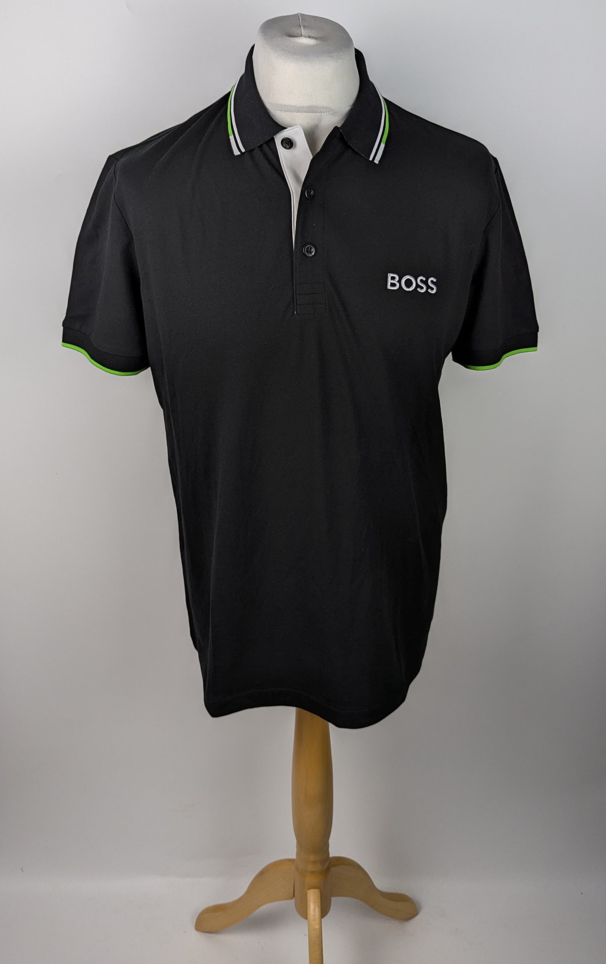 Distinguished by clean lines and timeless appeal, this BOSS polo shirt stands out with its refined attention to detail. The contrast tipping on the collar and cuffs brings a sharp finish to the classic silhouette, while the subtle logo detail keeps the look authentically BOSS. A regular fit through the body provides comfort that lasts from day to night, perfect for nights on the town, keeping it casual in the office or relaxing at home.