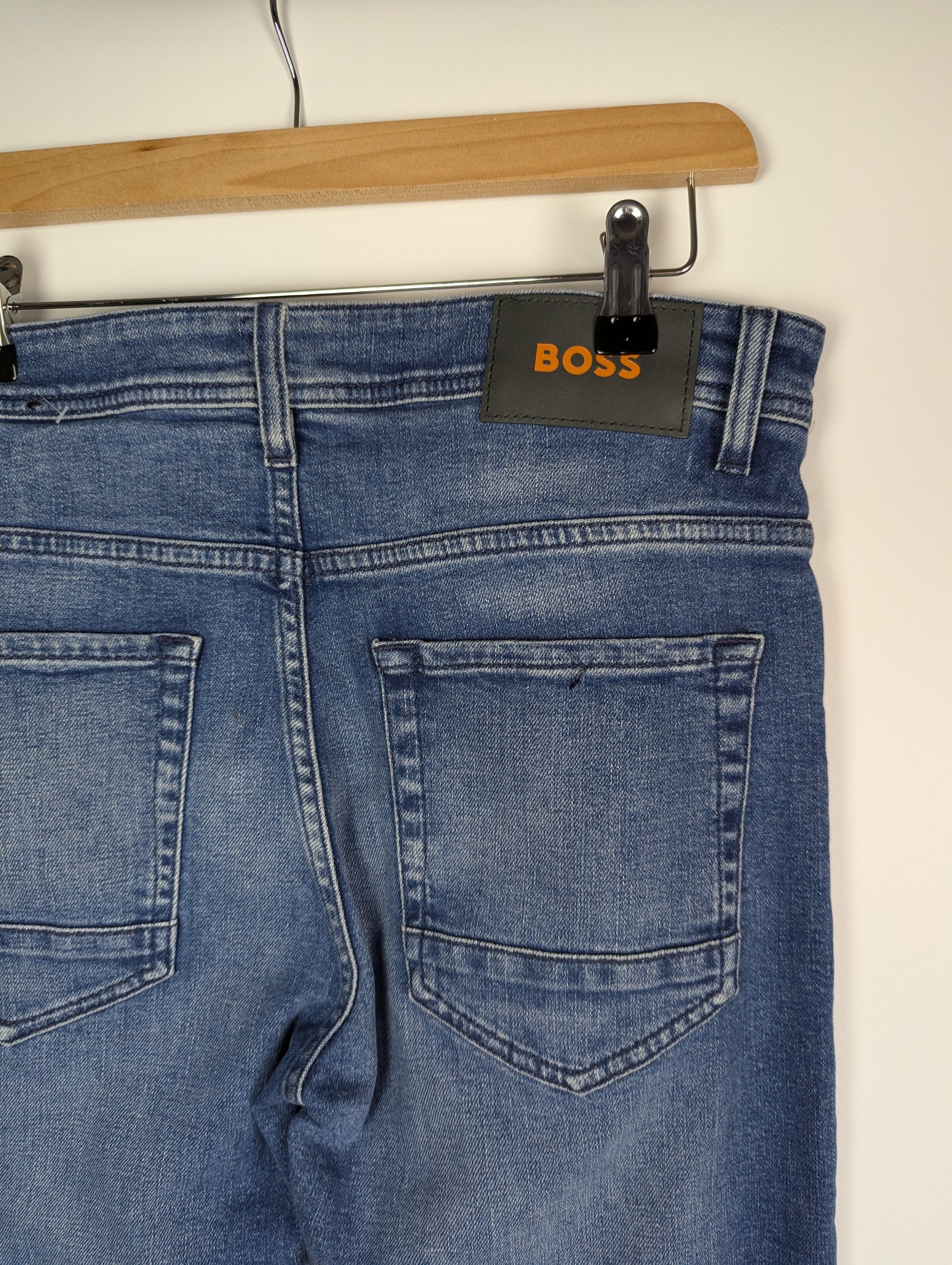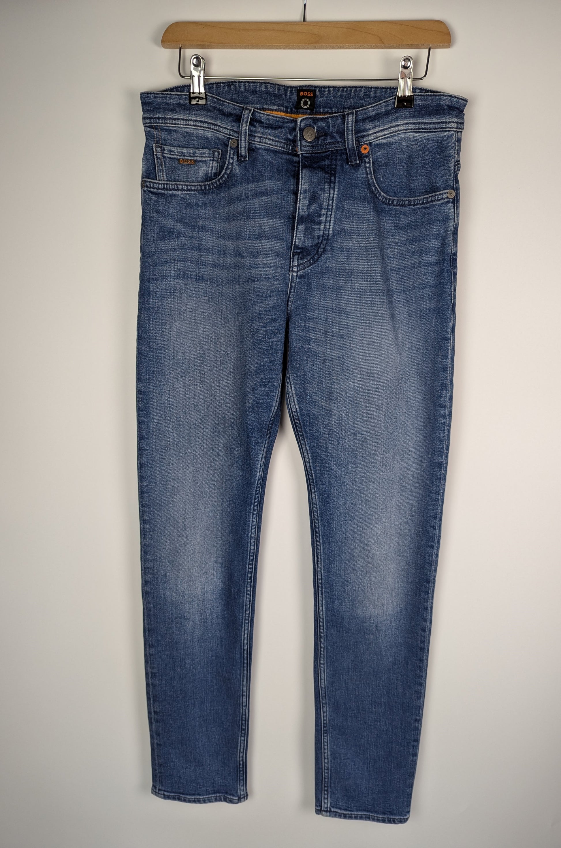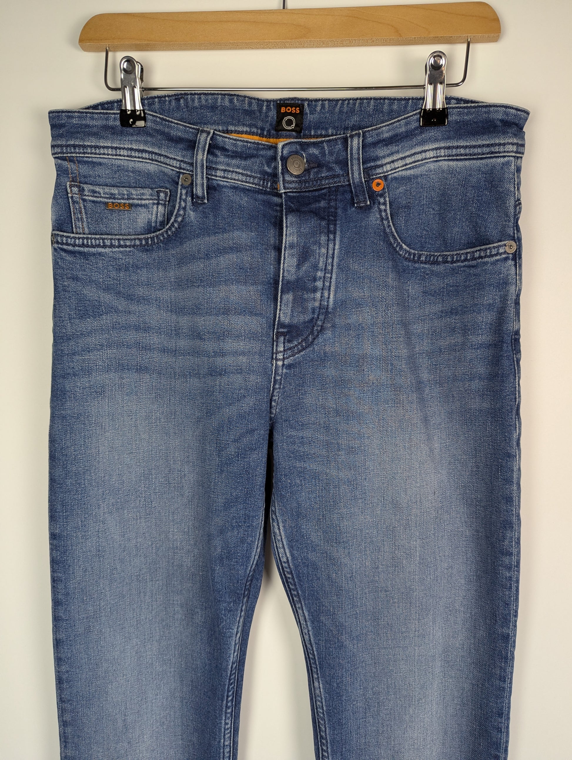 Featuring a button fly and classic 5-pocket construction, a touch of vintage charm pays homage to BOSS's rich heritage in menswear. The signature branded leather patch at the rear showcases the brand's attention to detail and commitment to quality craftsmanship. A staple addition to any wardrobe, these slim-fit jeans serve as the perfect foundation for a variety of looks. Whether you are dressing up for a night out or going for a more casual ensemble, these BOSS jeans are versatile and adaptable, ready to take you from day to night with ease. 94% cotton, 5% polyester, 1% elastane.