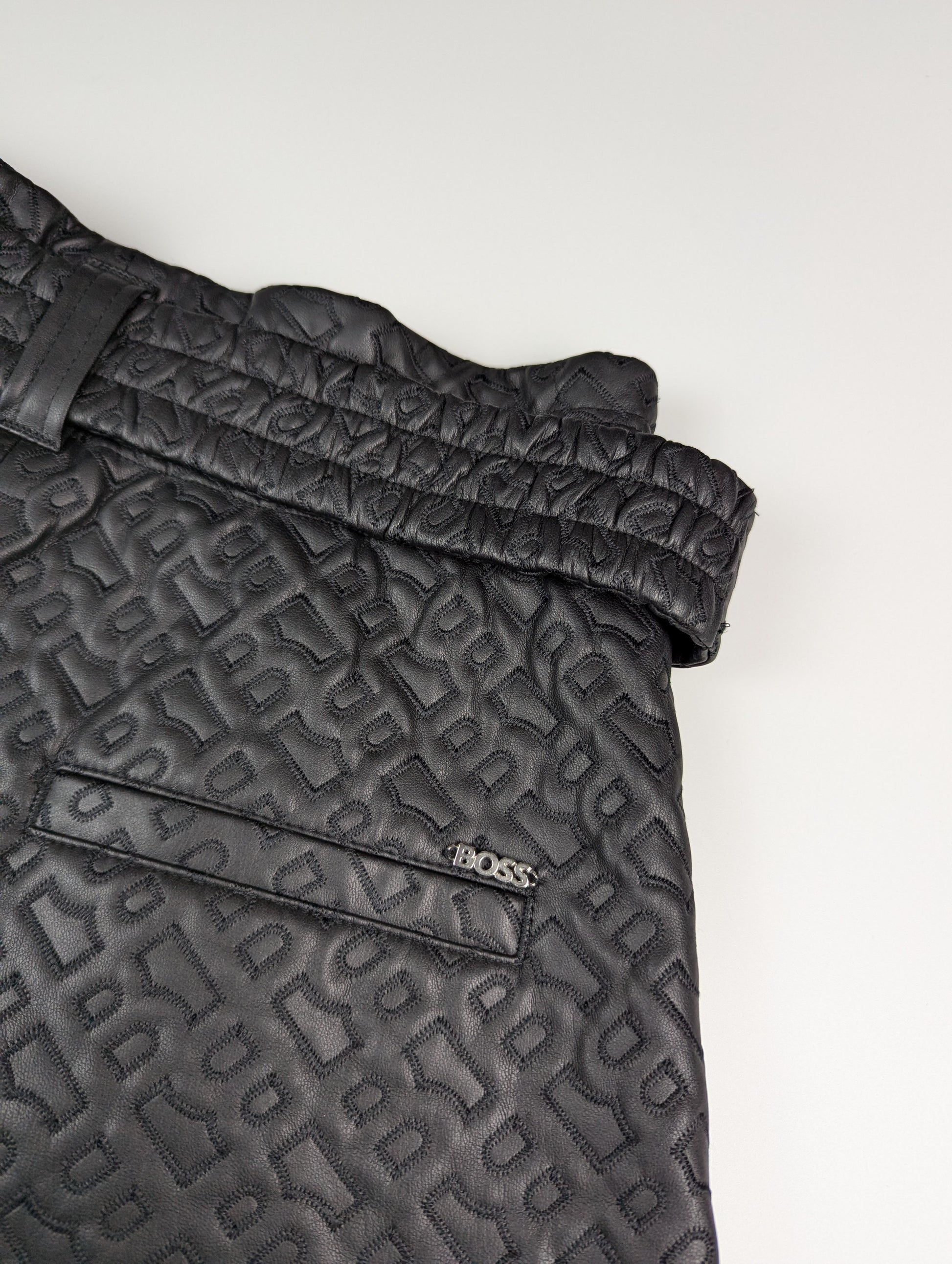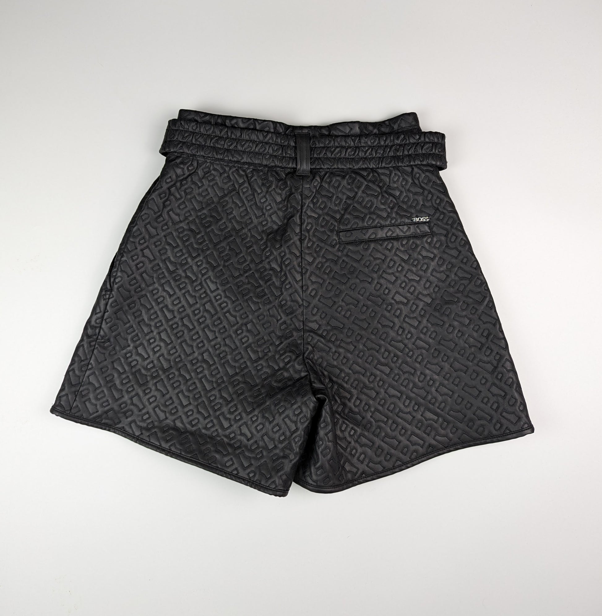 Crafted entirely from polyester, these black faux leather shorts feature an all-over B logo print. They are designed with a zip closure and include a belt with a unique fastening. Two open side pockets add both style and convenience.