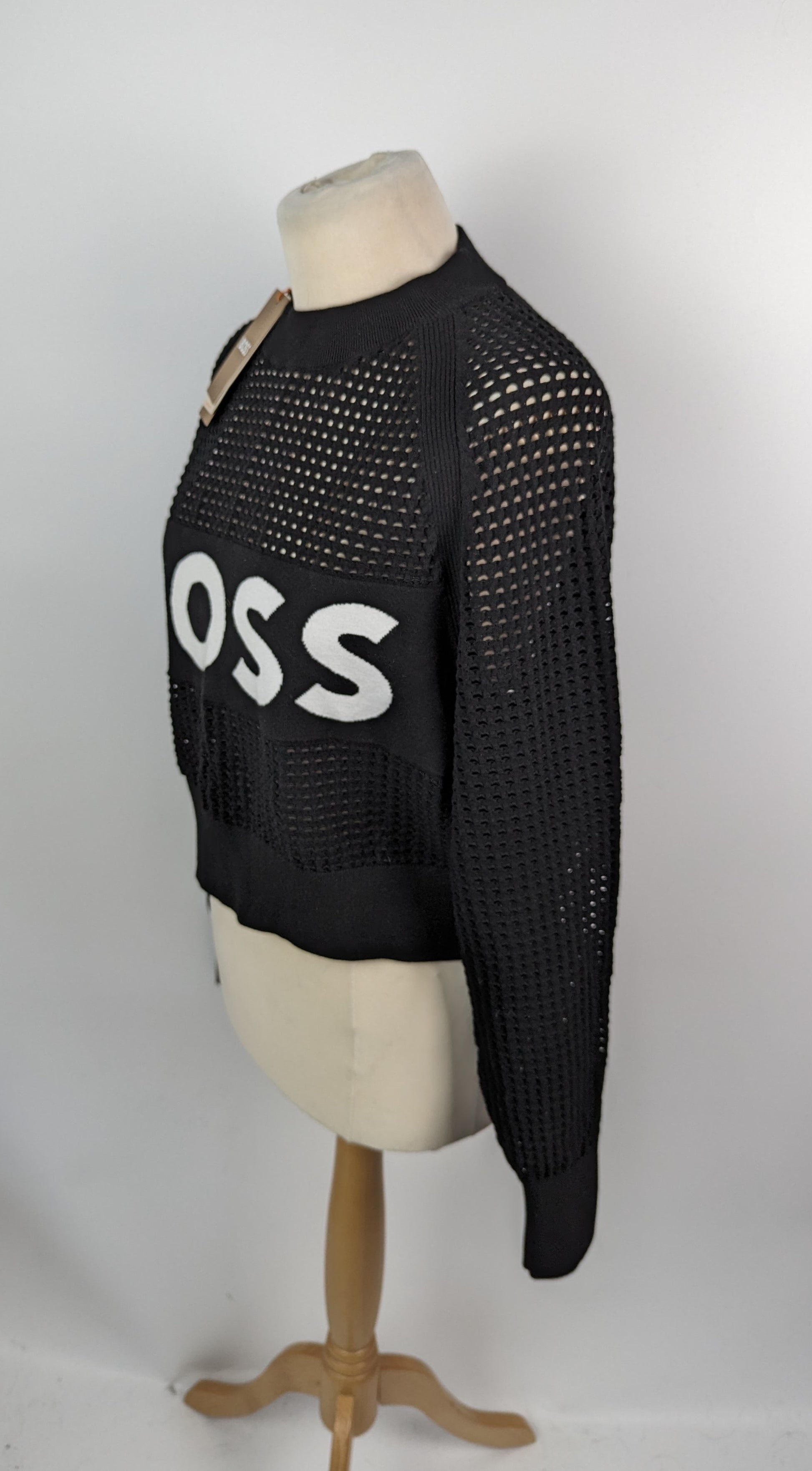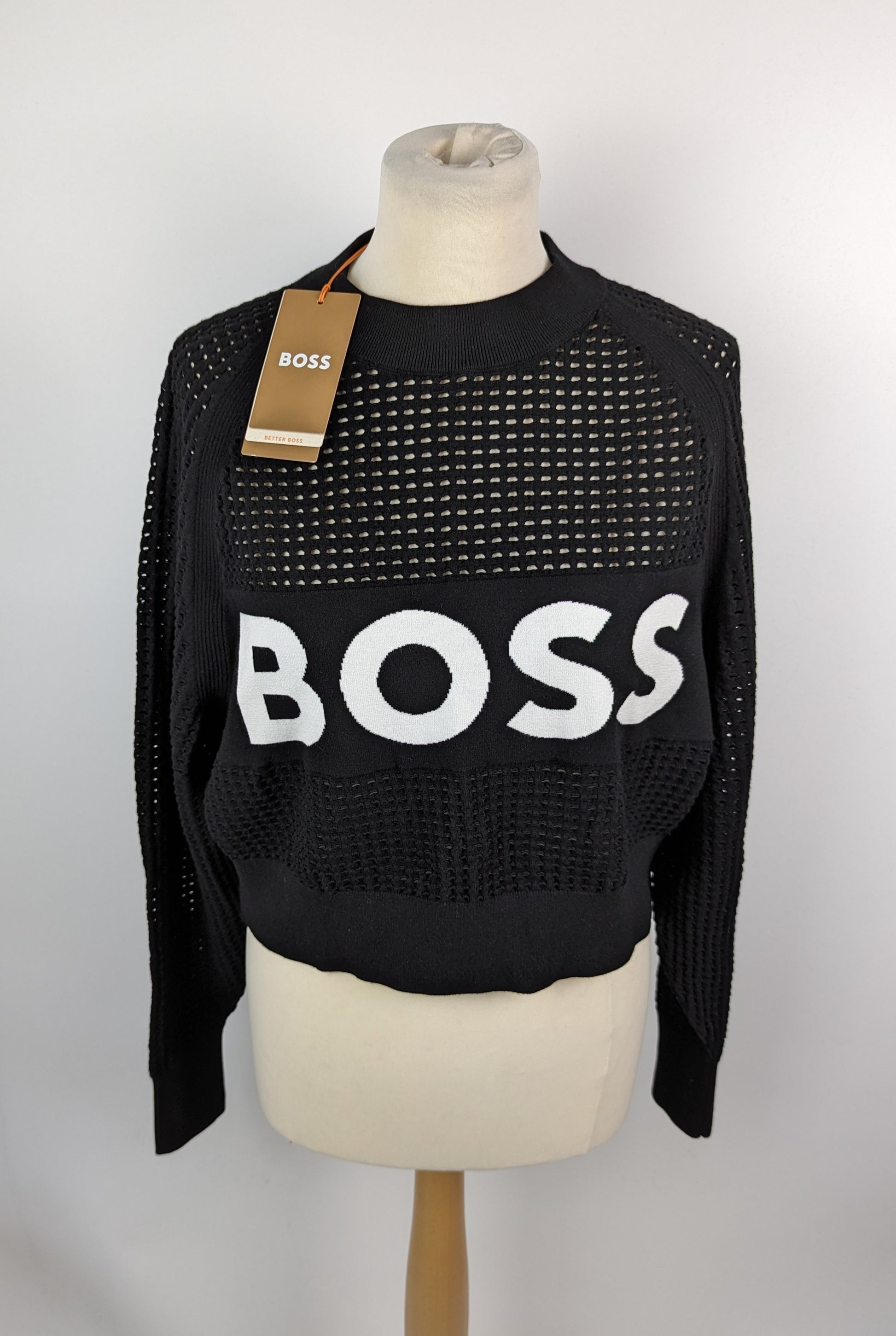 Designed with cut-out details throughout for a modern appeal, the ribbed trims and crew neckline help to achieve a classic look with a cropped design. Decorated in a solid black colour, the contrast bold white Boss branding to the front completes the stylish piece.