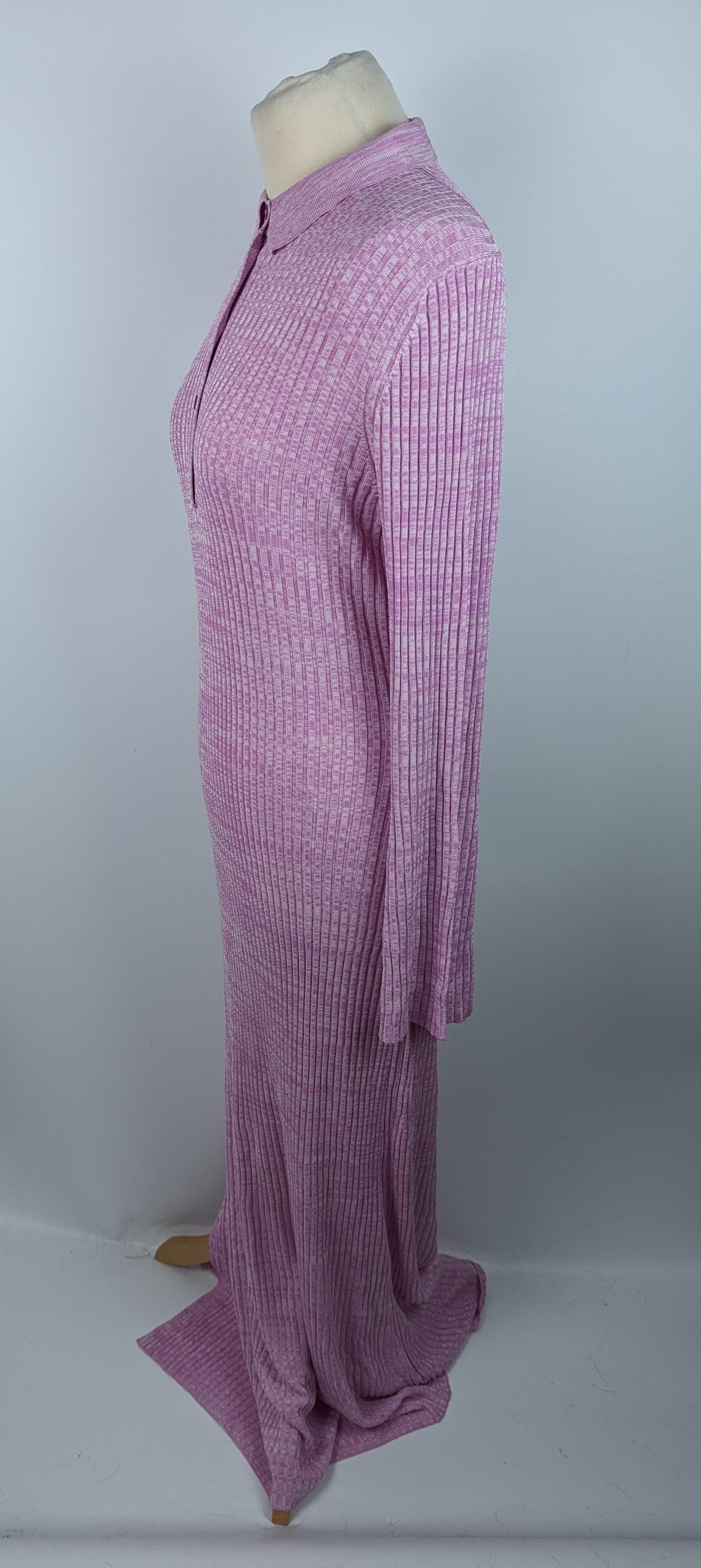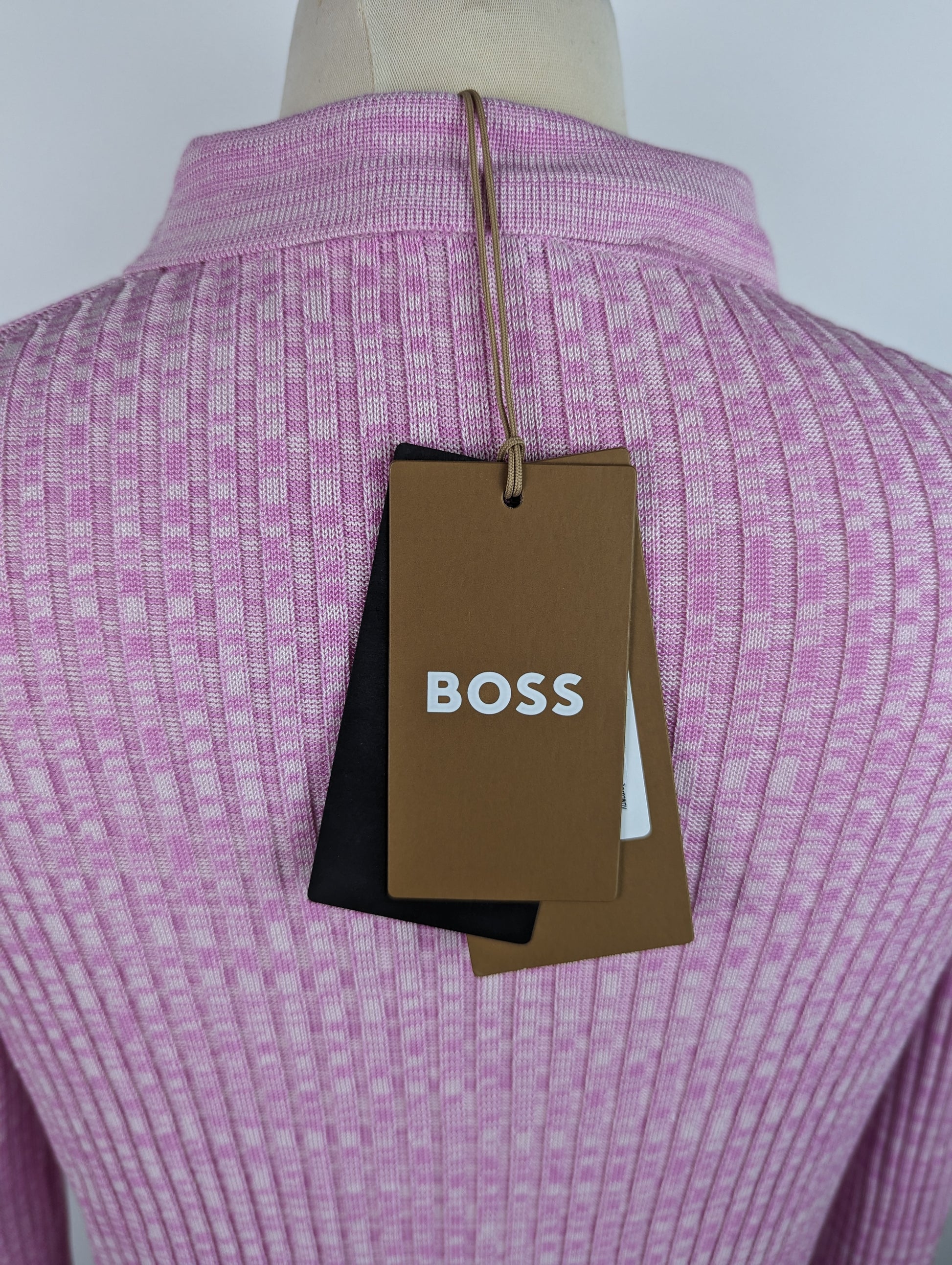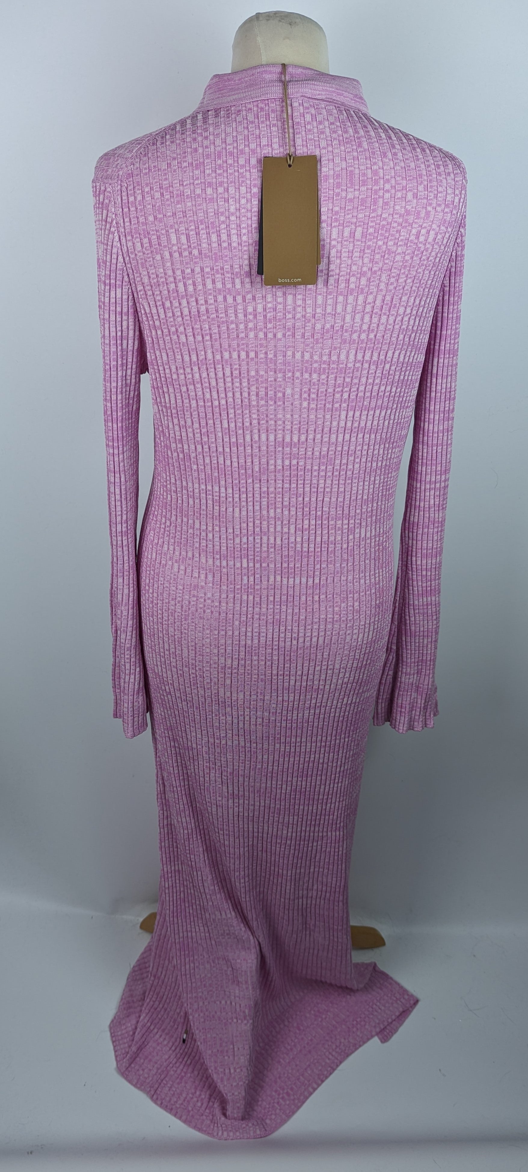 A warm addition to this season's collection of body-hugging knits, BOSS' Floriene dress arrives in a ribbed construction with a plunging button placket. The design floats down to ankle length and features flared sleeves for a subtle '70s touch.
