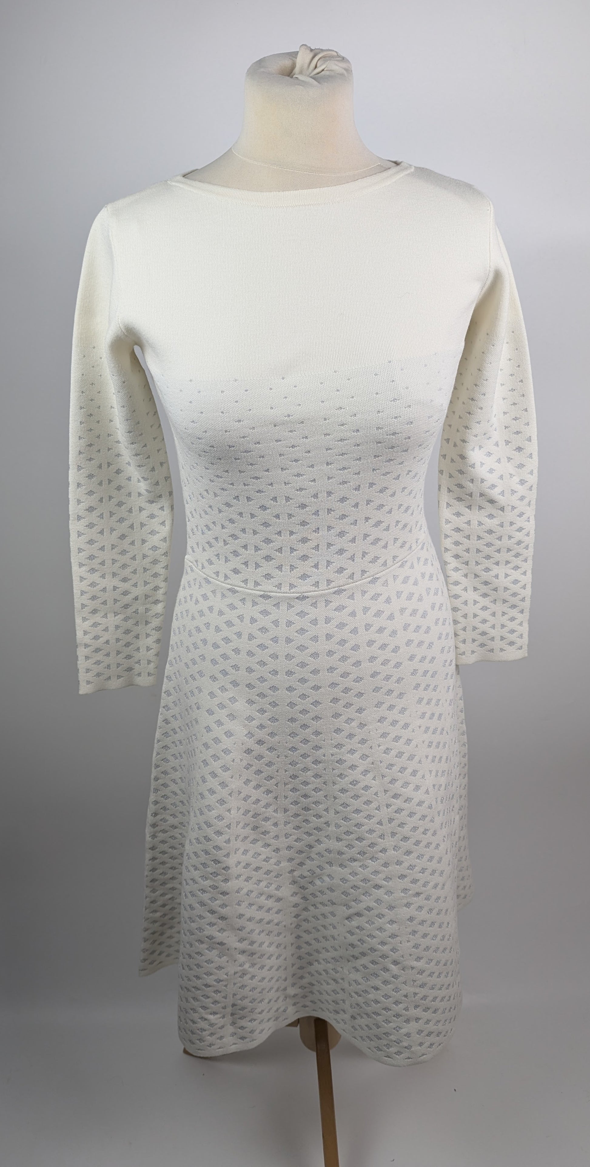 Crafted from premium knit fabric, this BOSS dress combines refined tailoring with everyday wearability. The pullover silhouette features long sleeves and sophisticated silver detailing that elevates the classic white base. Engineered for both structure and comfort, the quality construction ensures this piece transitions seamlessly across your wardrobe.