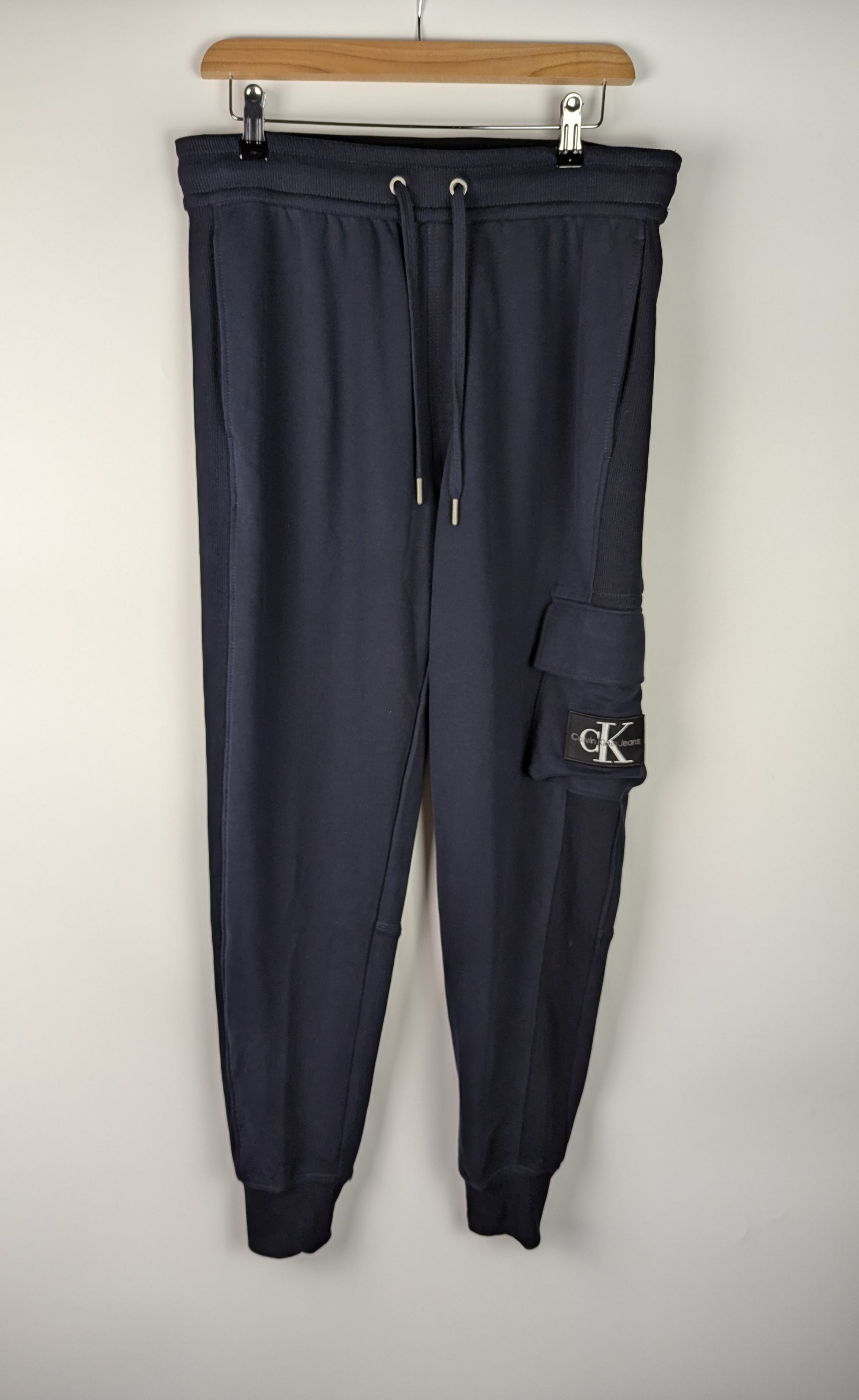 Featuring an elasticated drawstring waistband for a tailored fit. You'll find practicality in the two side cargo pockets and two rear welt pockets, offering both convenience and style. The tapered leg silhouette exudes a sleek, streamlined look, enhanced by the elasticated ankles for a modern twist. Step into the world of Calvin Klein's logo-patch track pants, where quality, style, and functionality intertwine to embody the essence of modern luxury.