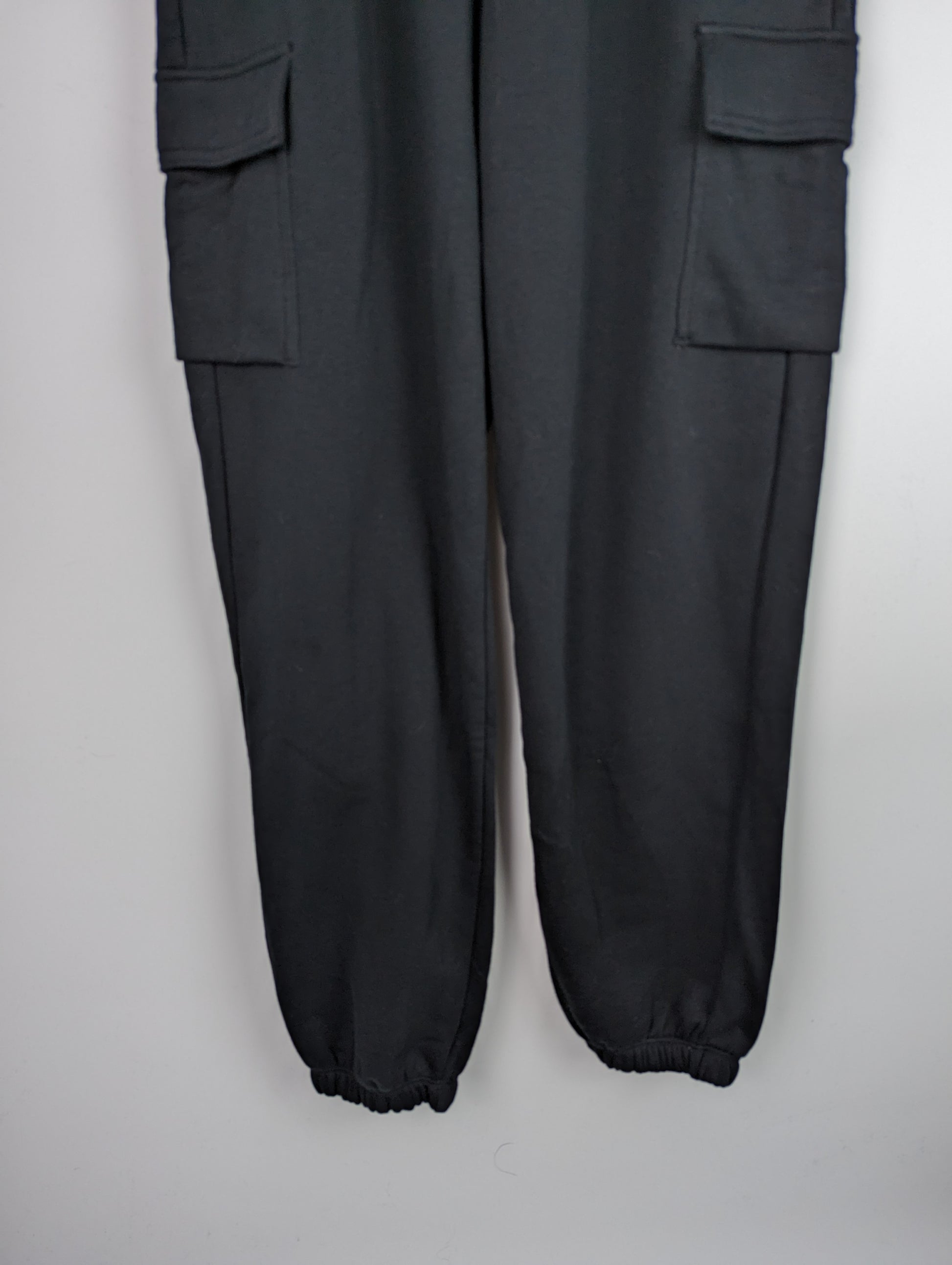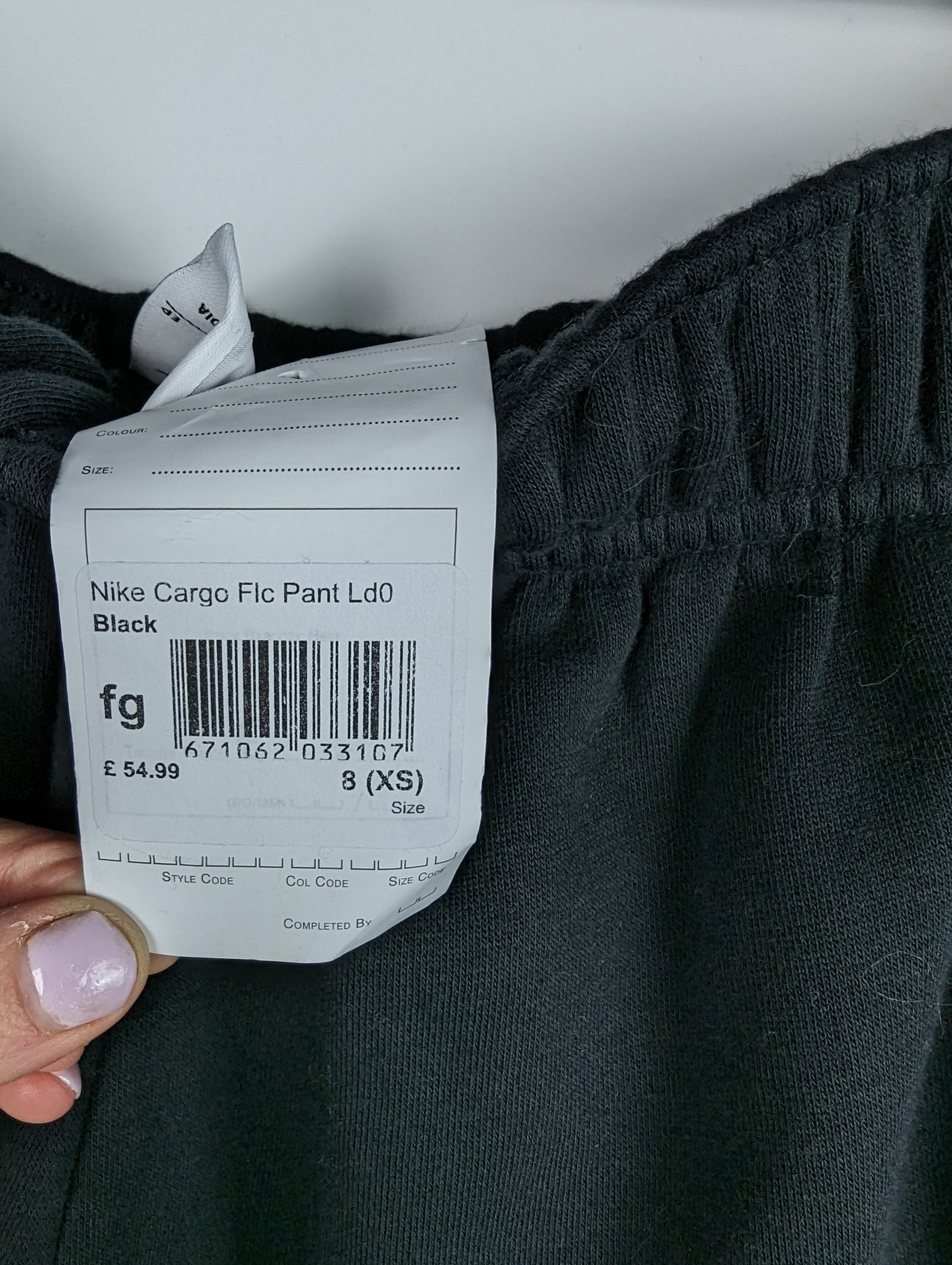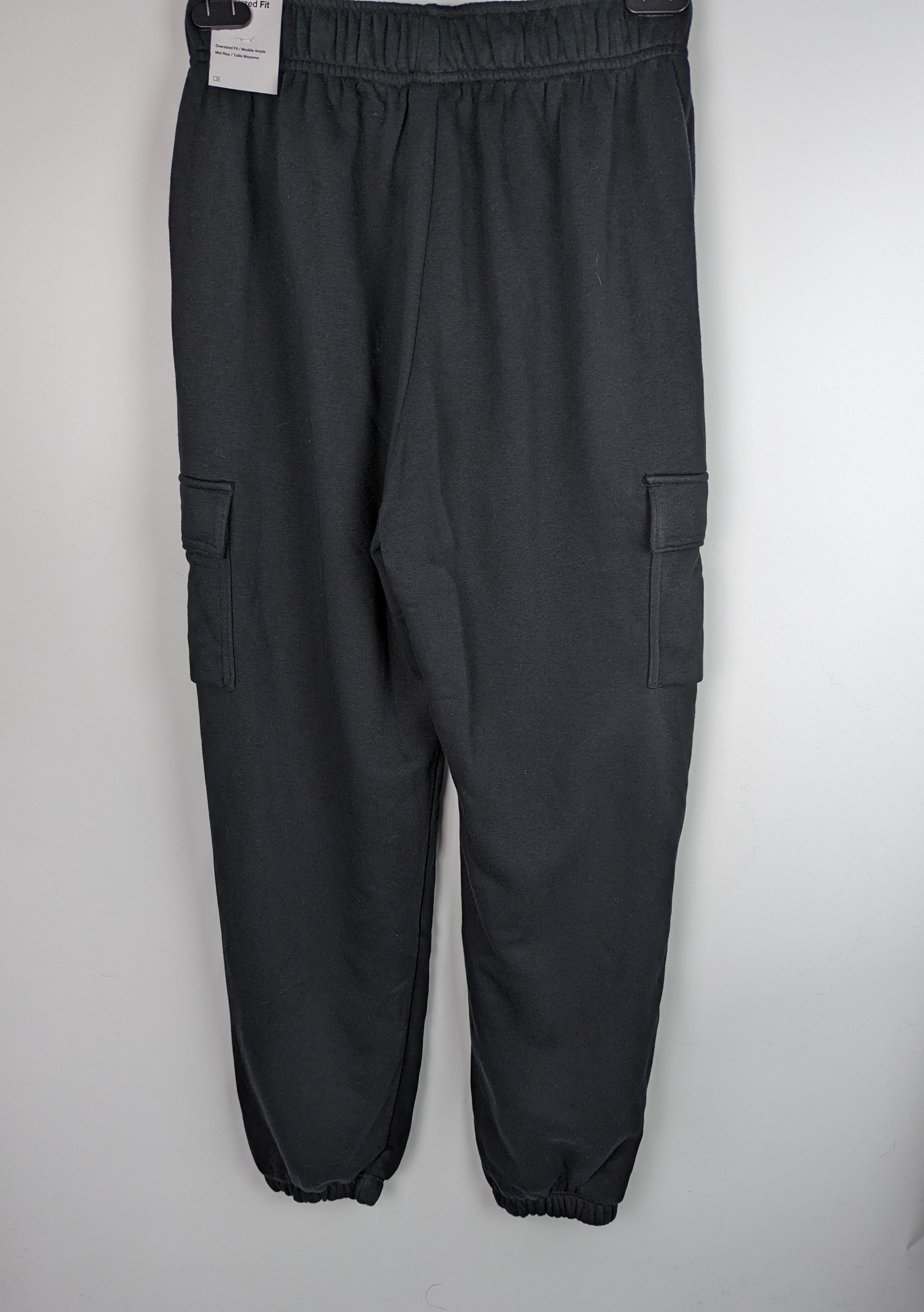 The Nike Womens Club Cargo Joggers in black provide a comfortable, loose fit with two convenient side pockets and a tapered leg. They also feature an elastic cuff and waist band, as well as an outer drawstring for secure fastening.