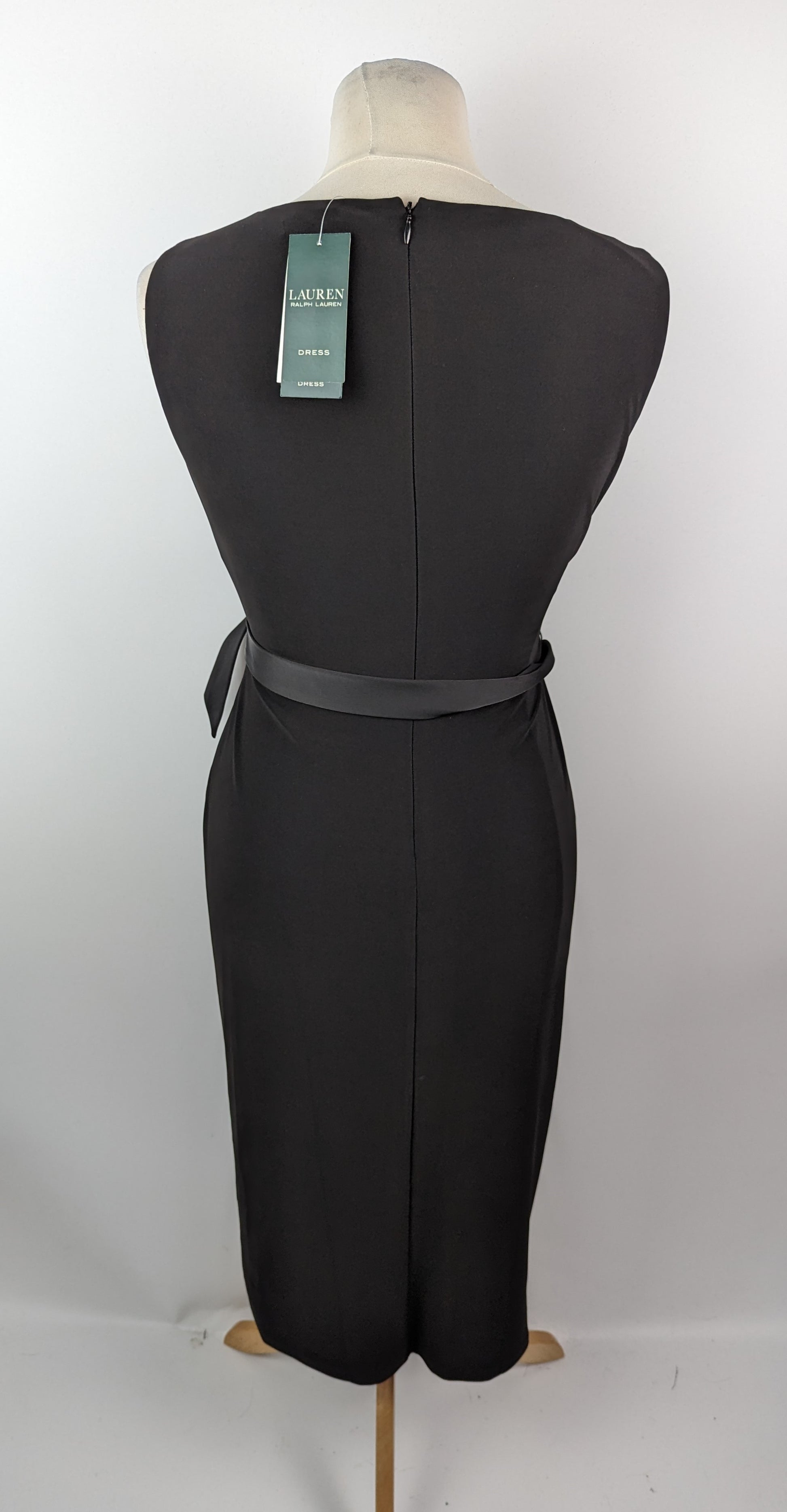 A satin sash elevates this flattering cocktail dress from Lauren Ralph Lauren, an effortless choice for formal events and dinner dates. Made from soft jersey, it skims the figure in a slim fit with a cross-front neckline and ruched detail at the bodice. This style is fully lined and fastens with a concealed centre back zip.