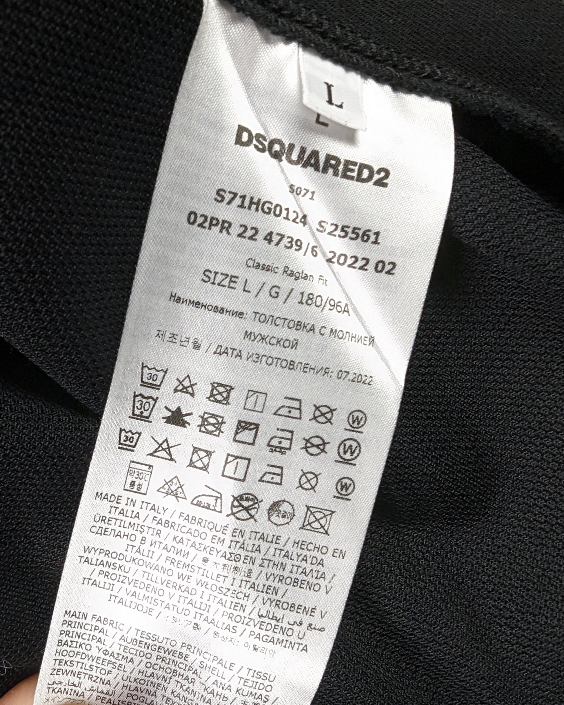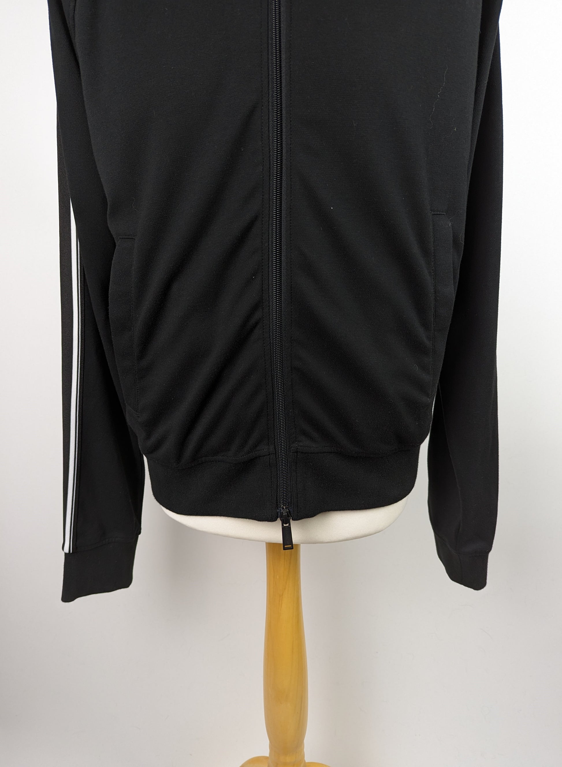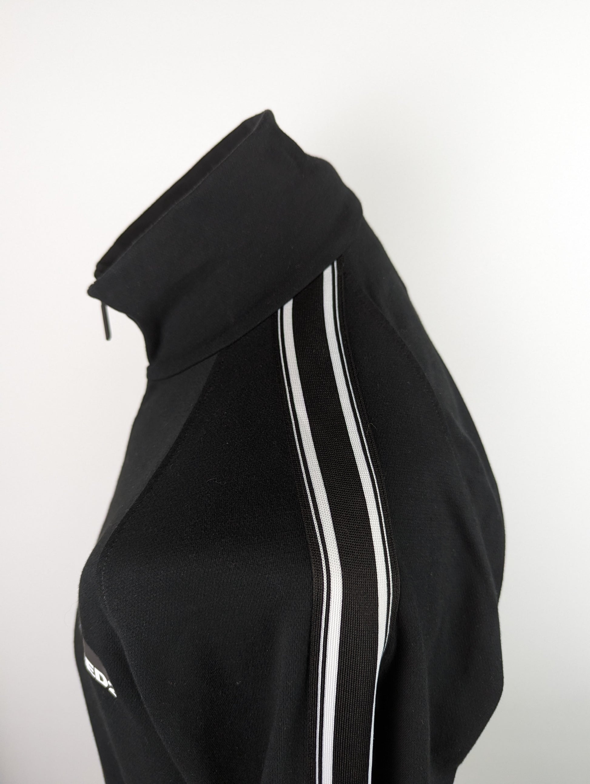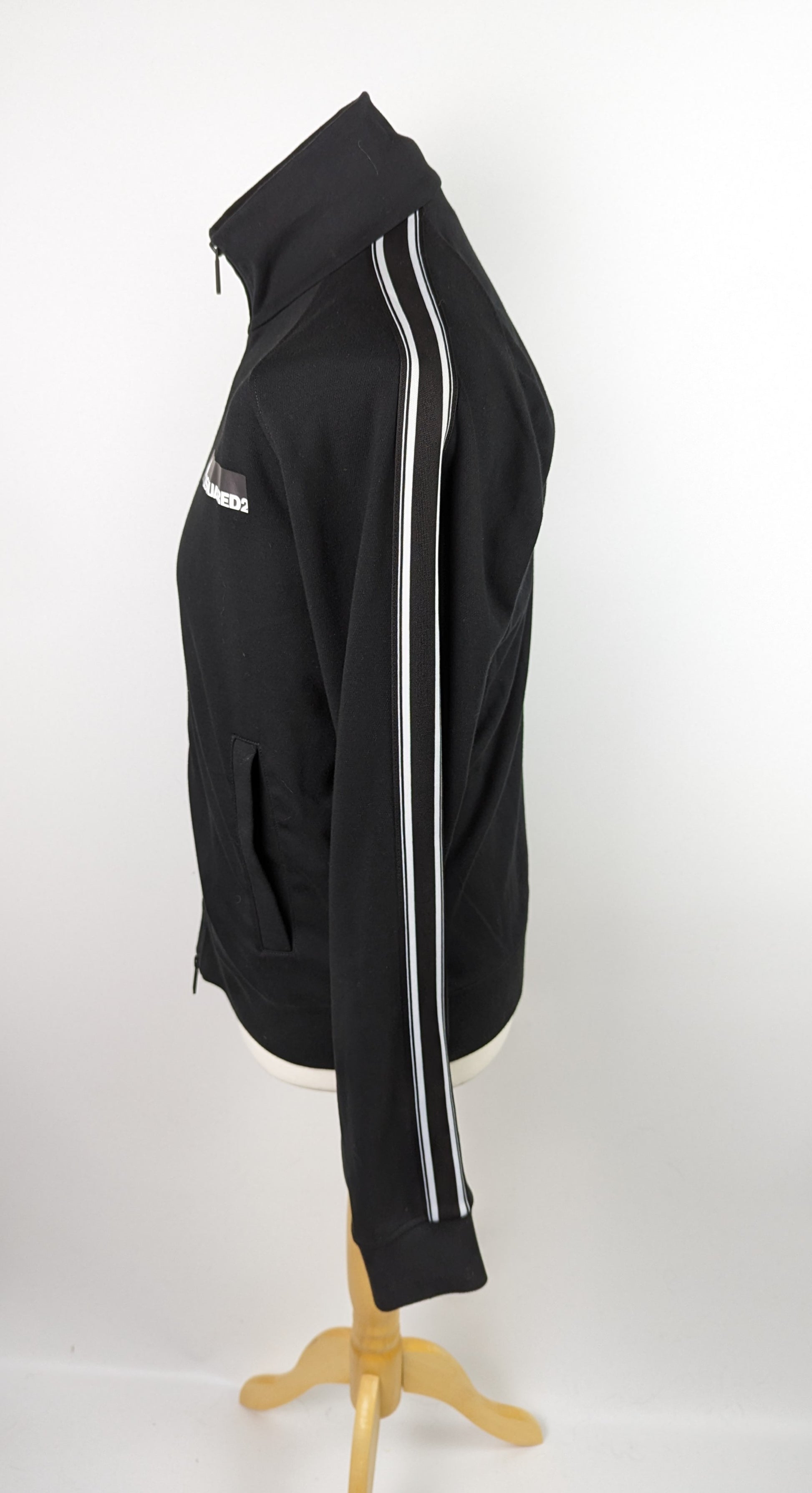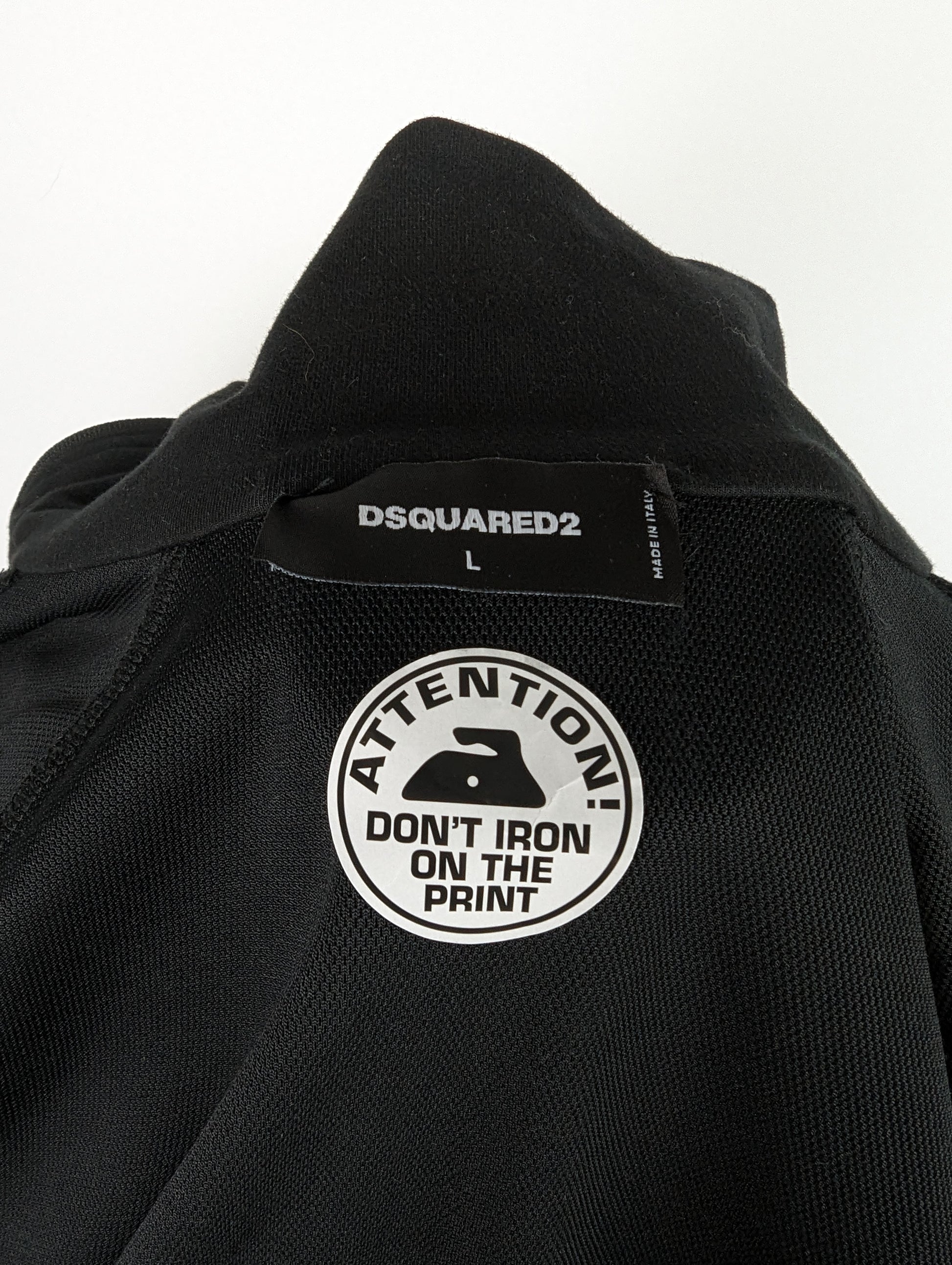 Men's classic track top by designer brand DSQUARED2. Black polycotton blend fabric, with stripe detail to the sleeves, and full length zip fastener. Featuring a large printed logo to the chest. From the 2022 S/S collection.