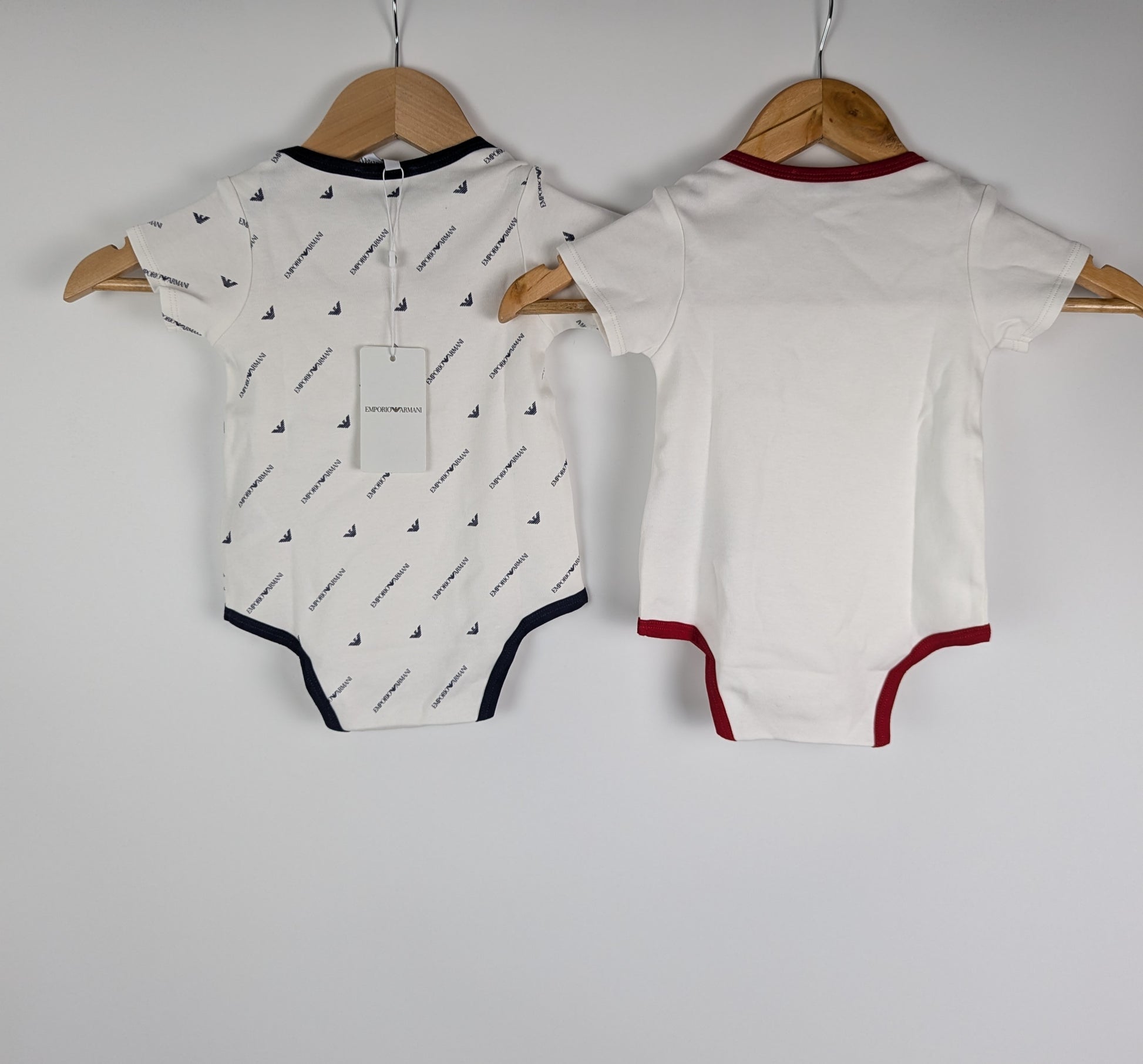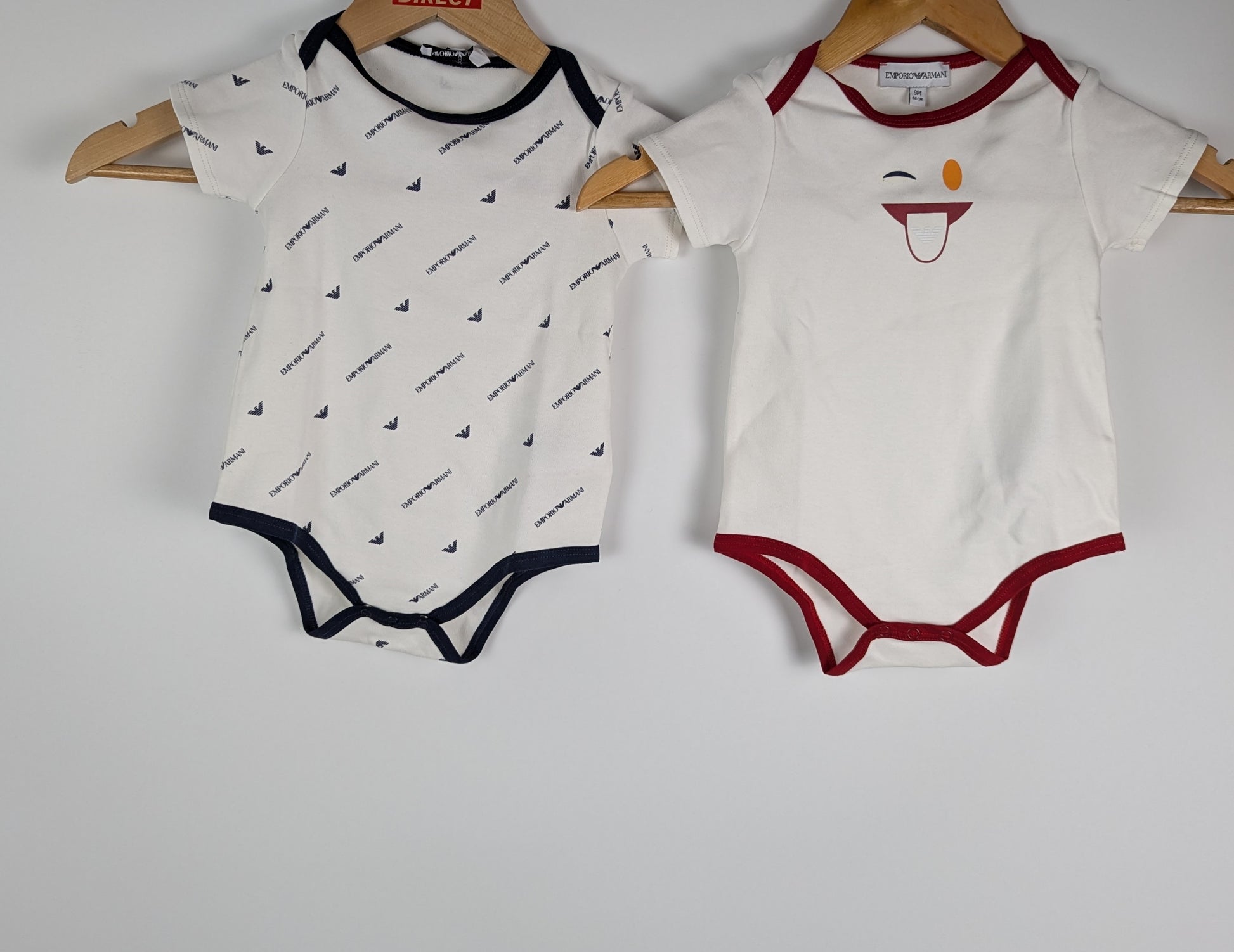 Gift set consisting of 2 short-sleeved bodysuits with practical fastening at the gusset, made of soft cotton with a logo and printed pattern. An item from the Essential line of clothing defined by clean shapes and colours, making them a natural addition to any toddler’s wardrobe, no matter the season. Made in Italy.