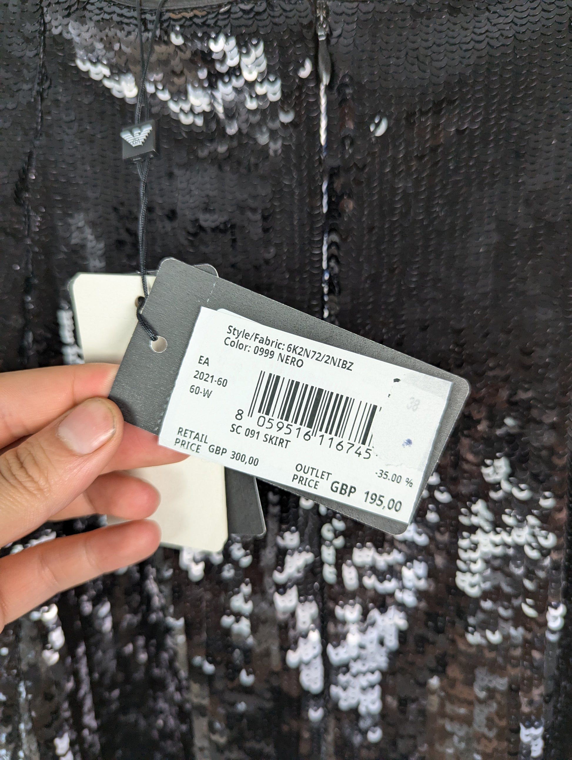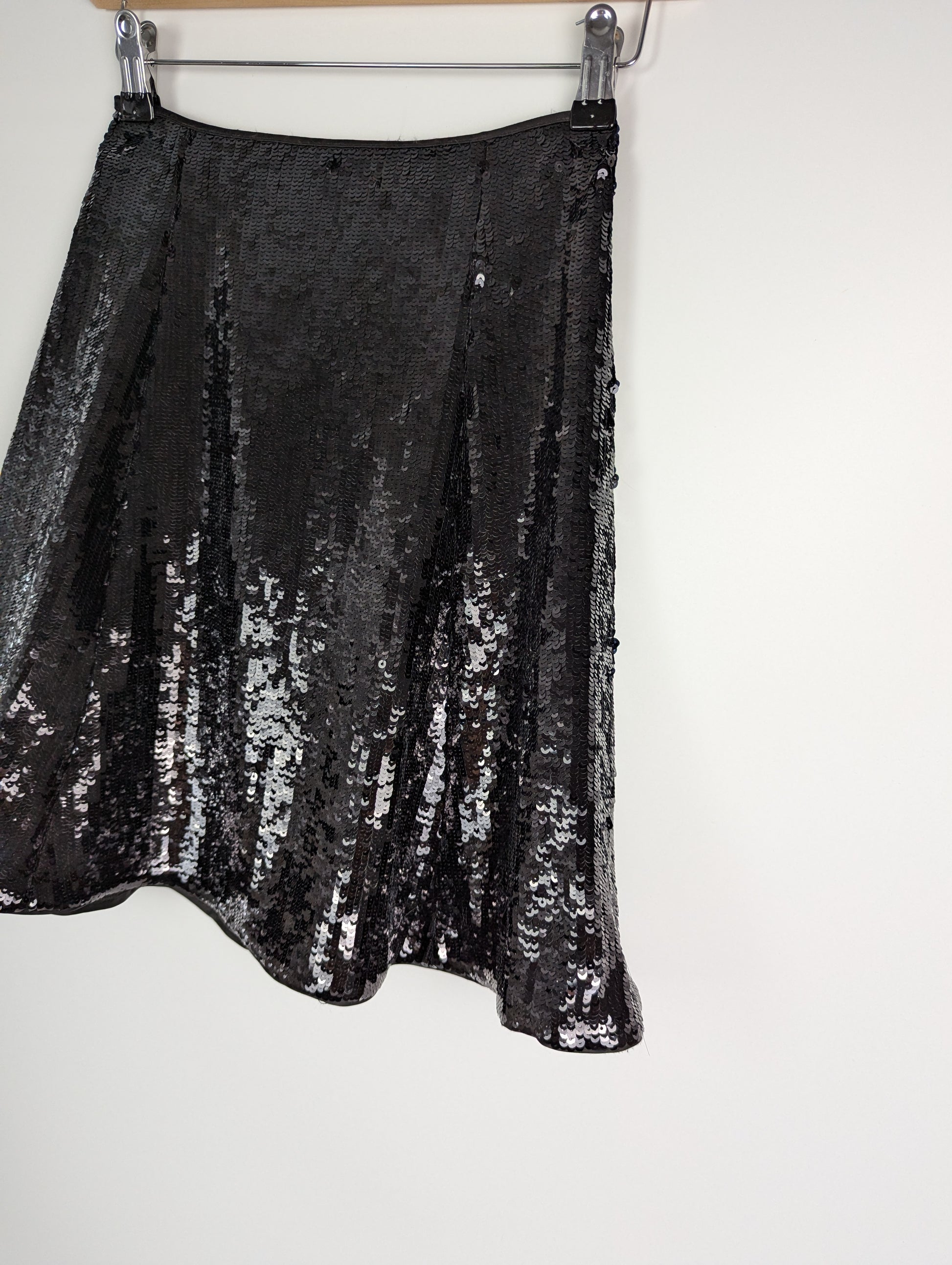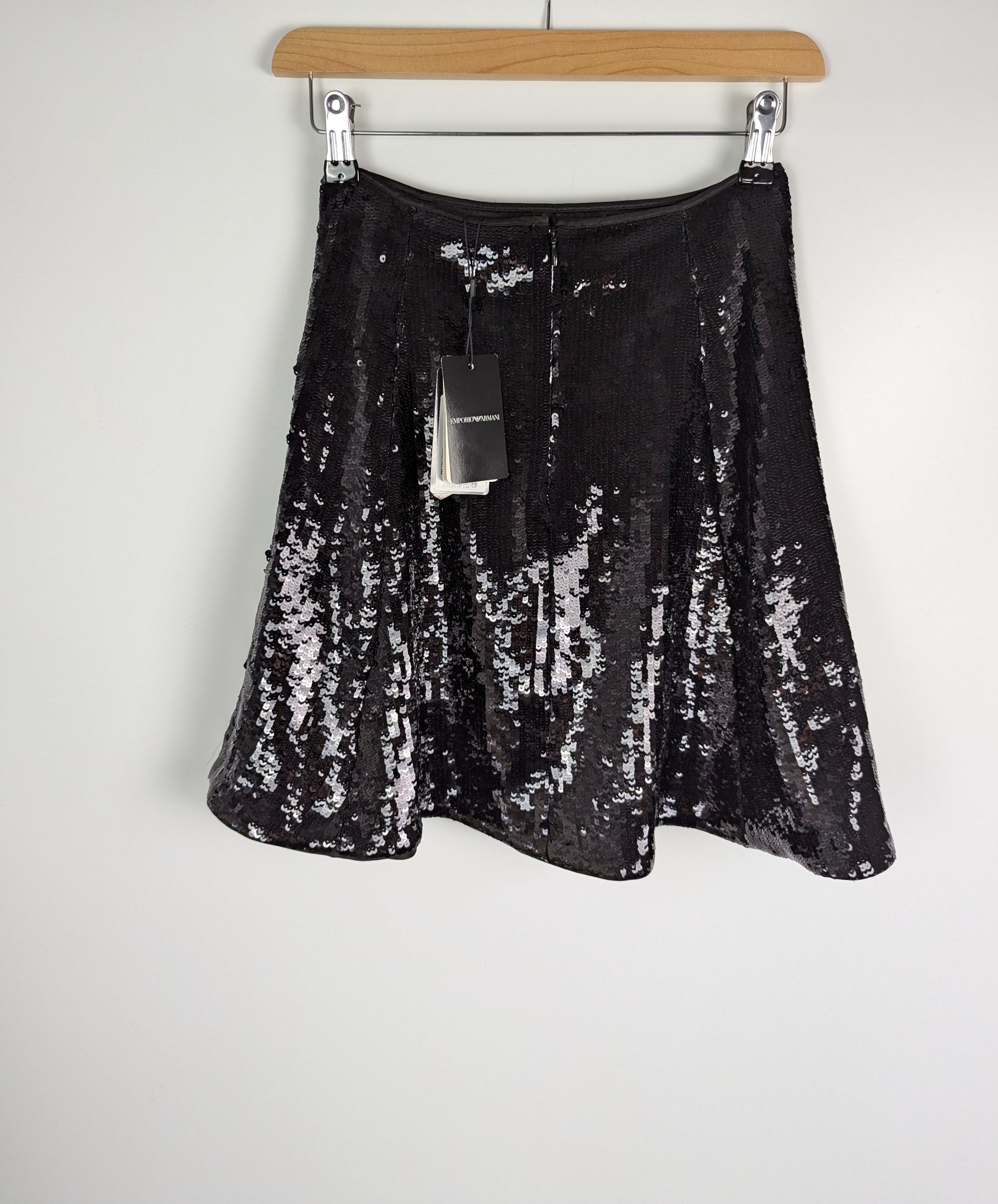 Constructed with 100% polyamide, the EMPORIO ARMANI Sequin Mini skirt for women in black features a back zip closure for a secure and stylish fit.