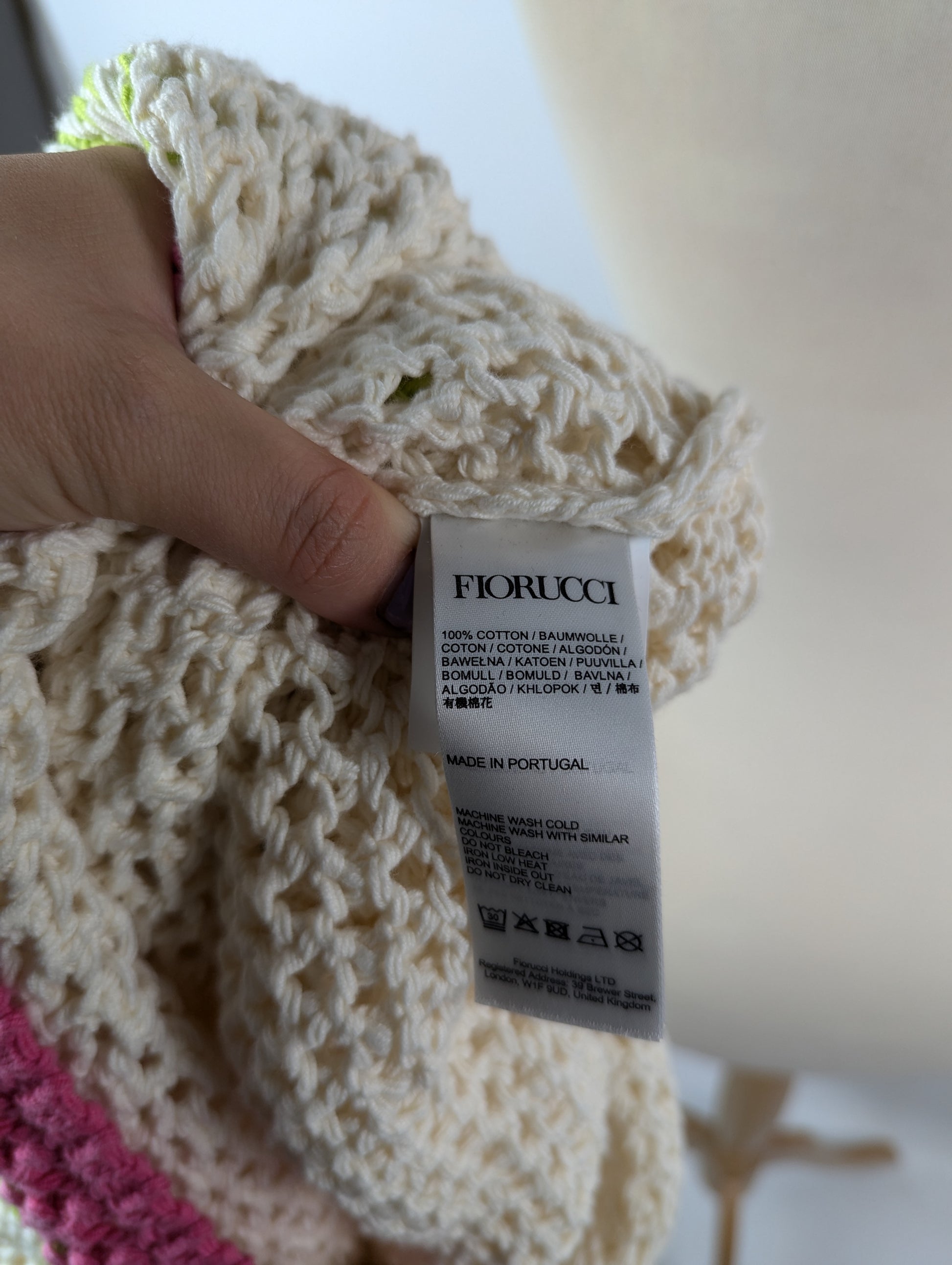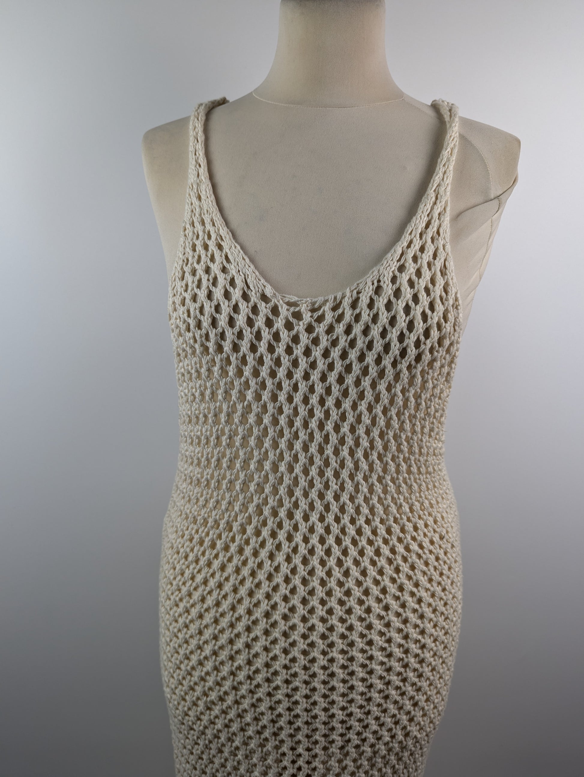 Embrace effortless chic with the FIORUCCI Crochet Mesh Dress, a stunning piece that redefines playful sophistication. Crafted from 100% cotton in a creamy hue, this dress showcases an enchanting midweight open crochet design that invites a glimpse of skin. The signature Fiorucci logo at the hem adds a touch of recognizable flair, while the intentionally sheer fabric creates an alluring balance between relaxed and flirtatious. With pull-on styling and an unlined finish, it’s perfect for your next summer soiree. Complete your look with your favourite undergarments, and shine bright.