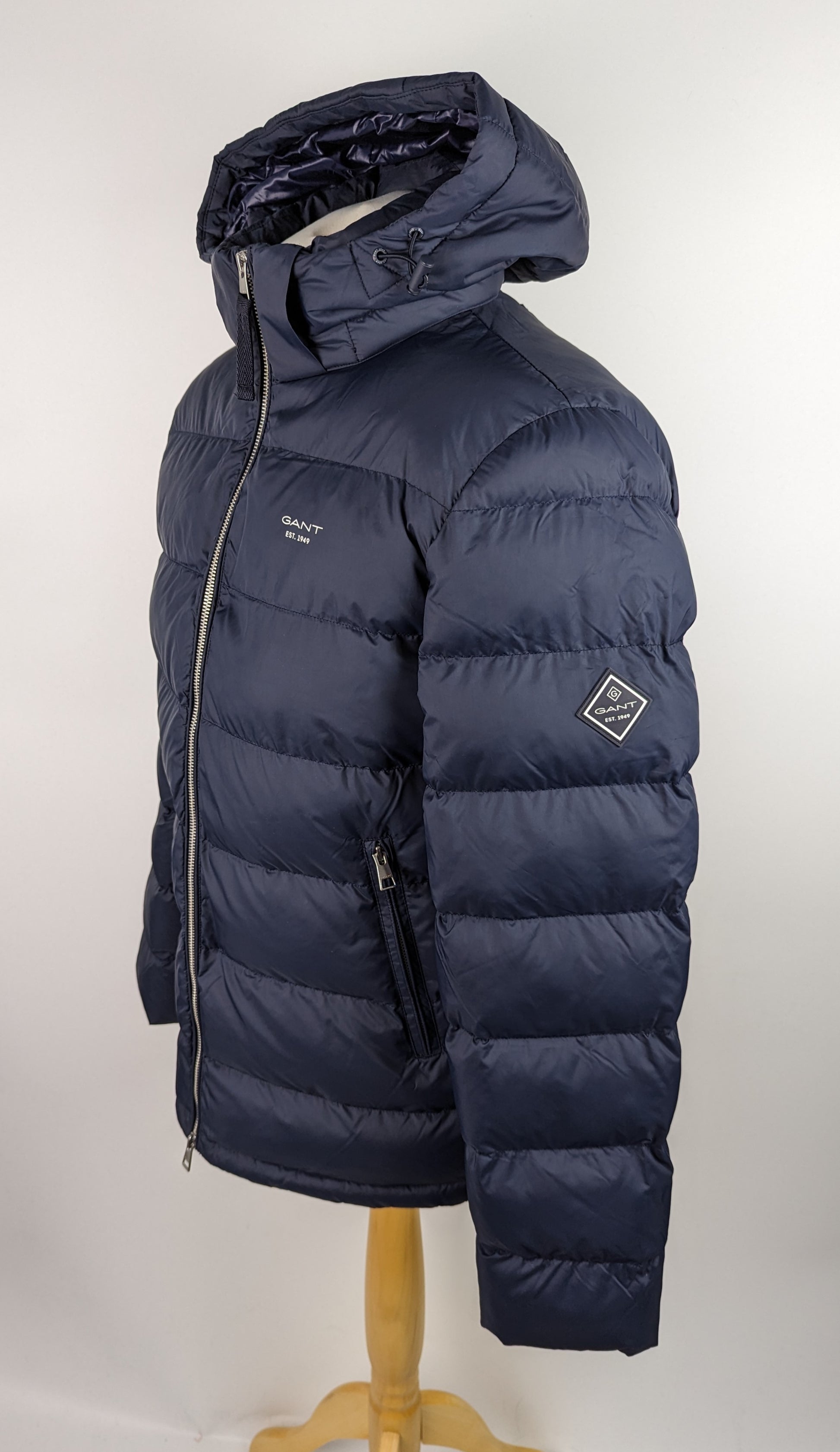 The ultimate in sophisticated, functional Winter wear, the GANT Active Cloud Jacket keeps warm air in and cold air out in several ways. Padded with 100% recycled polyester (with the touch and look of down, but faster-drying), this sporty, regular fit jacket has an adjustable drawstring at the bottom hem so you can tightly keep out Winter air. Details include a GANT logo printed at the chest, a hanging loop at the back and a detachable hood. This jacket is recommended for temperatures between -10 and 0 degrees Celsius.