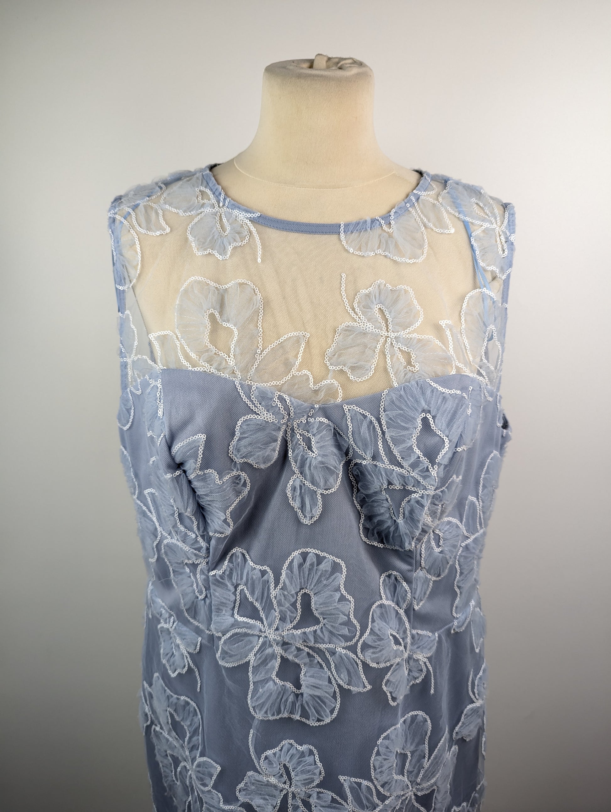 Turn heads at your next wedding or special event with our Gina Bacconi Blue Elia Dress. This beautiful embroidered shift dress. Versatile to take you from a day event through evening. Zip at the back to fasten.