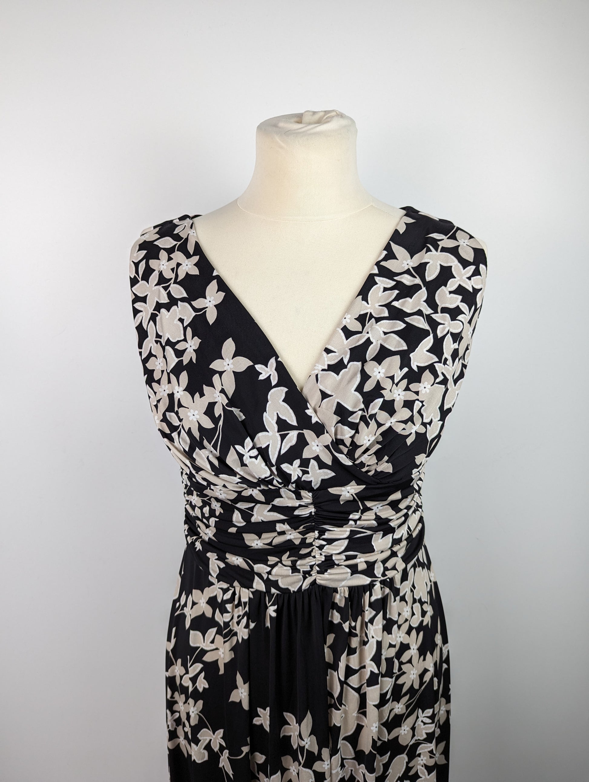 This floral maxi dress by Gina Bacconi is the ultimate holiday piece for your wardrobe this season. Fashioned from a comfortable jersey fabric with a gorgeous floral print, this dress is guaranteed to make you stand out. The bodice takes an elegant wrap-over design and gathered empire waistline before giving way to a flowing skirt. Add a pair of sandals and some sunglasses and you have the perfect holiday look!