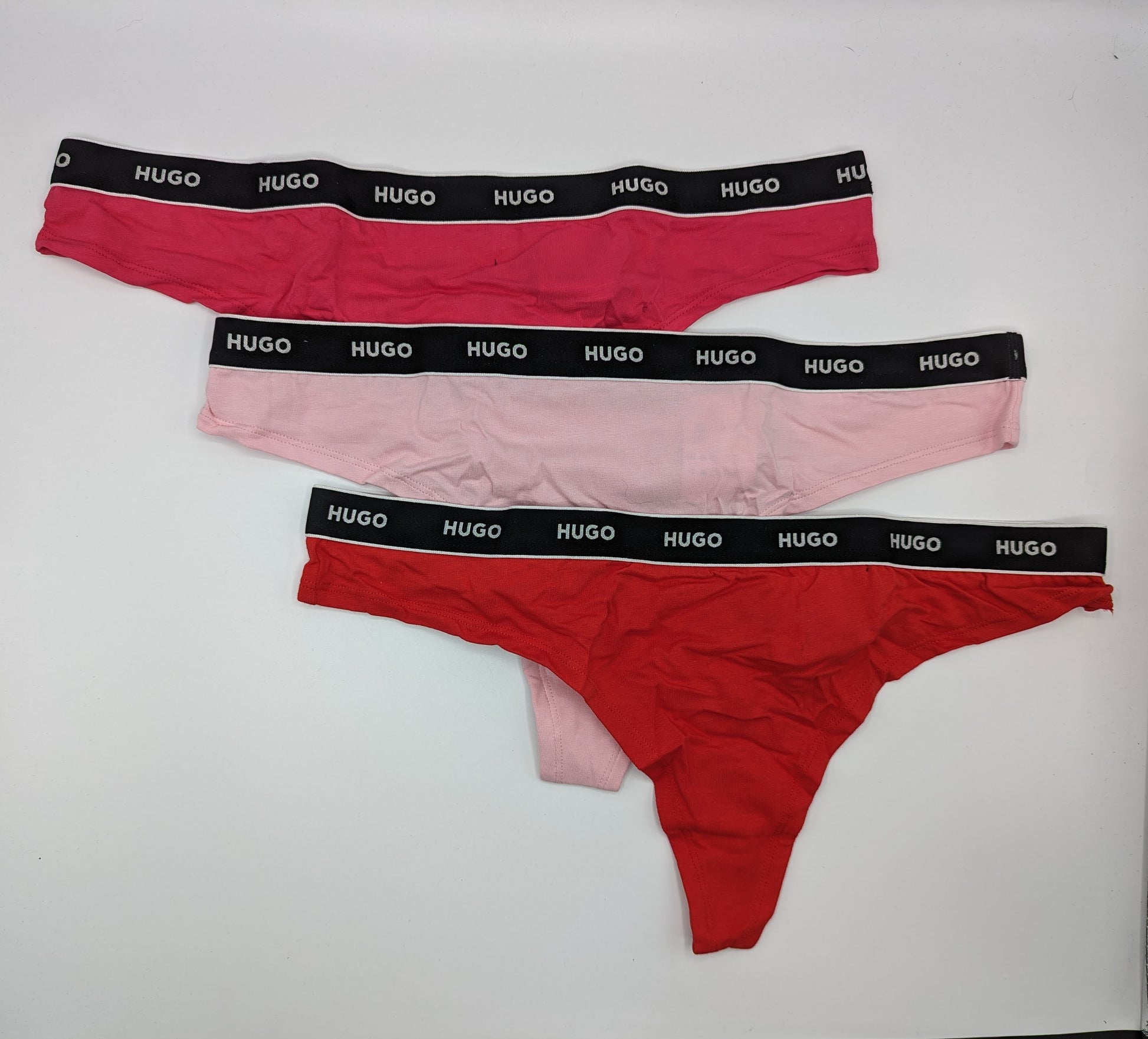 The Hugo 3 Pack Stripe Thong are a great addition to your everyday accessories, crafted with a wide elasticated waistband along with flat lock stitching that offers all day comfort. In pink, baby pink and red, completed with the Hugo branding to the waistband.