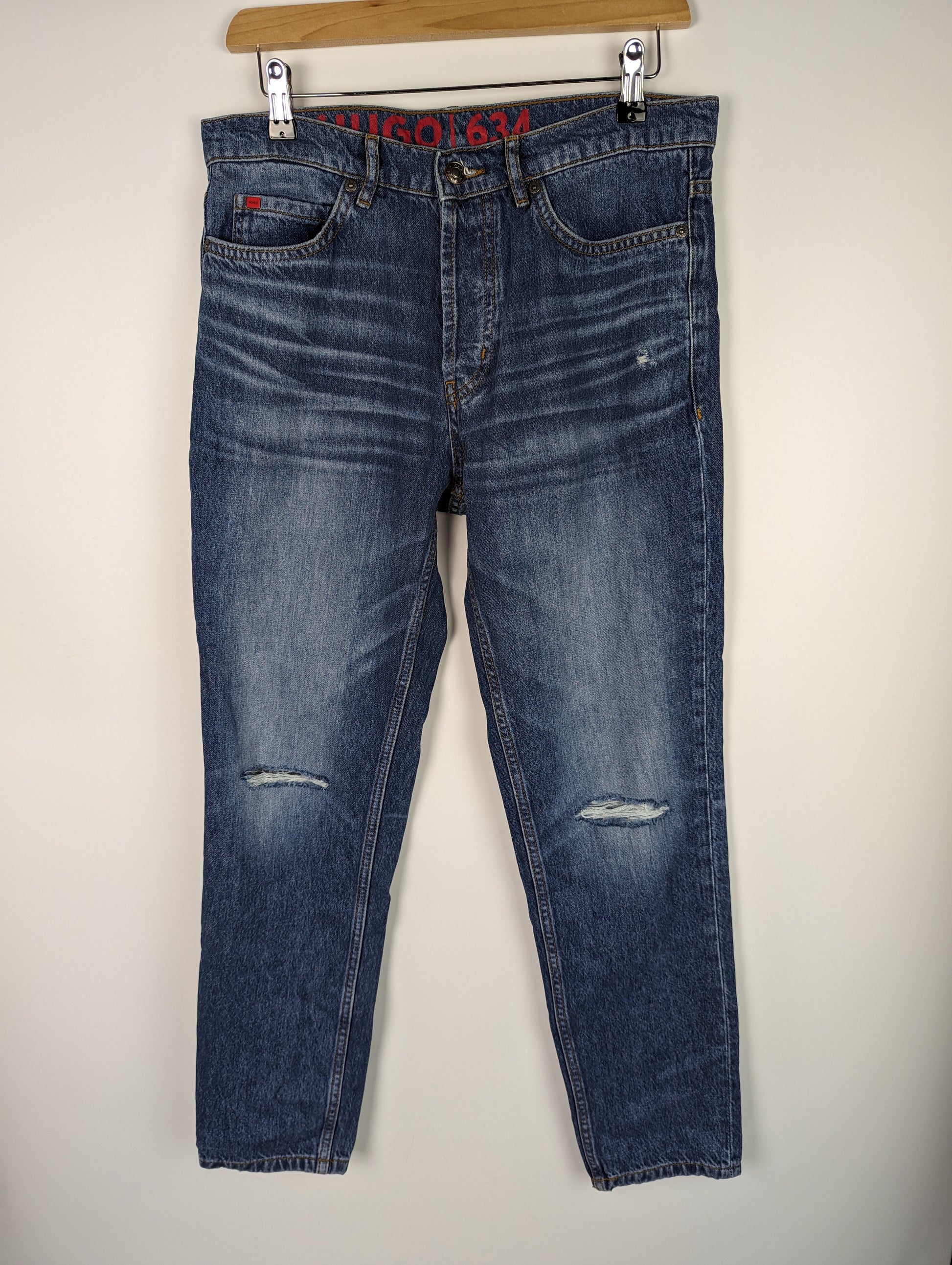 HUGO 634 Mens Tapered Distressed Jeans - Blue