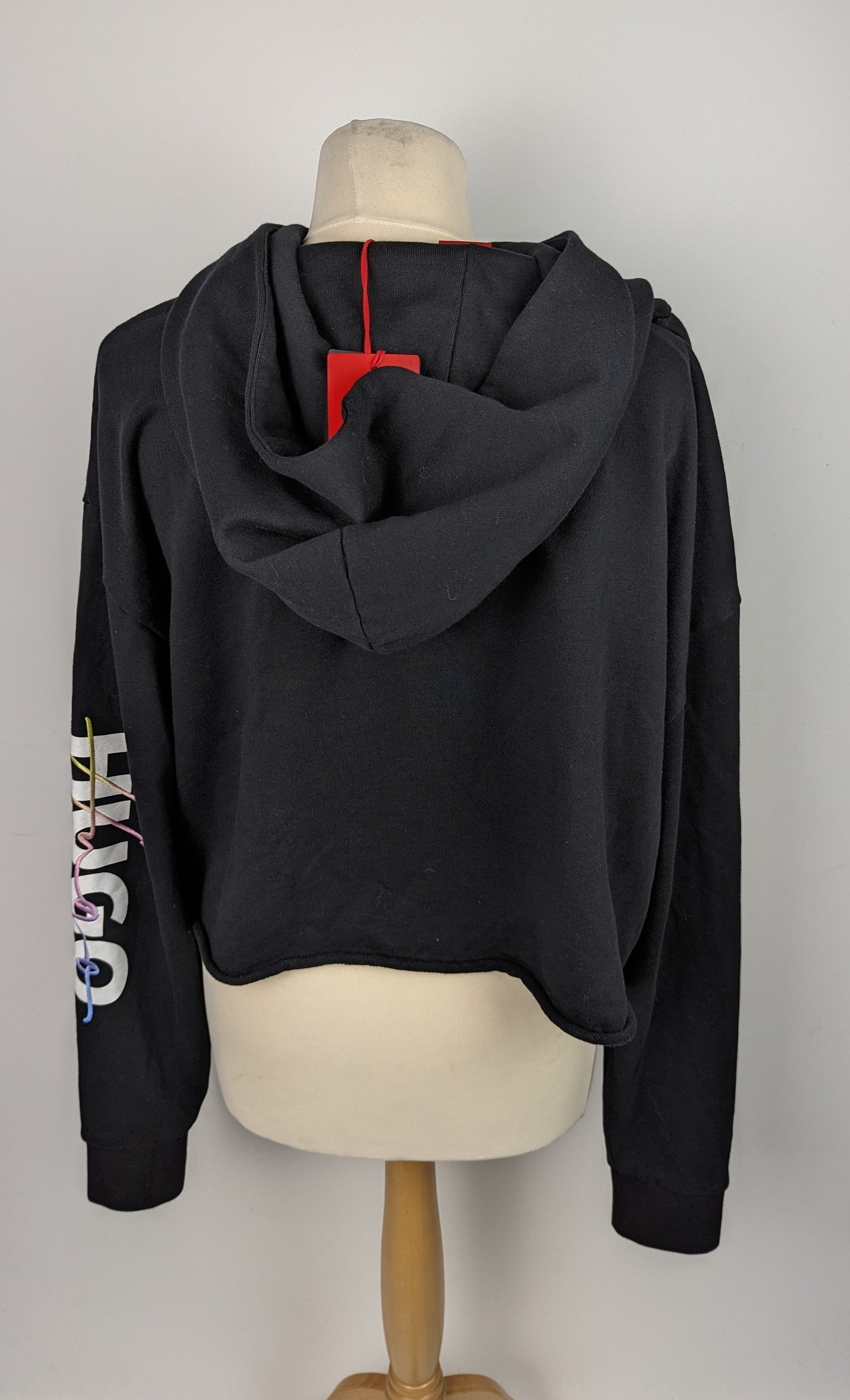 Refresh your casual attire with the Dangaya Crop Hoodie by HUGO, crafted from a natural sourced cotton providing a soft, comfortable and sustainable garment. The hoodie features a classic cosy hood, long sleeves with ribbed cuffs and a unfinished hem cut at crop length for a relaxed aesthetic. Completed by the iconic HUGO logo printed to the sleeve with an overlay logo embroidered on top for true brand appreciation.