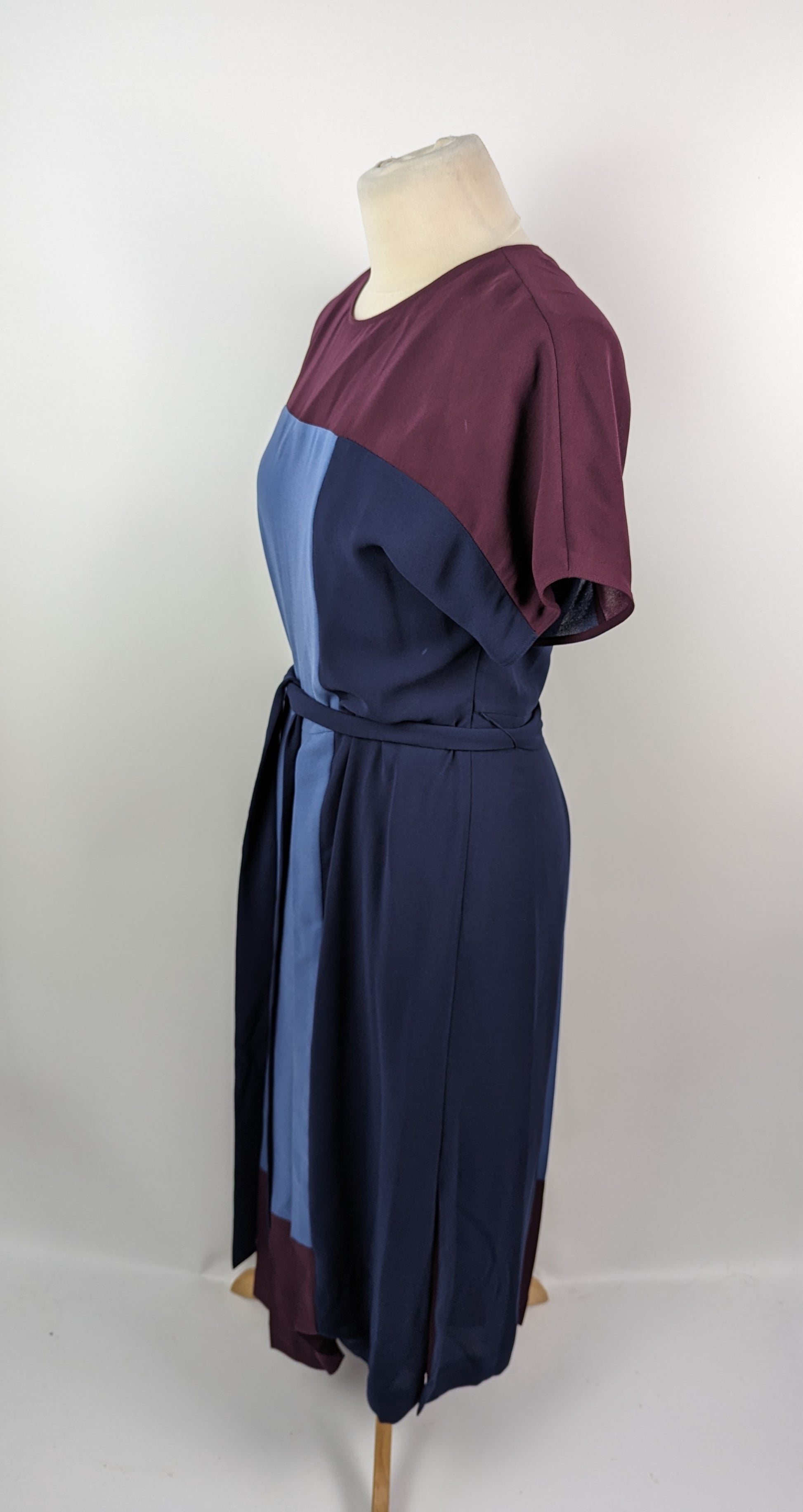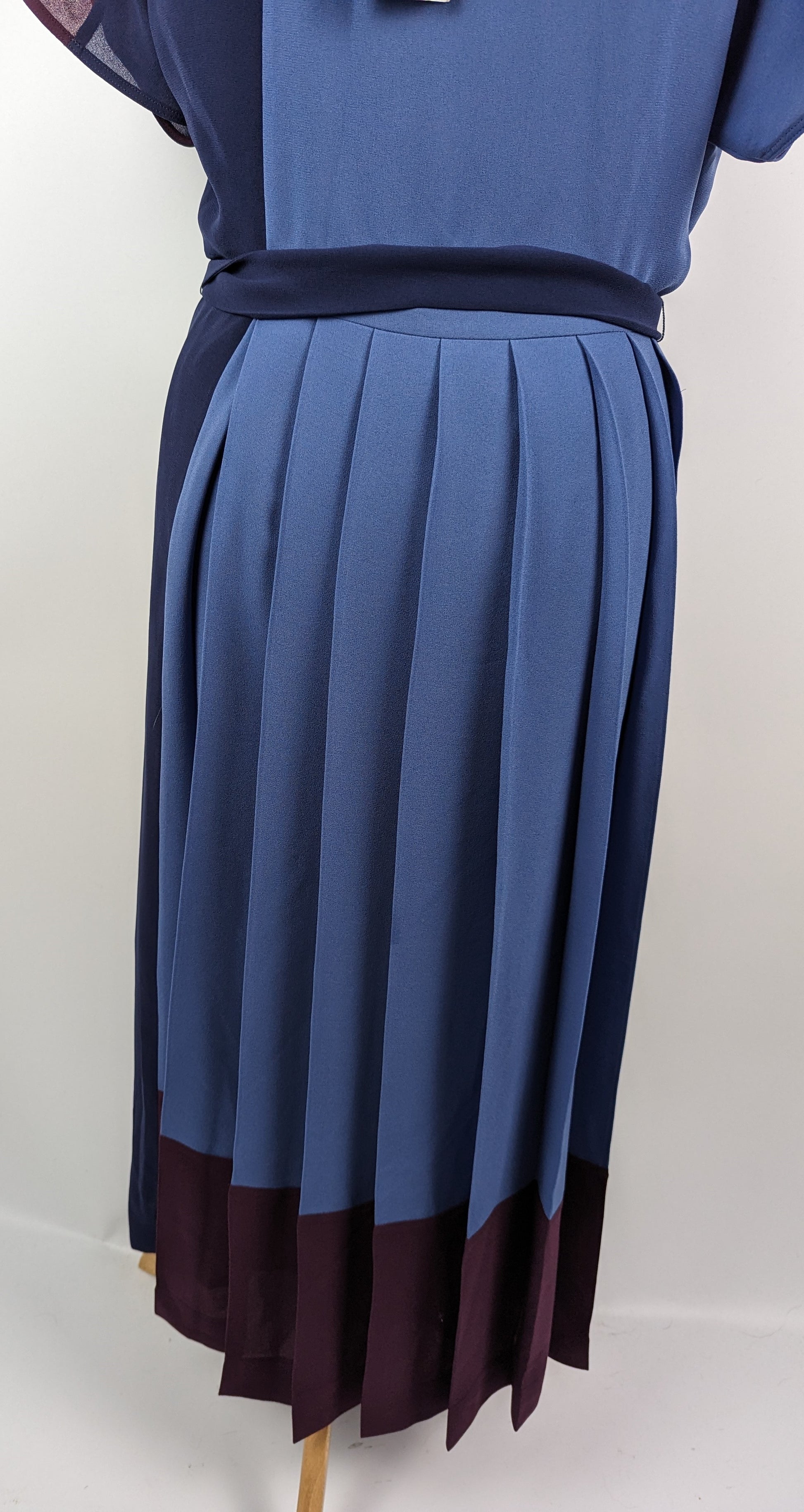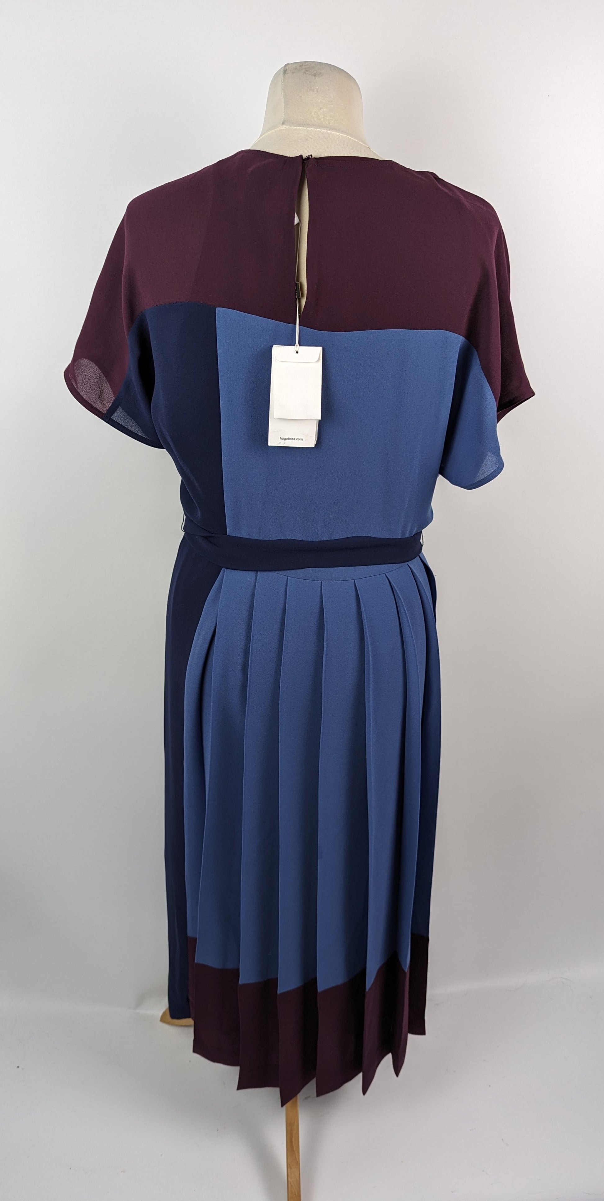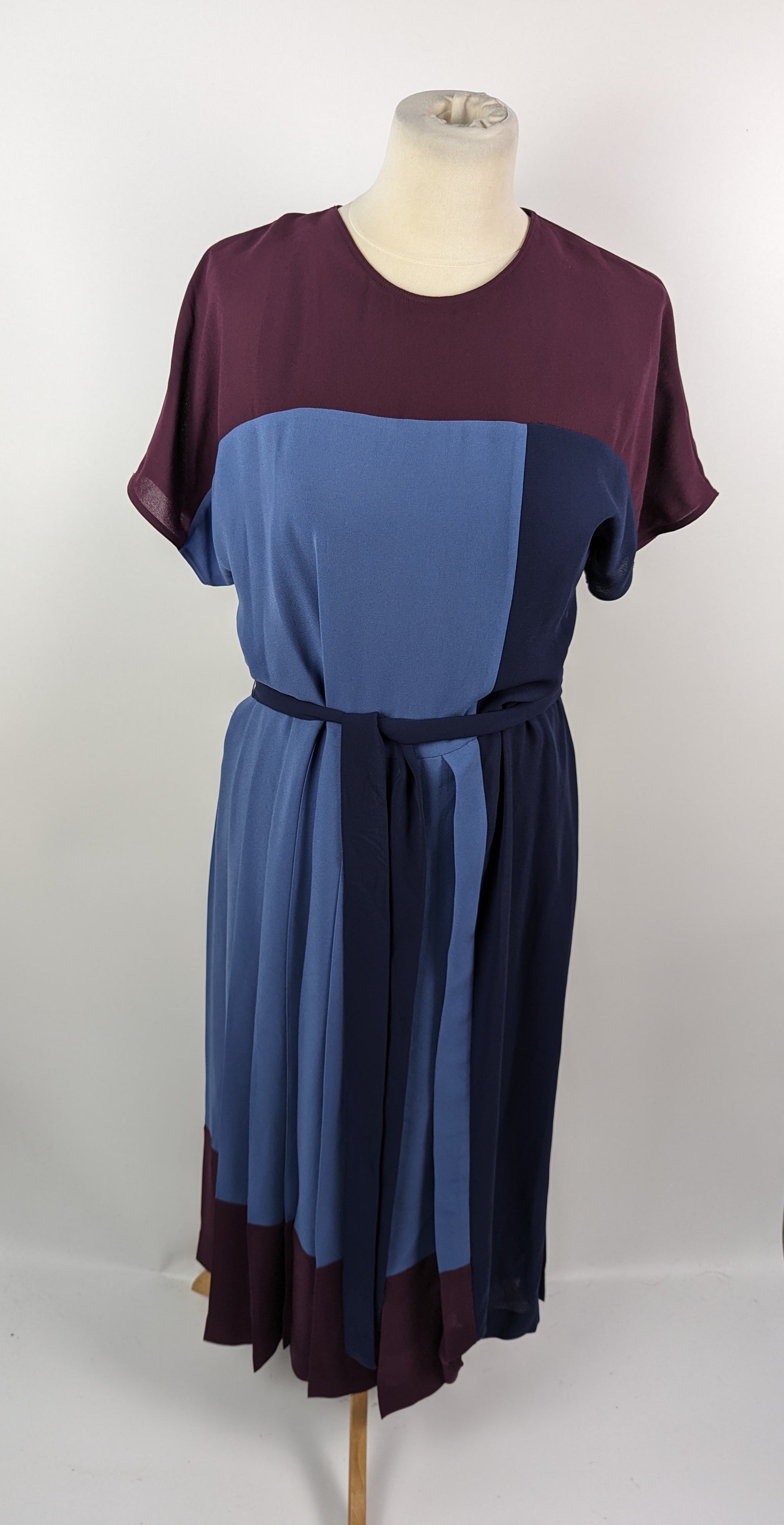HUGO BOSS Pleated Crepe Midi Dress - Colour-block Blue / Purple