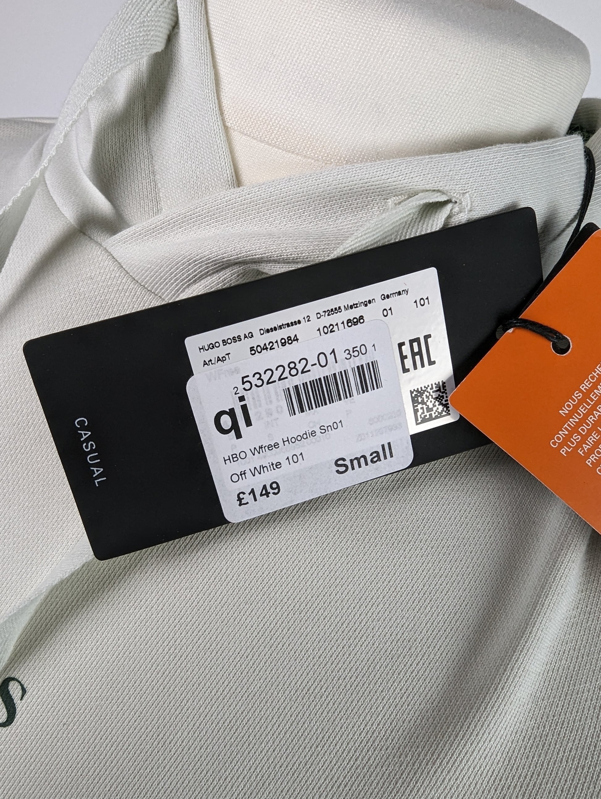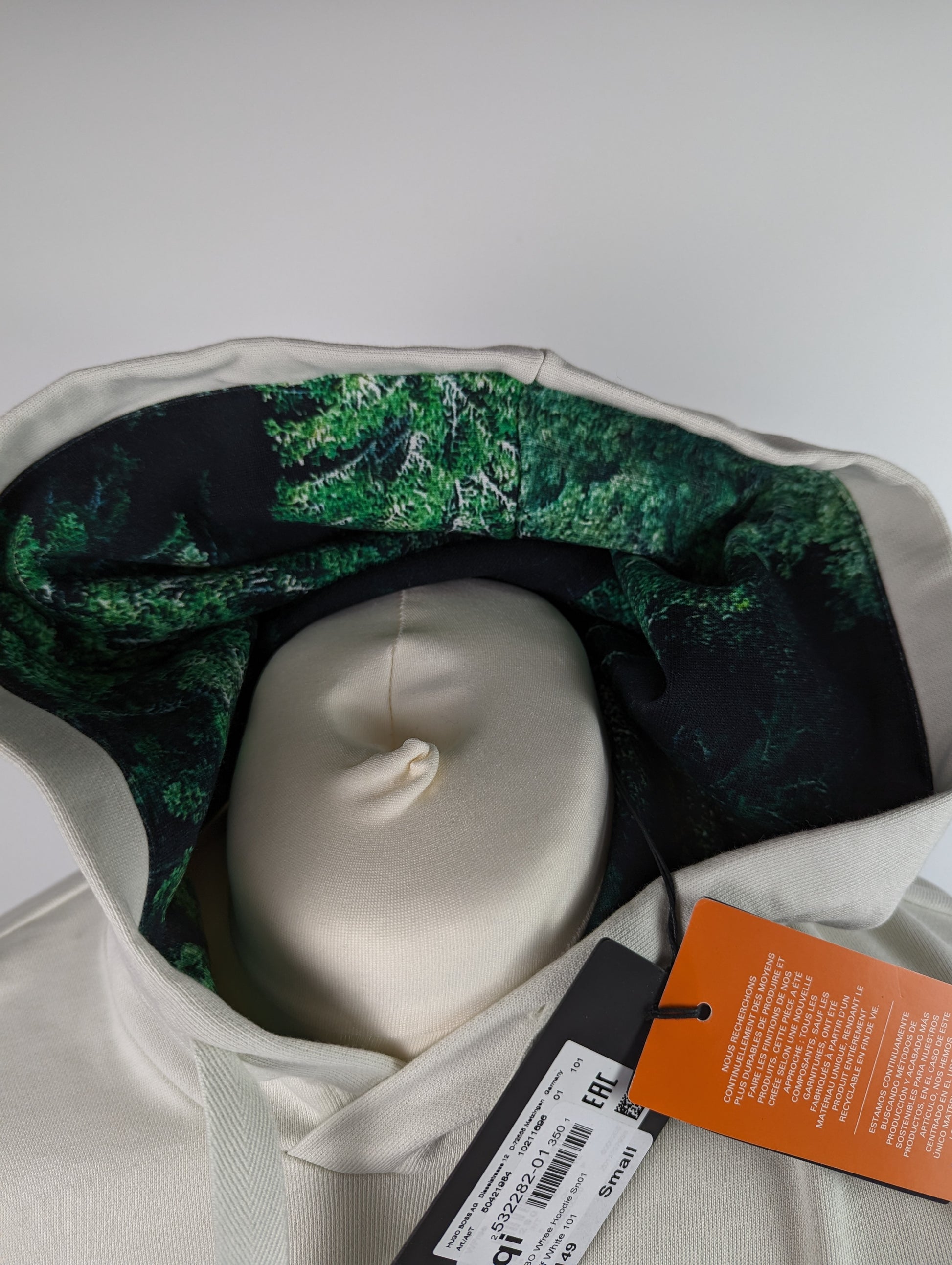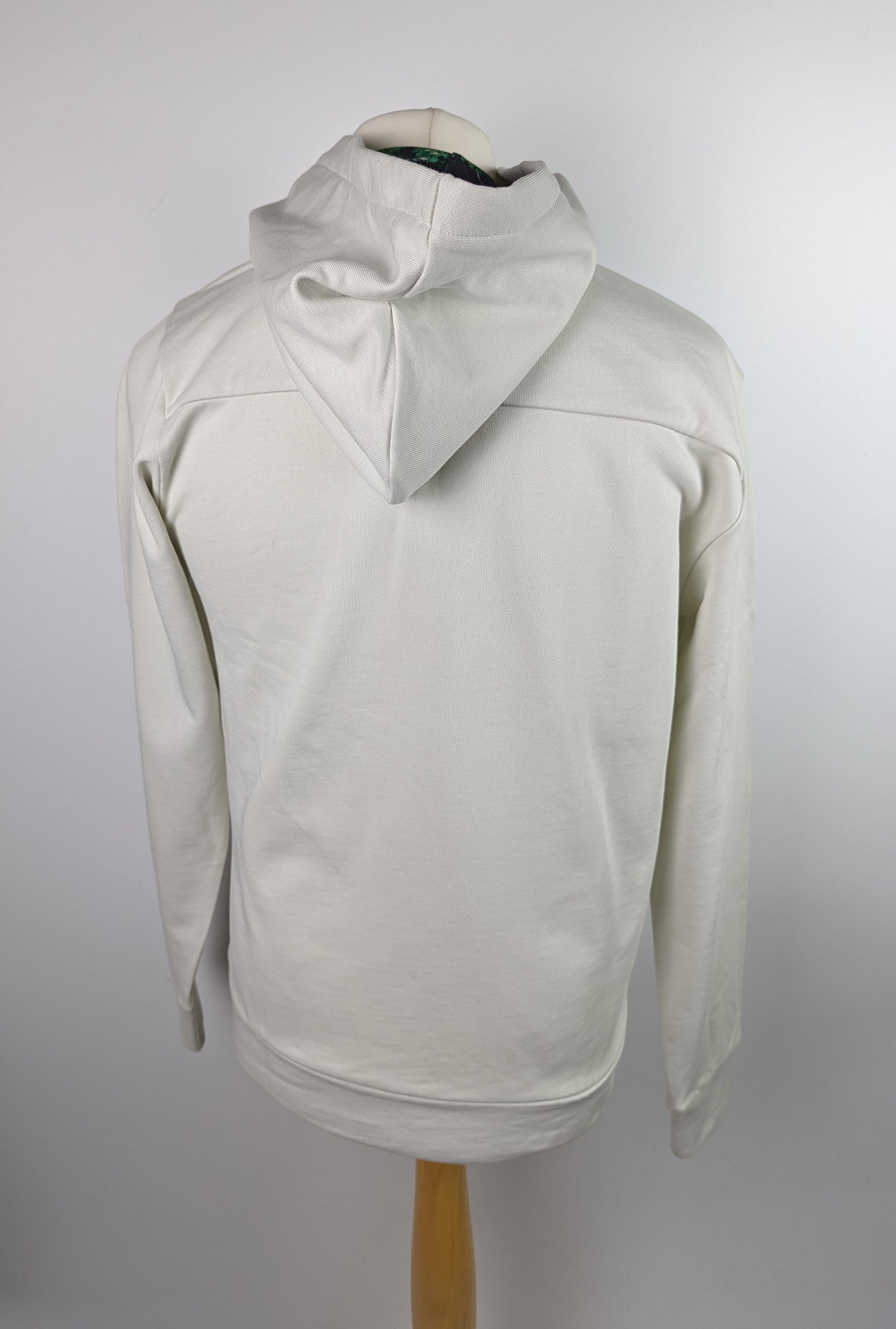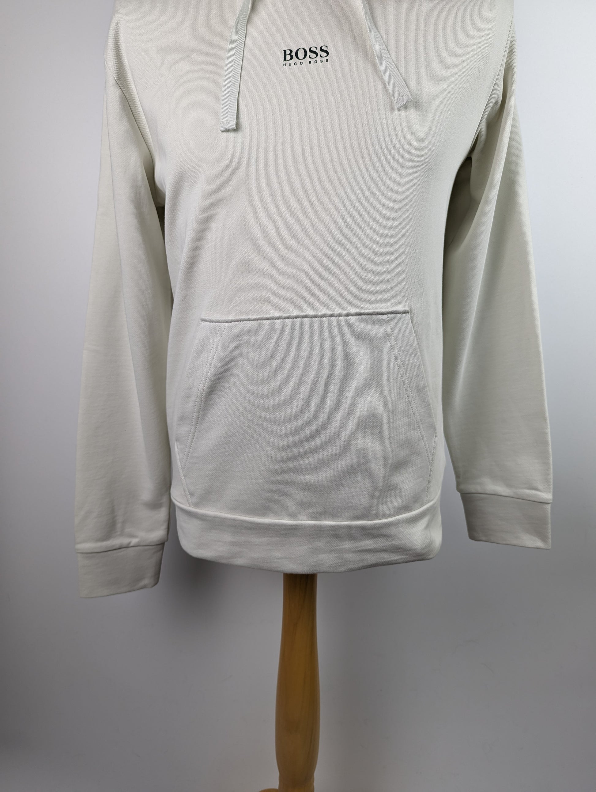 Stylish HUGO BOSS men's hooded sweater in off-white. The WFree Hoodie is crafted in quality 100% cotton, and features a small printed logo in contrasting dark green to the chest. The inside of the hood is lined with a striking forest print for that extra special added detail.