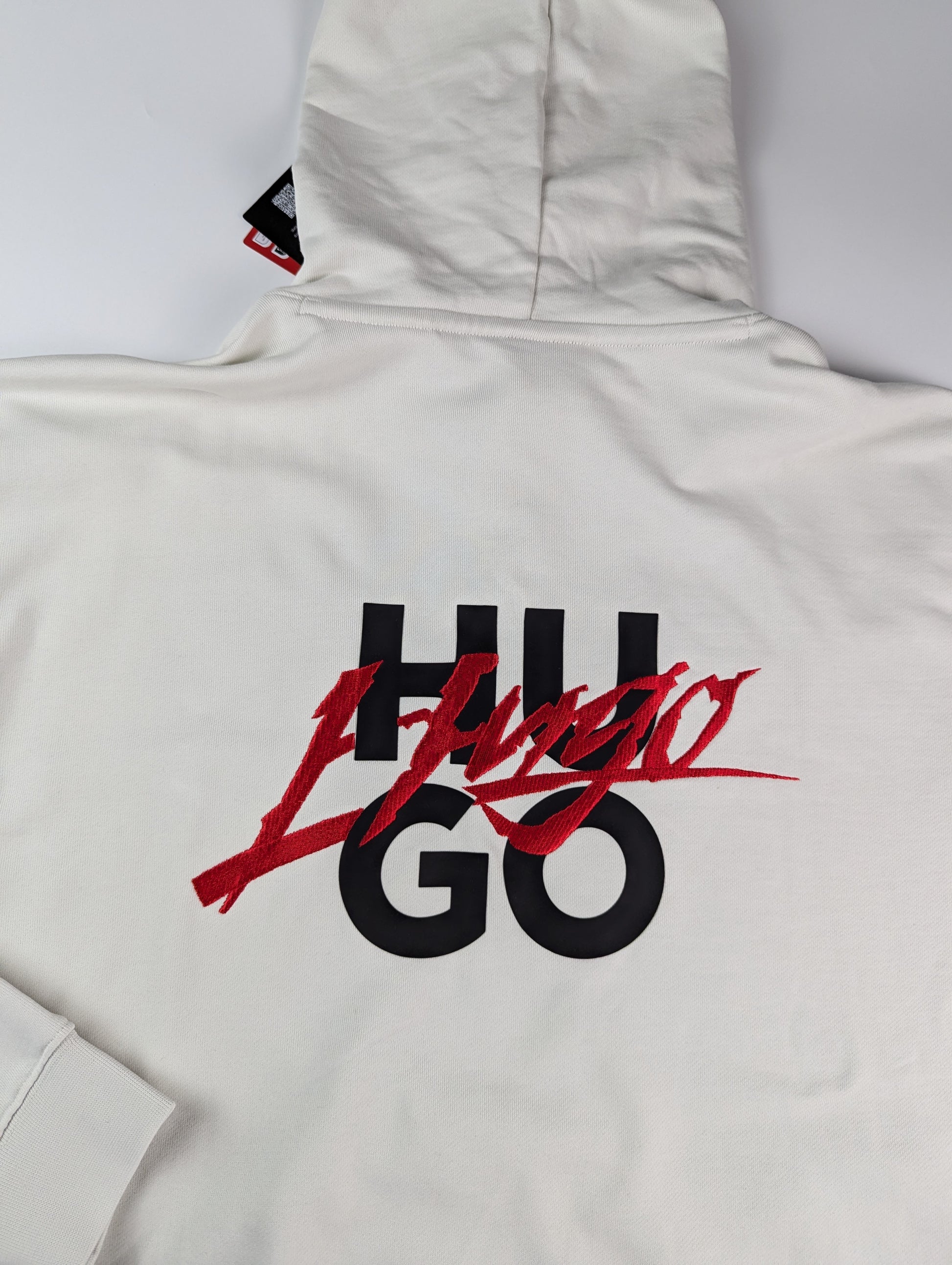 Hugo Dlogolong Mens Logo Hoodie - Off White