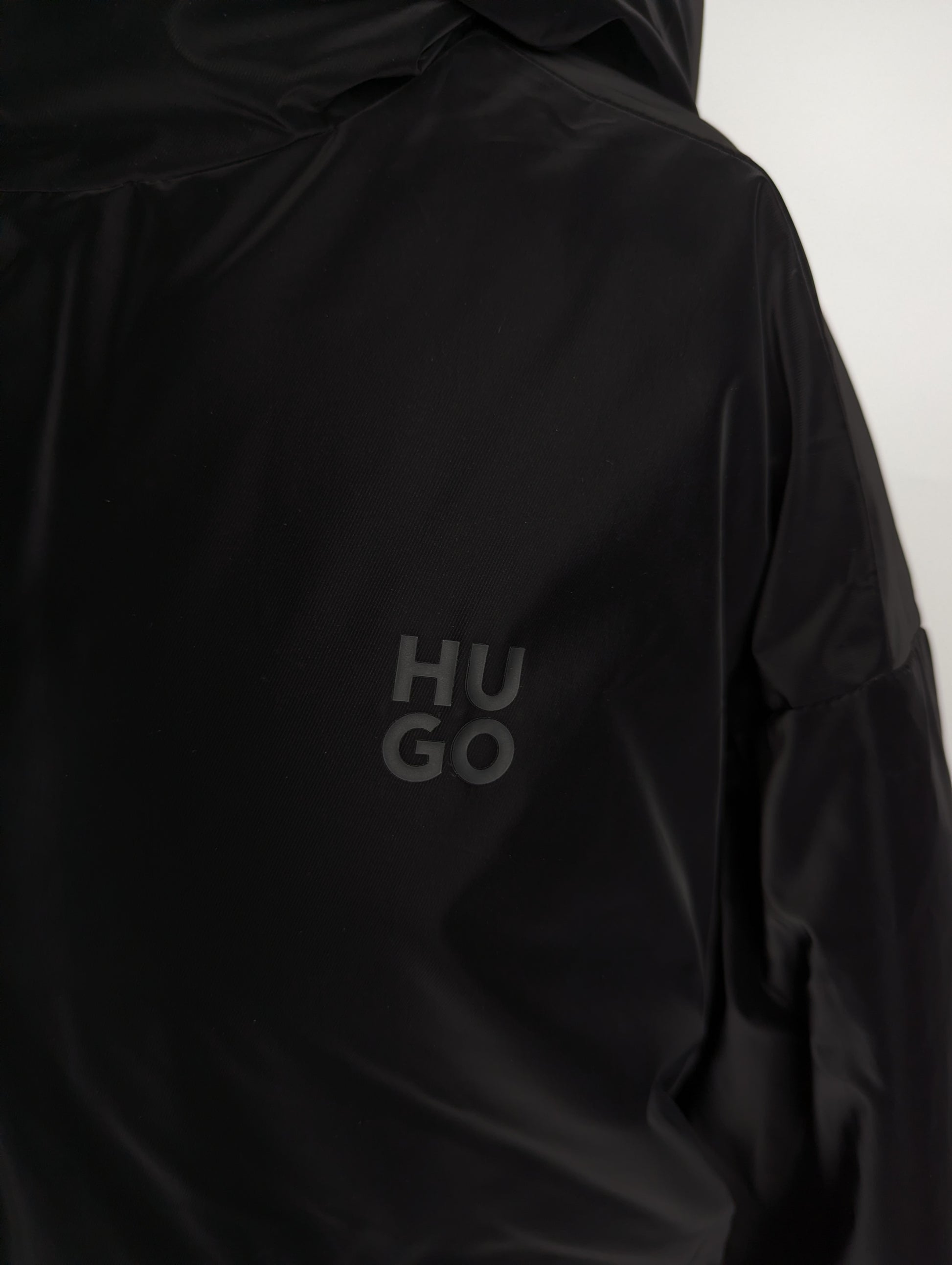 Constructed from water-resistant superblack twill, it shields against the elements while maintaining a refined aesthetic. The piece features elasticated cuffs, distinctive stacked-logo detailing, and a hybrid fastening system with both zip and press studs. Whilst two snap-button pockets provide convenient storage. An ideal choice for those seeking premium outerwear that balances style with performance.
