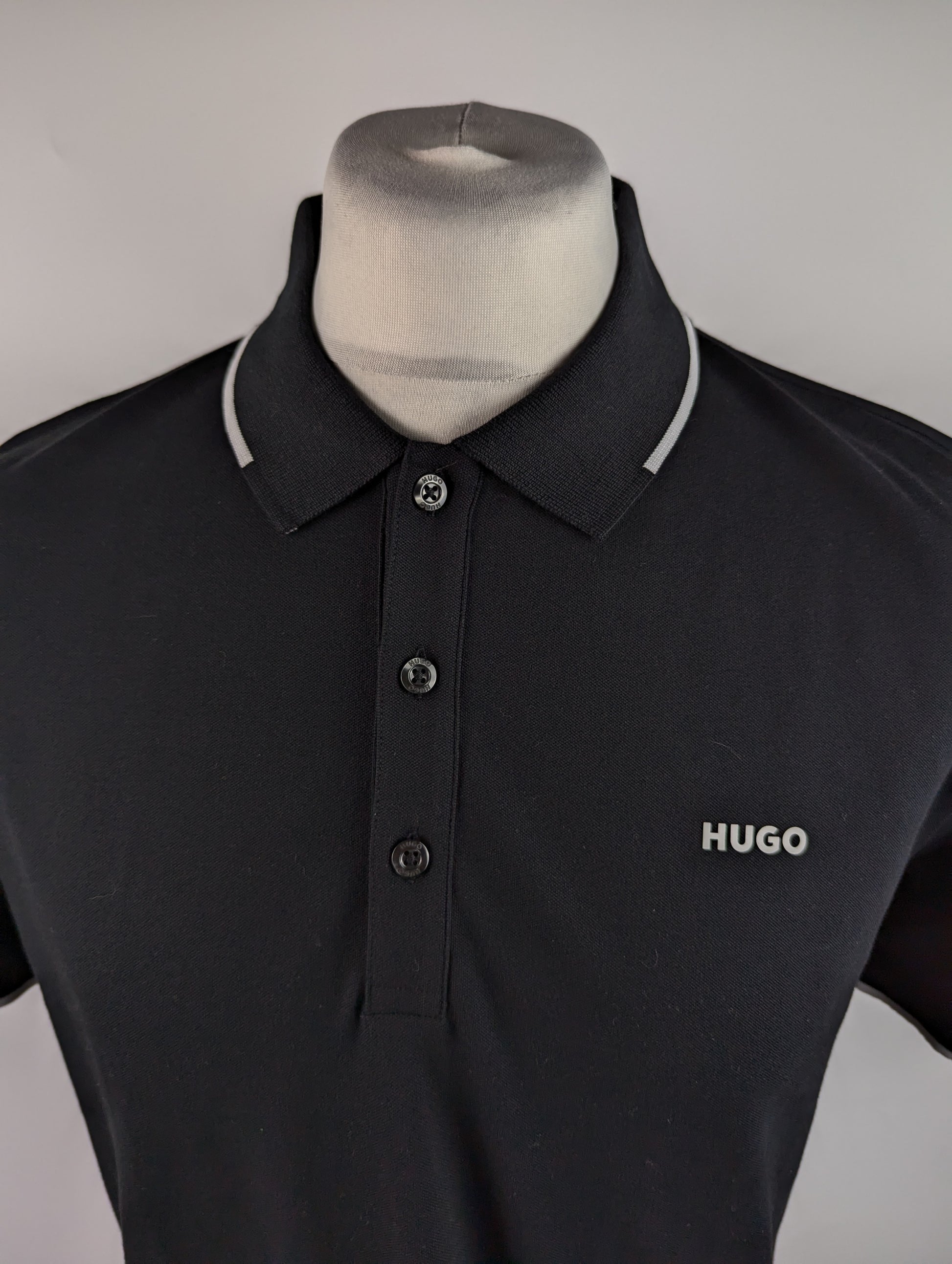 Constructed with a folded collar and a three-button placket for a secure fit, it features short sleeves with comfortable ribbed trims for a classic look. Decorated in a solid colouring throughout for understated designer completion. Whether hitting the beach club or heading out into the city with friends, embrace a stylish staple. Slim fit.