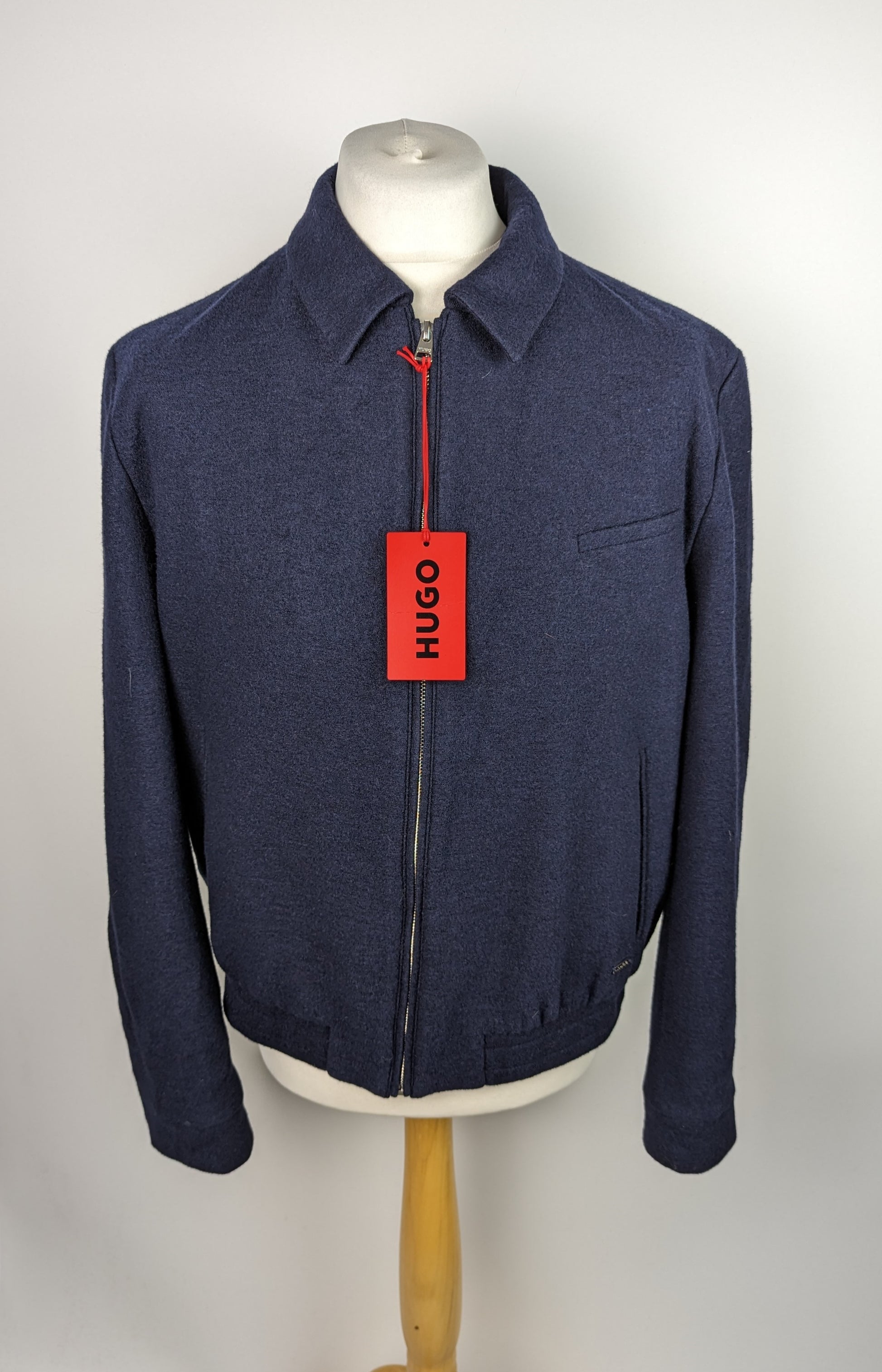 Stylish HUGO Hellis velvet jacket from Hugo Boss. A simple, versatile bomber style jacket with full length zip. Crafted in a brushed effect wool blend fabric, the design oozes class and style, making it the perfect smart casual piece. Pockets to the chest & waist.